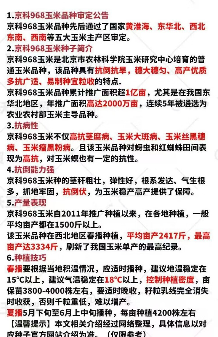 瑰季京科968玉米种子大全高产双棒矮杆抗倒抗病抗旱抗涝正品国审白轴 新种提升【正品3斤可种1.1亩地+营养包衣】