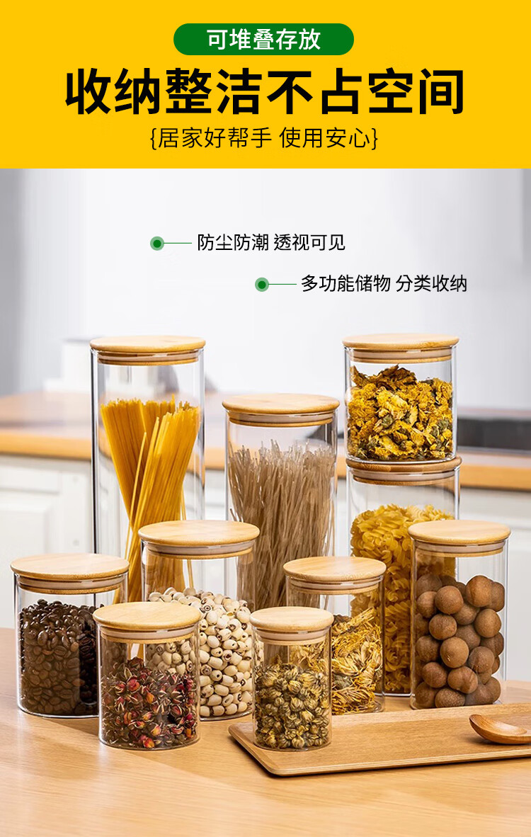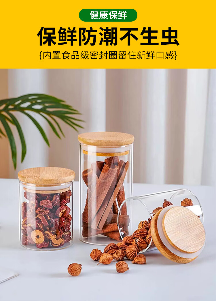 Zhebian Youai round sealed jar food preservation box household glass sealed jar food grade tea and tangerine peel storage jar with lid 250ML 6.5*8cm (single)