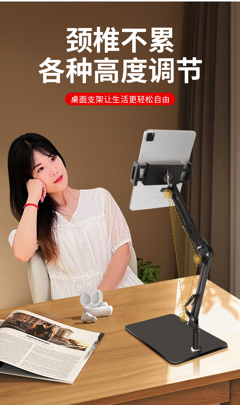O'Loui's mobile phone holder for overhead shooting, desktop live broadcast selfie stick, tripod for food and video recording, special tool for online classes, unboxing vlog teacher, calligraphy overhead shooting with fill light, metal square base + cantilever overhead shooting bracket (mobile phone and tablet dual-purpose clip)
