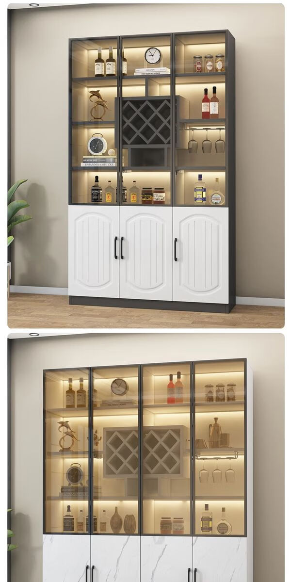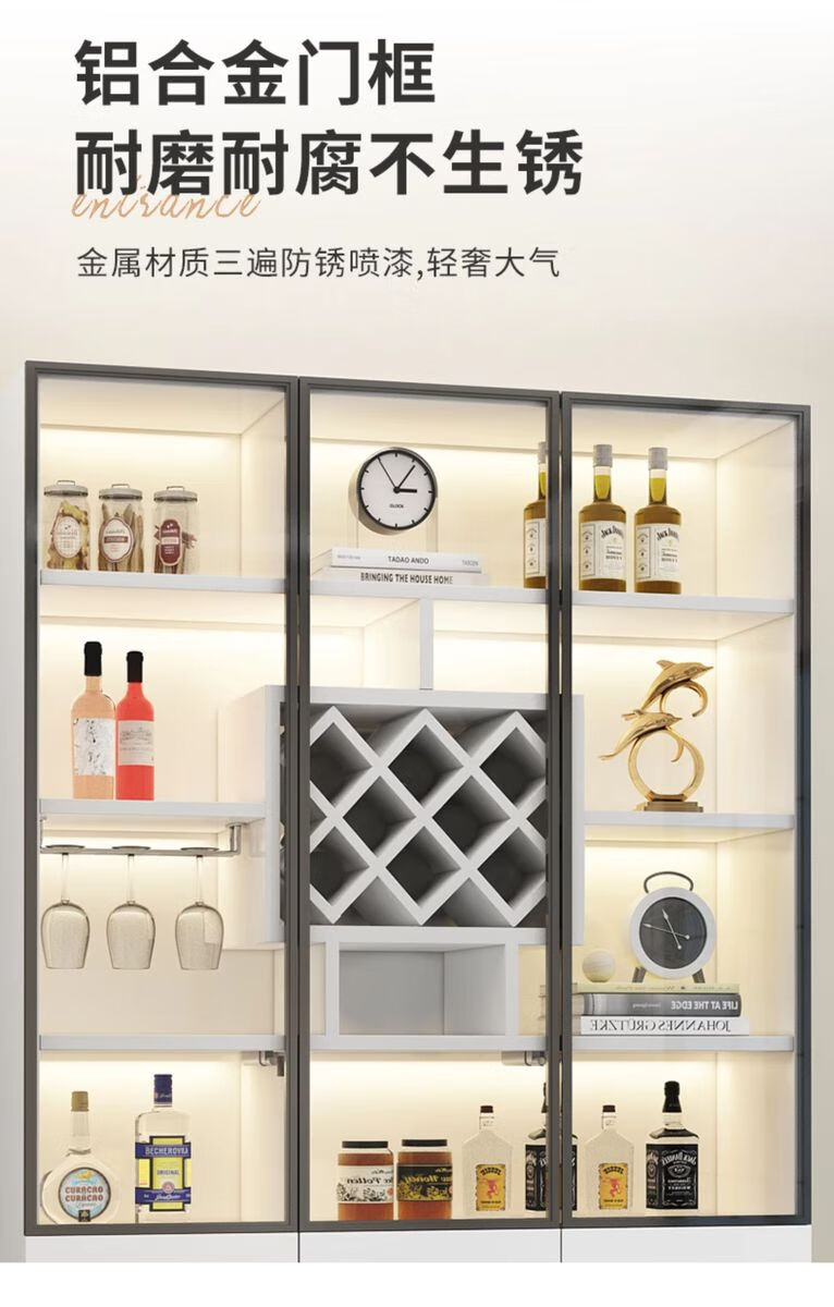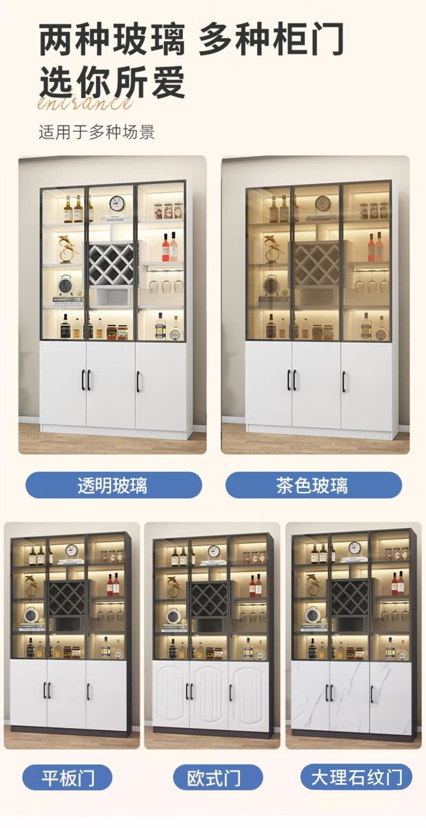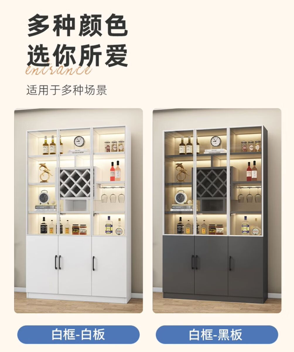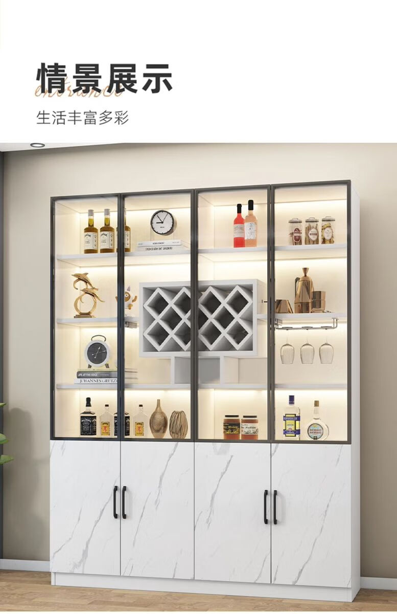 Yusenyi wine cabinet glass door living room display cabinet against the wall one-piece home restaurant wine rack storage storage cabinet three doors stone pattern white length 140 width 30 height 200 black frame transparent glass