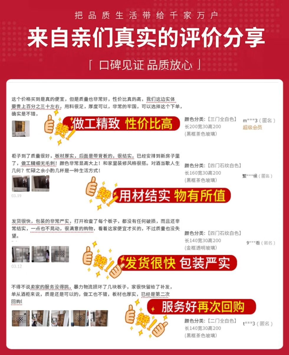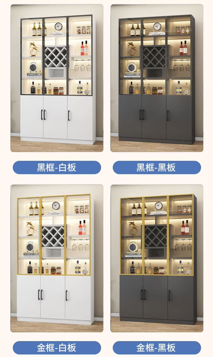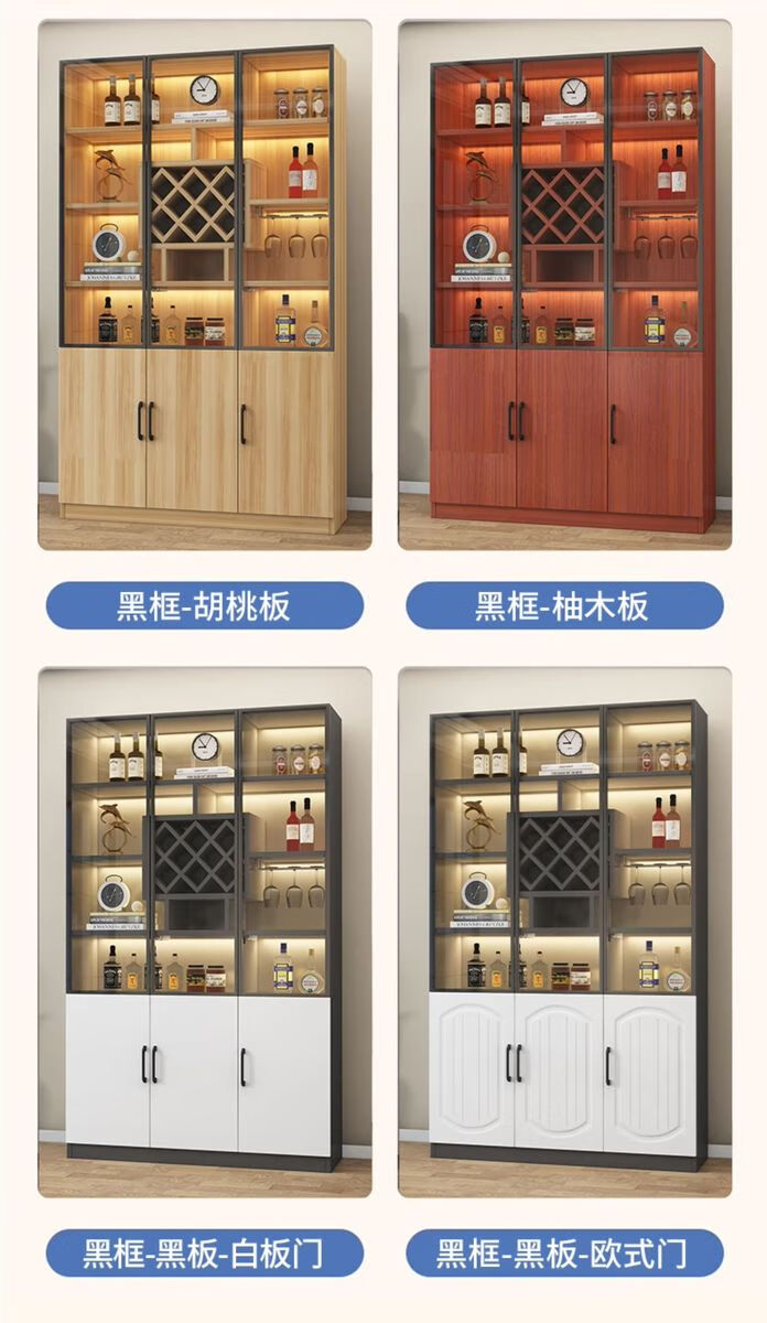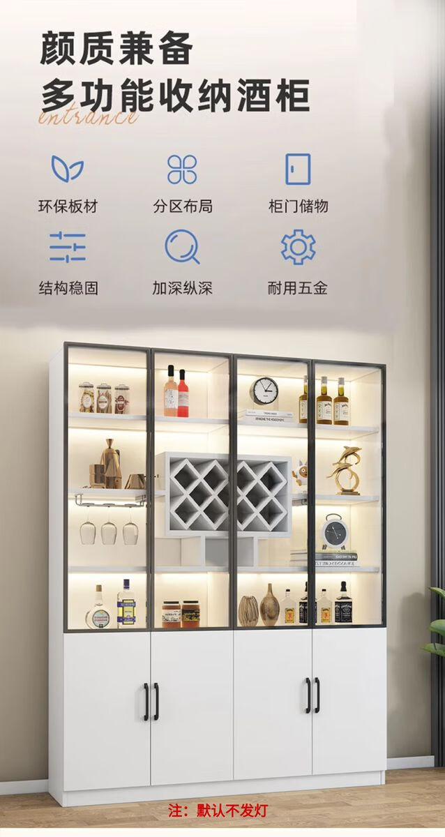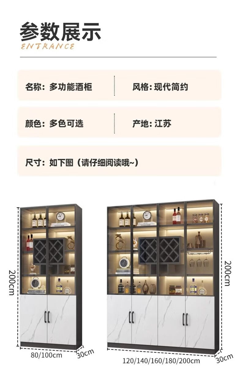 Yusenyi wine cabinet glass door living room display cabinet against the wall one-piece home restaurant wine rack storage storage cabinet three doors stone pattern white length 140 width 30 height 200 black frame transparent glass