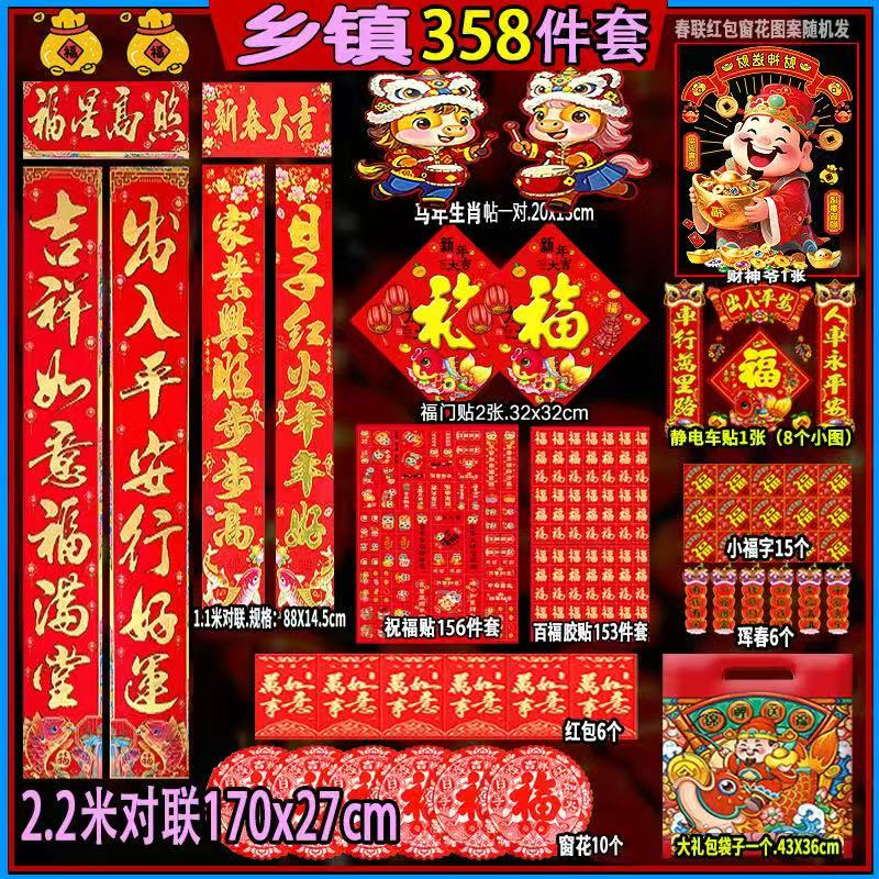 2026 Year of the Horse Spring Festival Couplets Spree Rural Spring Festival New Year Door Decoration Supplies Hot Stamping Fortune Get Rich Immediately Spring Festival Spree 353-piece Set