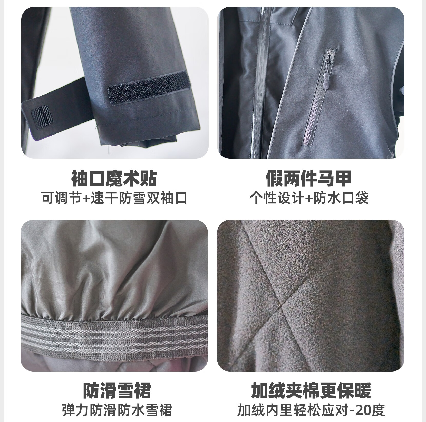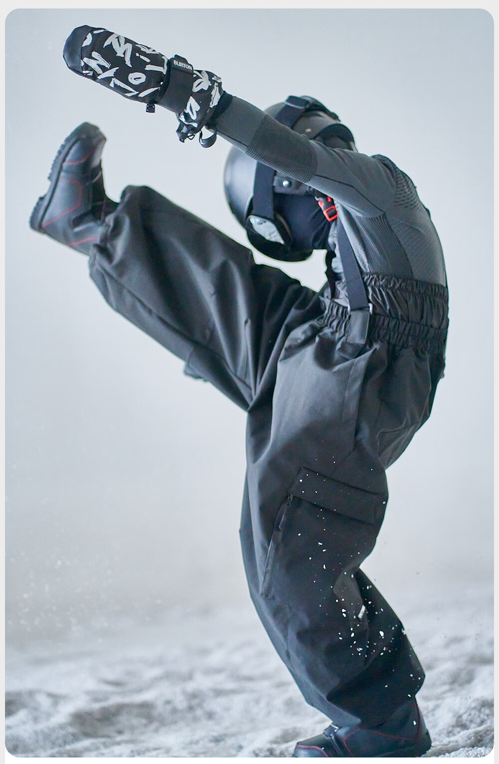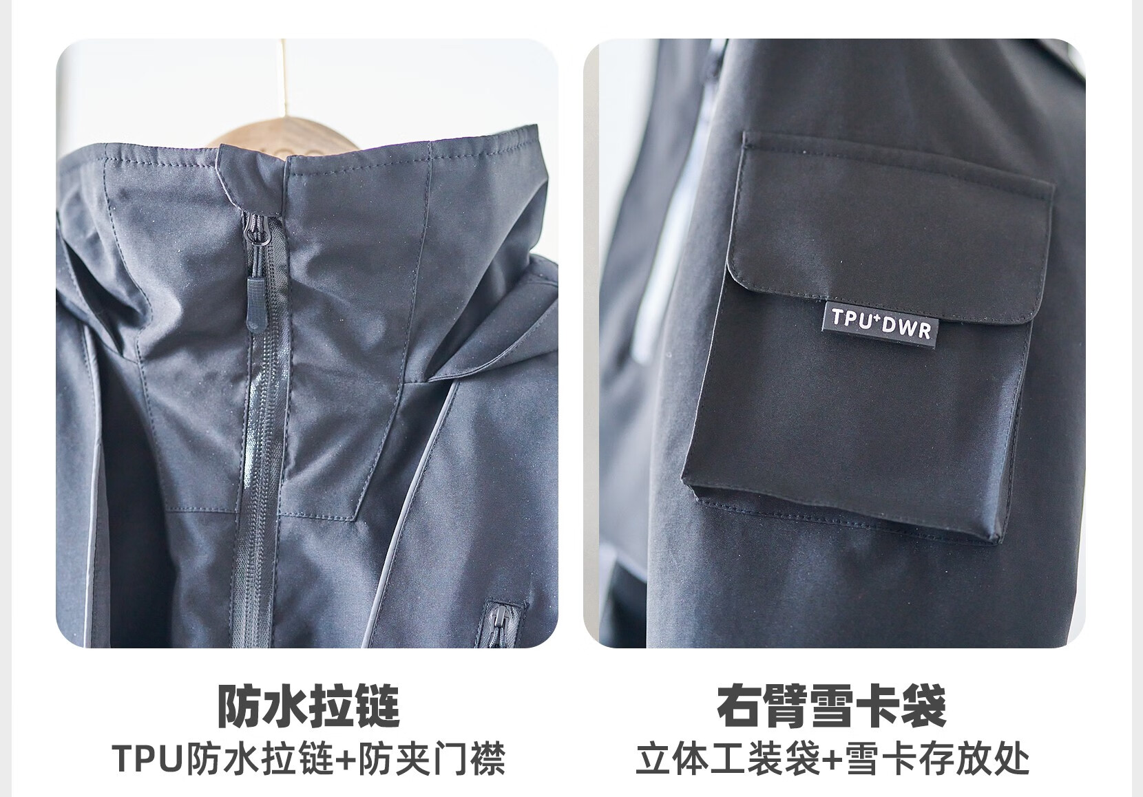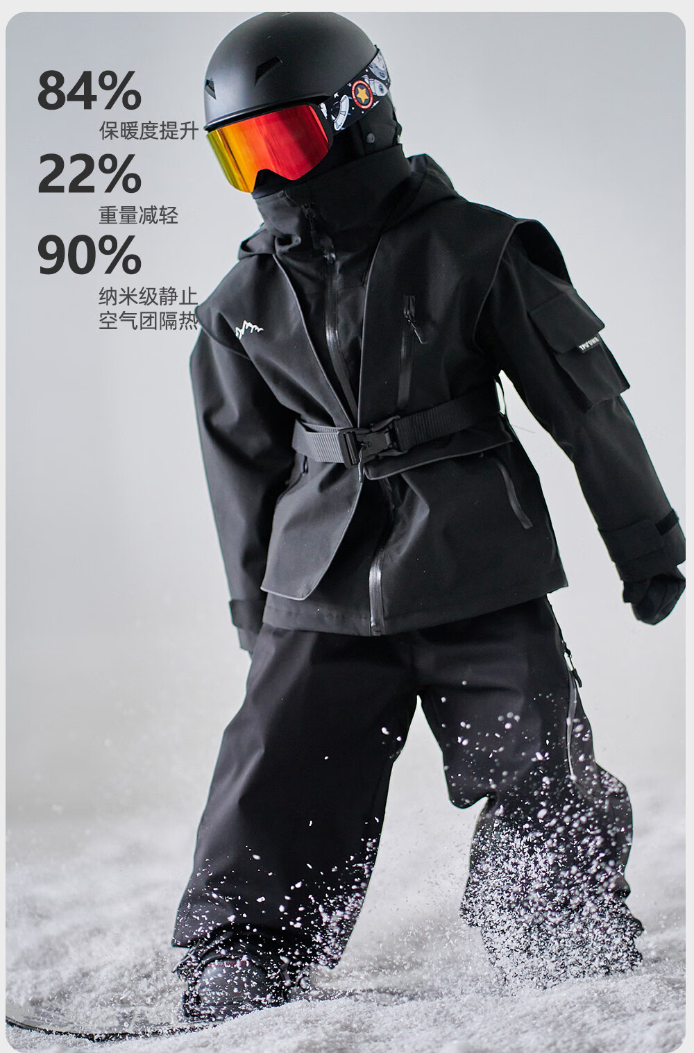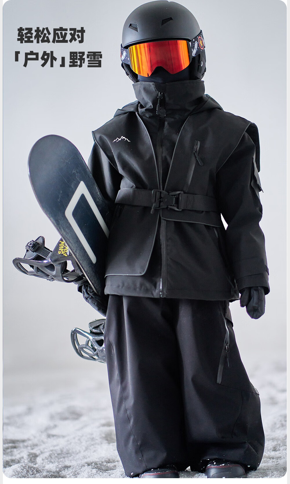 IMGO Black Warrior Professional Children's Ski Wear, Boys and Girls 3L Hard Shell Waterproof and Cotton Thickened Clothing Set, Black Overalls, One Size 150