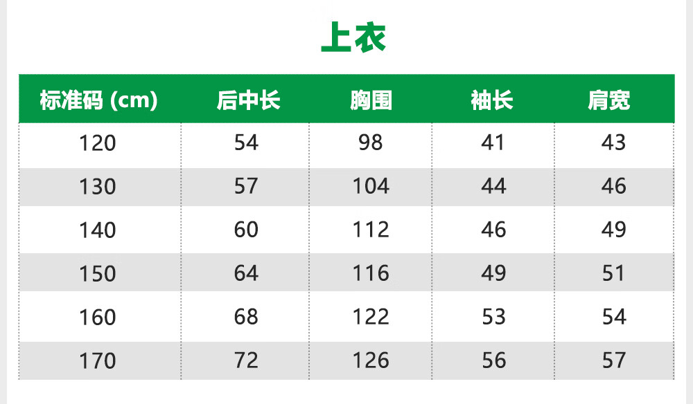 China (cm) 165 / 88-90 170 / 96-98 175 / 108-110 180 / 118-122 185 / 126-130
