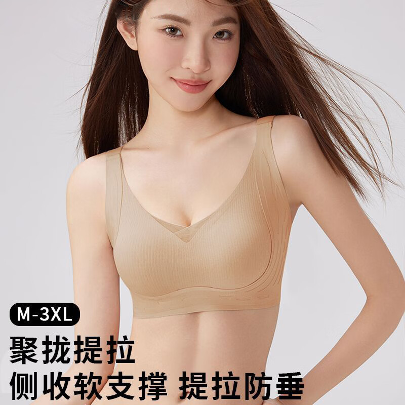 CANVAUS Seamless Push-up Pilates Bra for Women Small Breast Wire Lifting and Sagging Breast Adjustment Wireless Bra Pilates Single Piece Khaki 2XL 130-145Jin Jin equals 0.5kg 40/90 ABC)