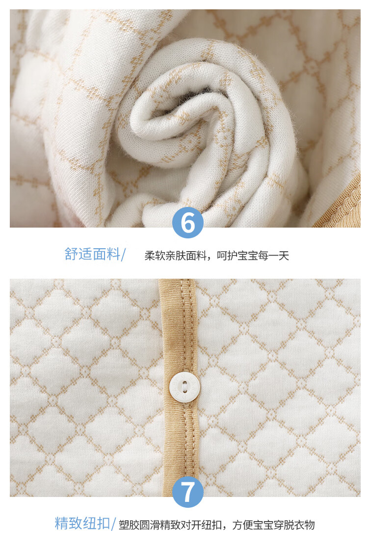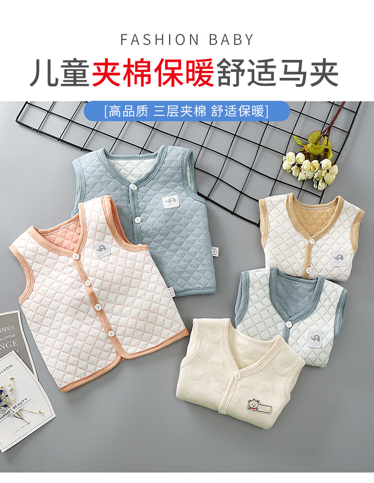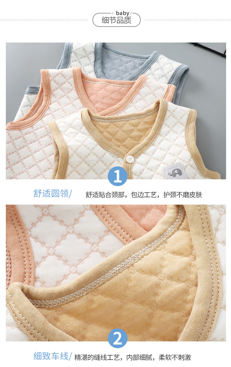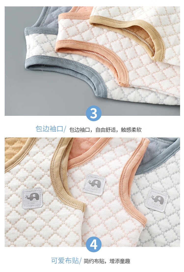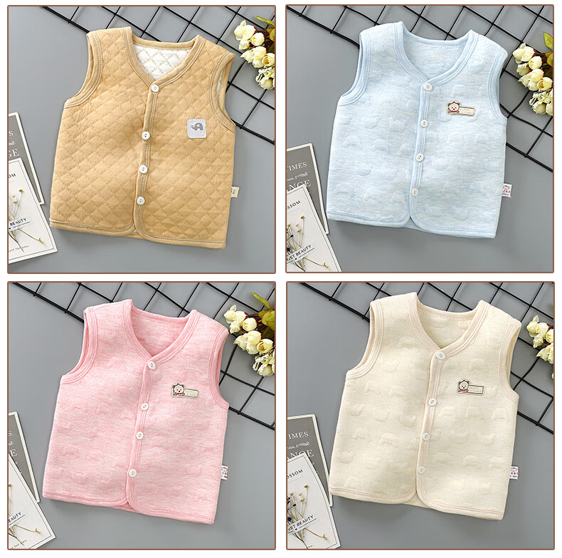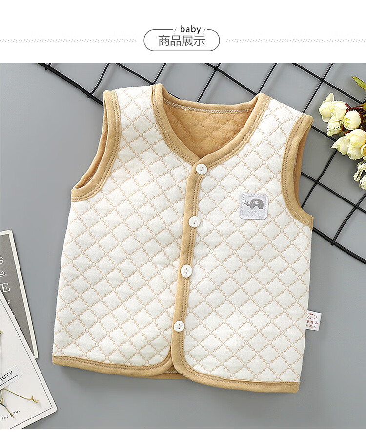 Sophie Bear children's pure cotton vest baby warm spring autumn winter thickened baby vest boys and girls thickened quilted vest BT apricot 80 size