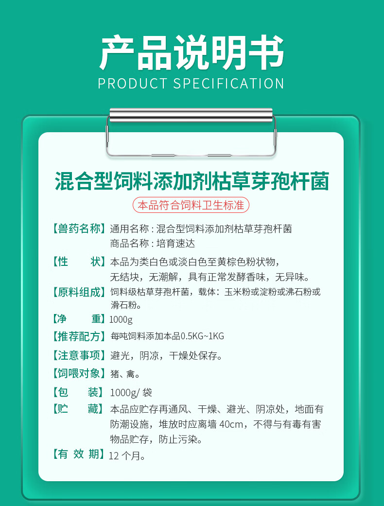 HVSEN BIOTECH Intestinal Probiotic Cultivation Suda Bacillus subtilis 1kg intestinal probiotic veterinary pig and poultry growth promotion feed Intestinal Intestinal 10 packs*1000g in one box Buy 9 boxes and get 1 free