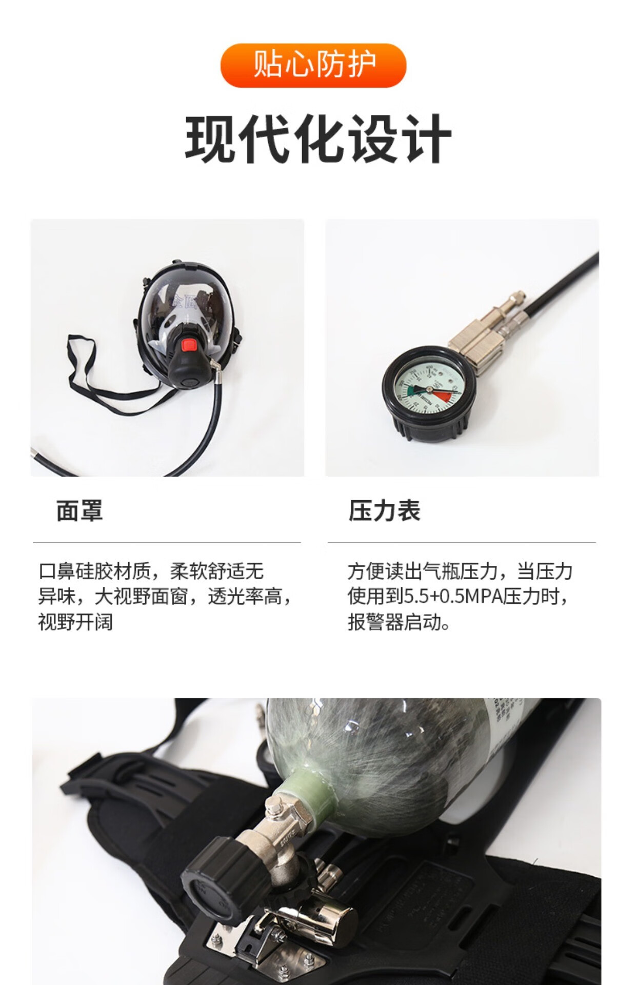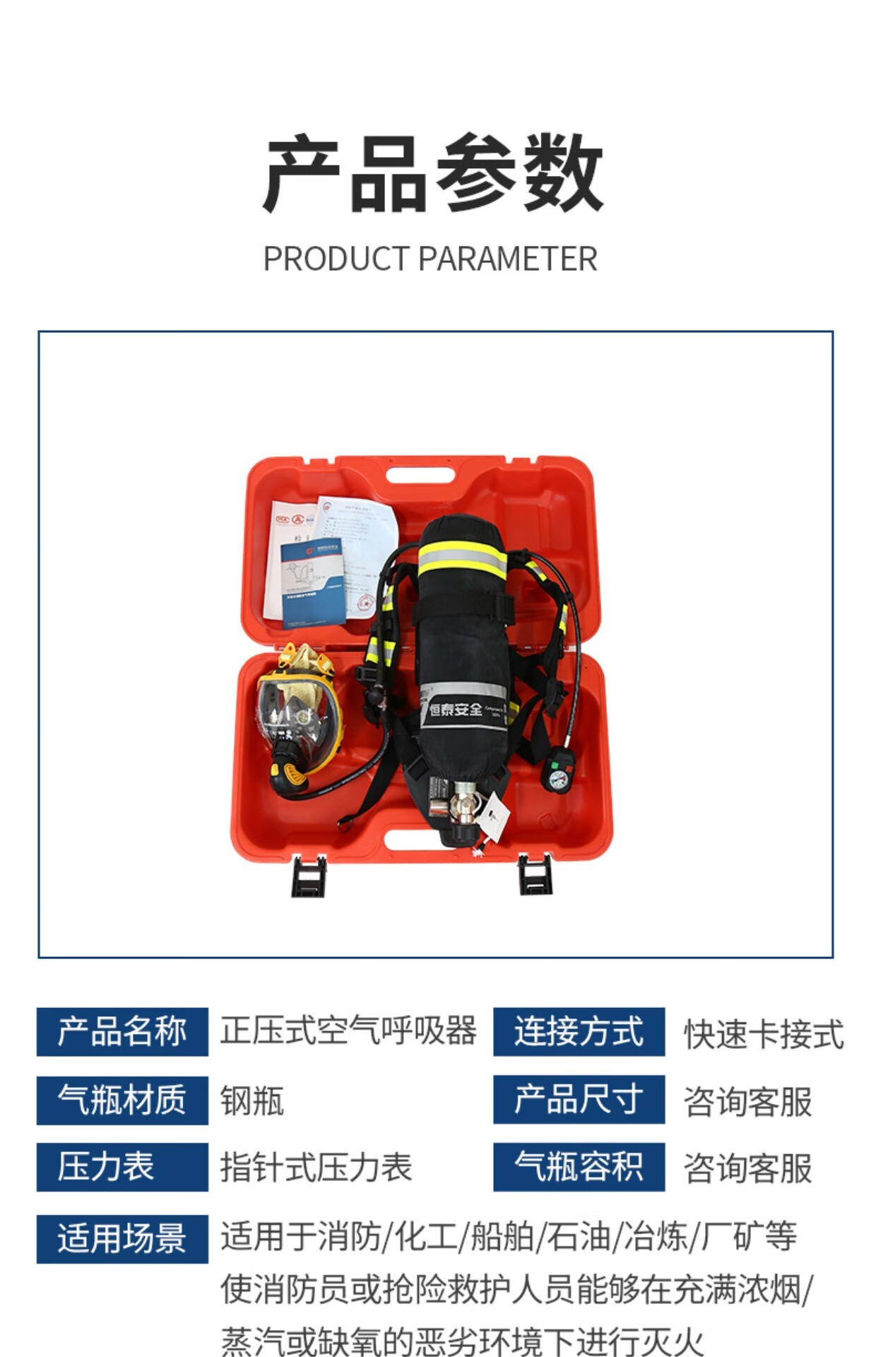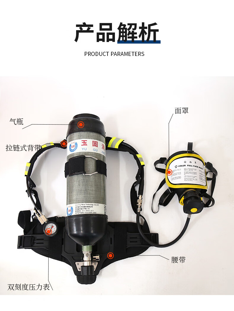 RHZK6/30 positive pressure firefighting air respirator 6.8L carbon fiber respirator self-contained face mask cylinder 3CCC 2025 report/6.8L air respirator