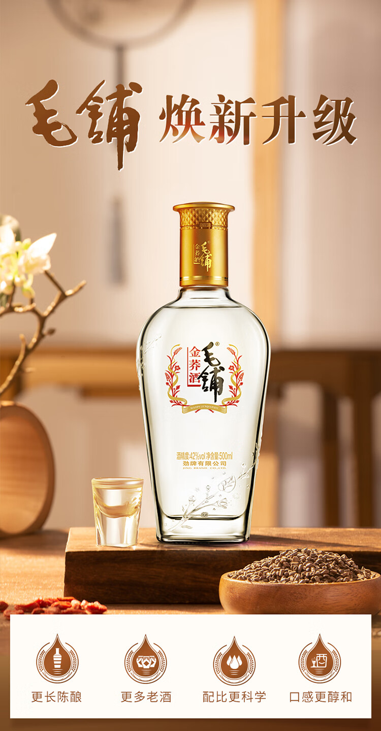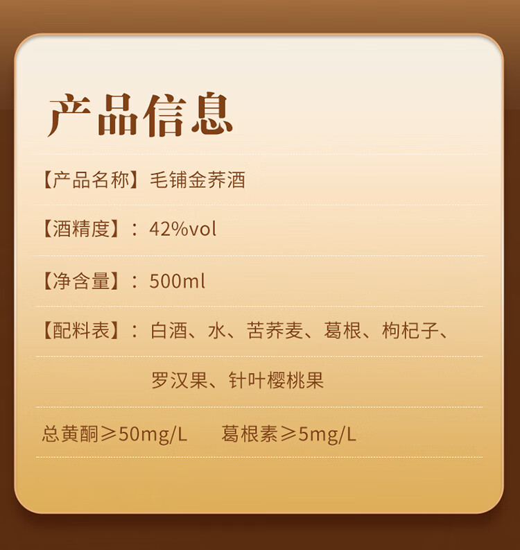 Jinpai Jinjiu Maopu Tartary Buckwheat Wine Golden Buckwheat Dew Wine 42 Degree 500ml Prepared Drinks Festival Gifts 42 Degree 500mL 1 Box Gift Box