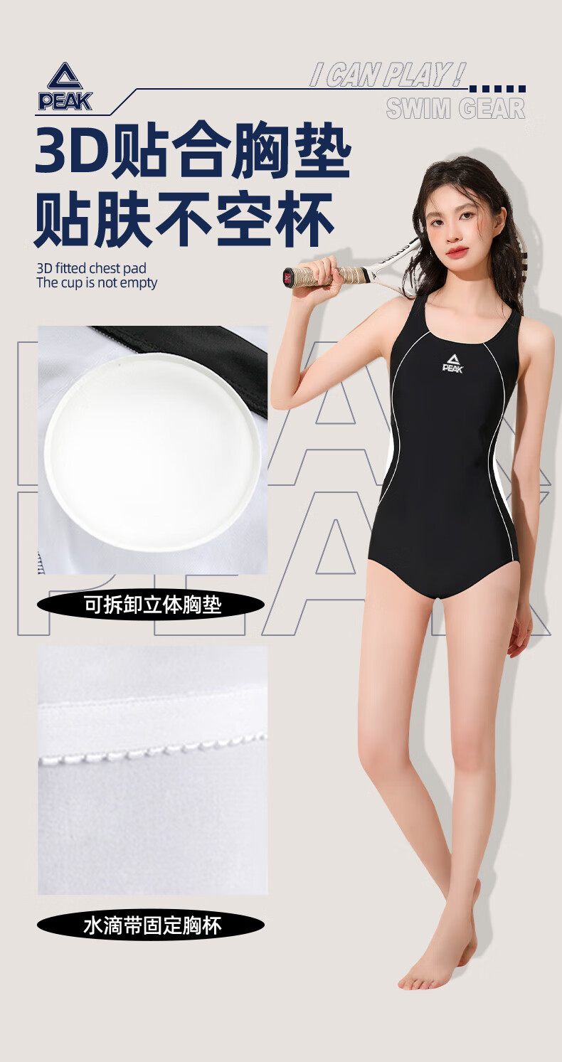 匹克泳衣女士泡温泉高级感2025新款大码竞速显瘦连体游泳衣 泳衣+泳镜 近视联系客服 M 建议体重40kg-49kg
