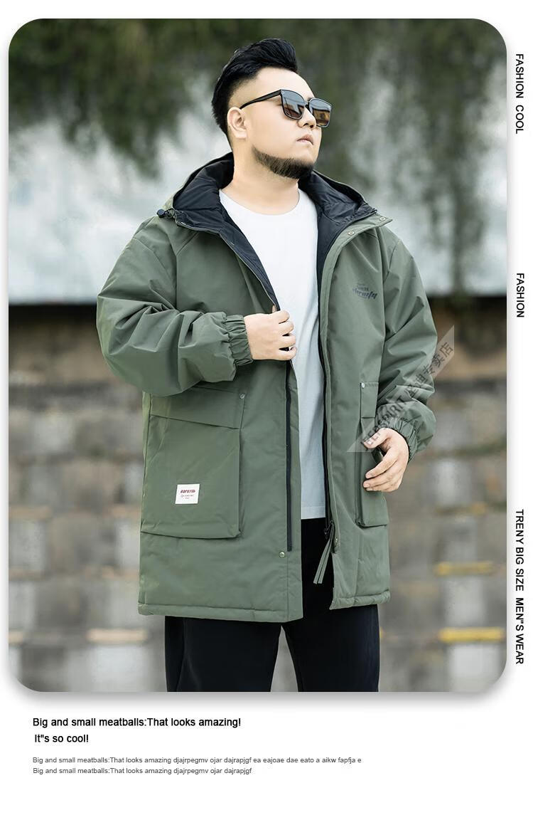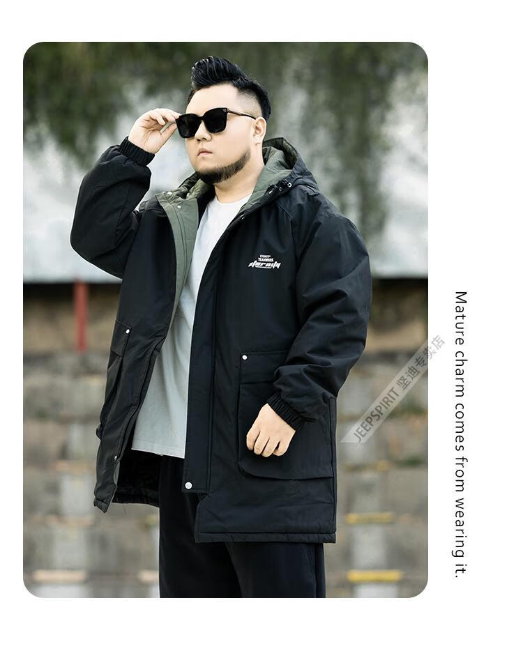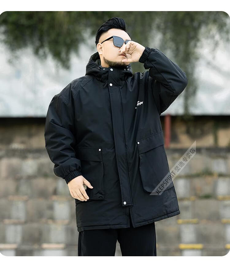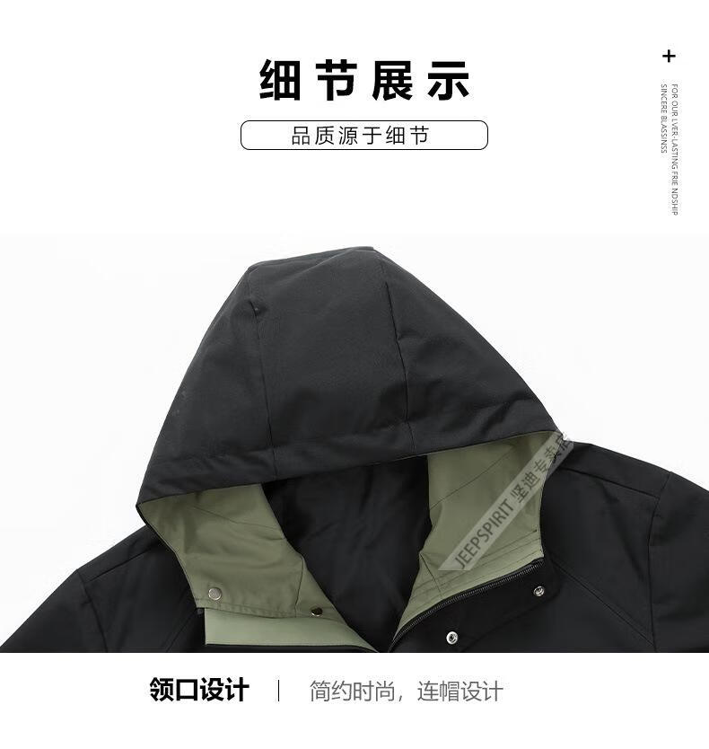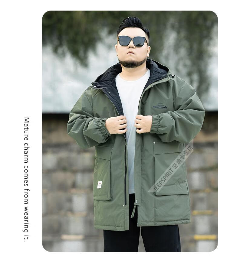 JEEP SPIRIT2026 new autumn and winter outdoor workwear style mid-length hooded windbreaker men's loose plus fat plus size velvet jacket military green plus velvet XL