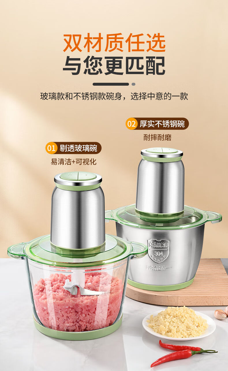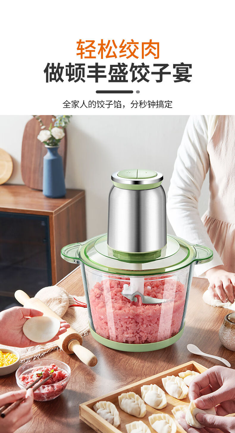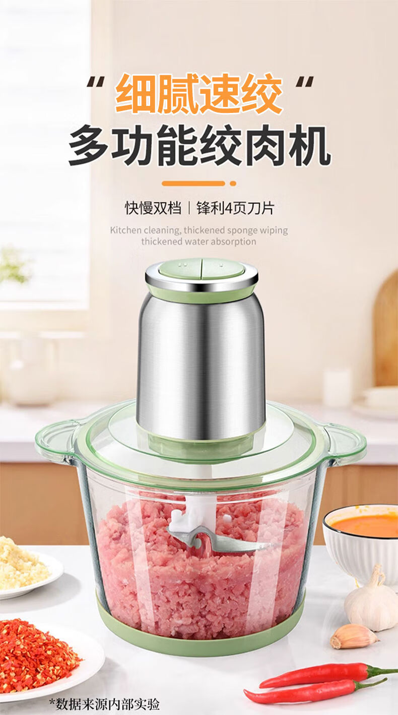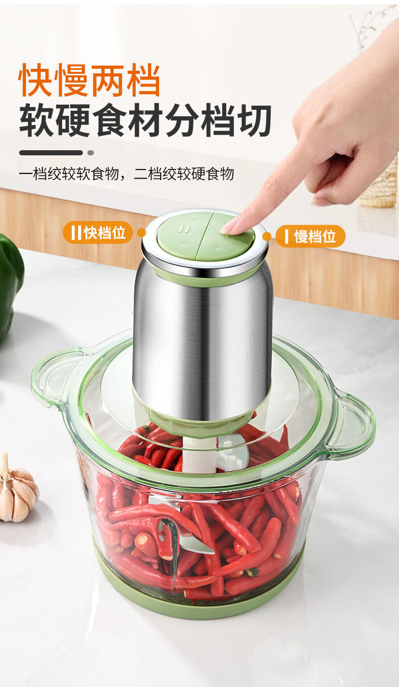Tuojin imported quality new meat grinder from Germany, household large-capacity meat mixer, supplementary food processor, meat beating machine, 2L macaron glass model, 2 gears, 1 set of knives
