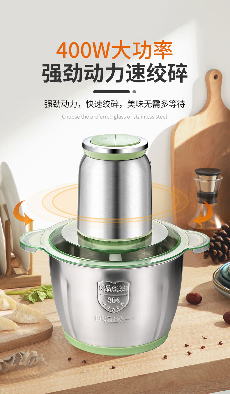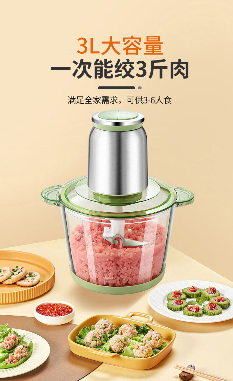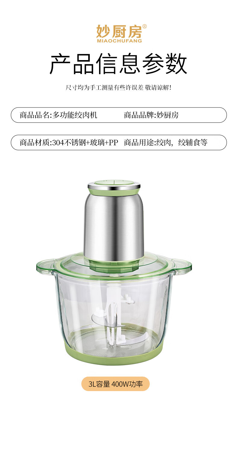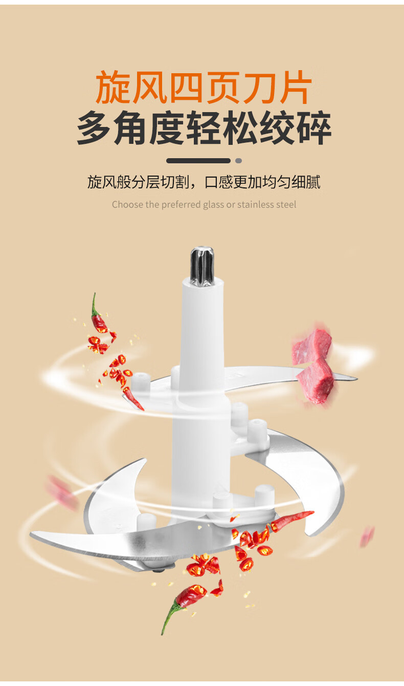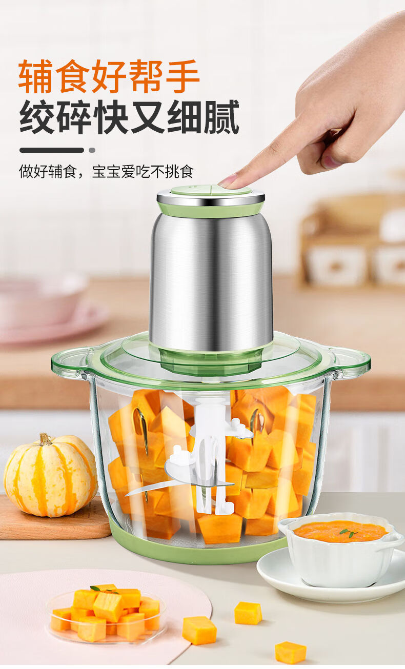 Tuojin imported quality new meat grinder from Germany, household large-capacity meat mixer, supplementary food processor, meat beating machine, 2L macaron glass model, 2 gears, 1 set of knives
