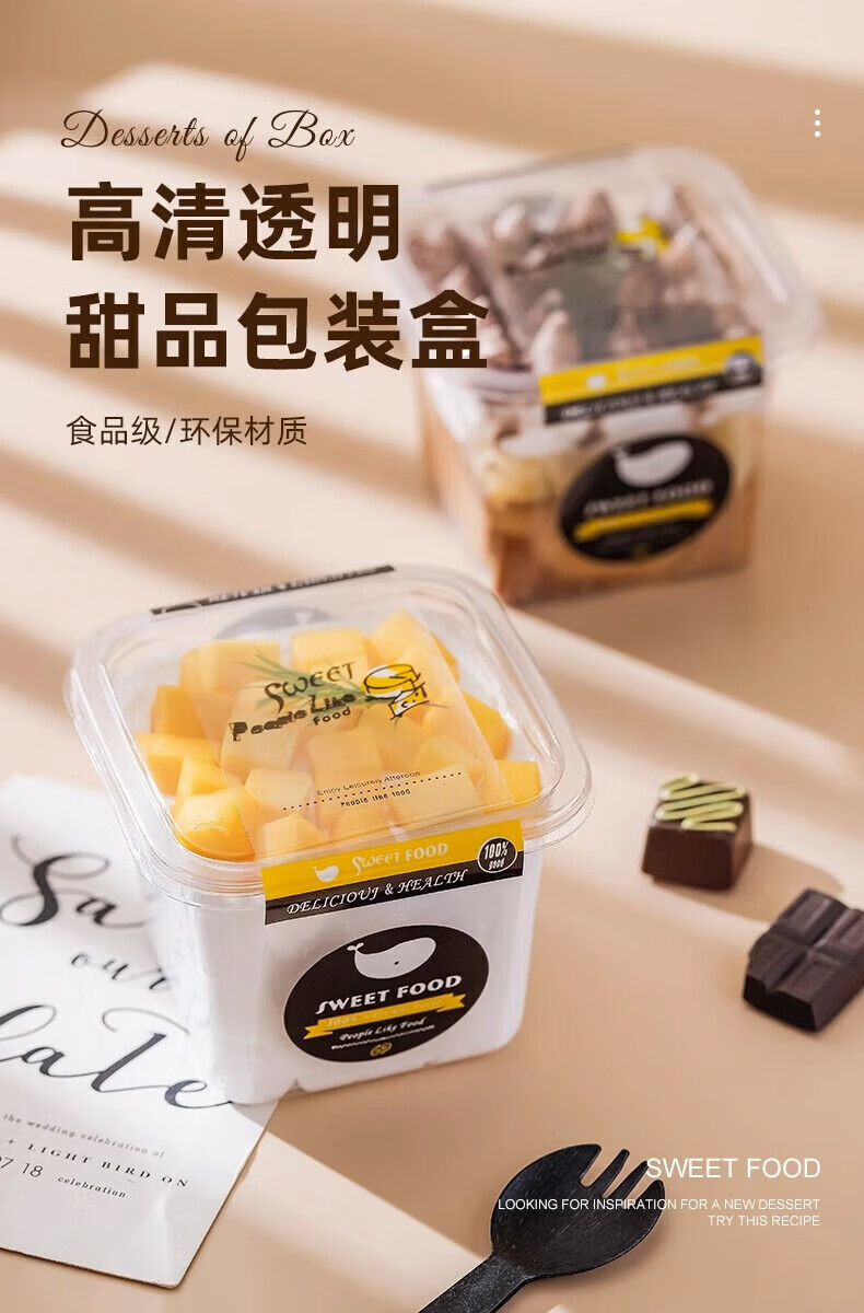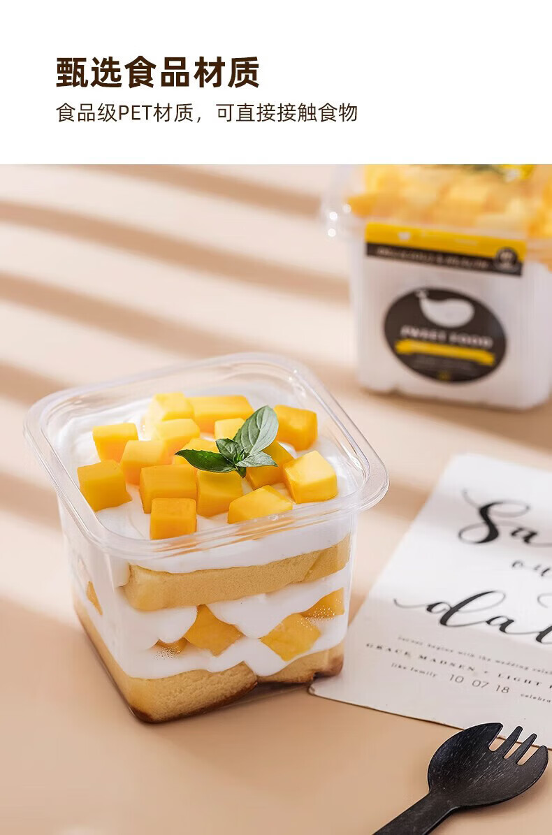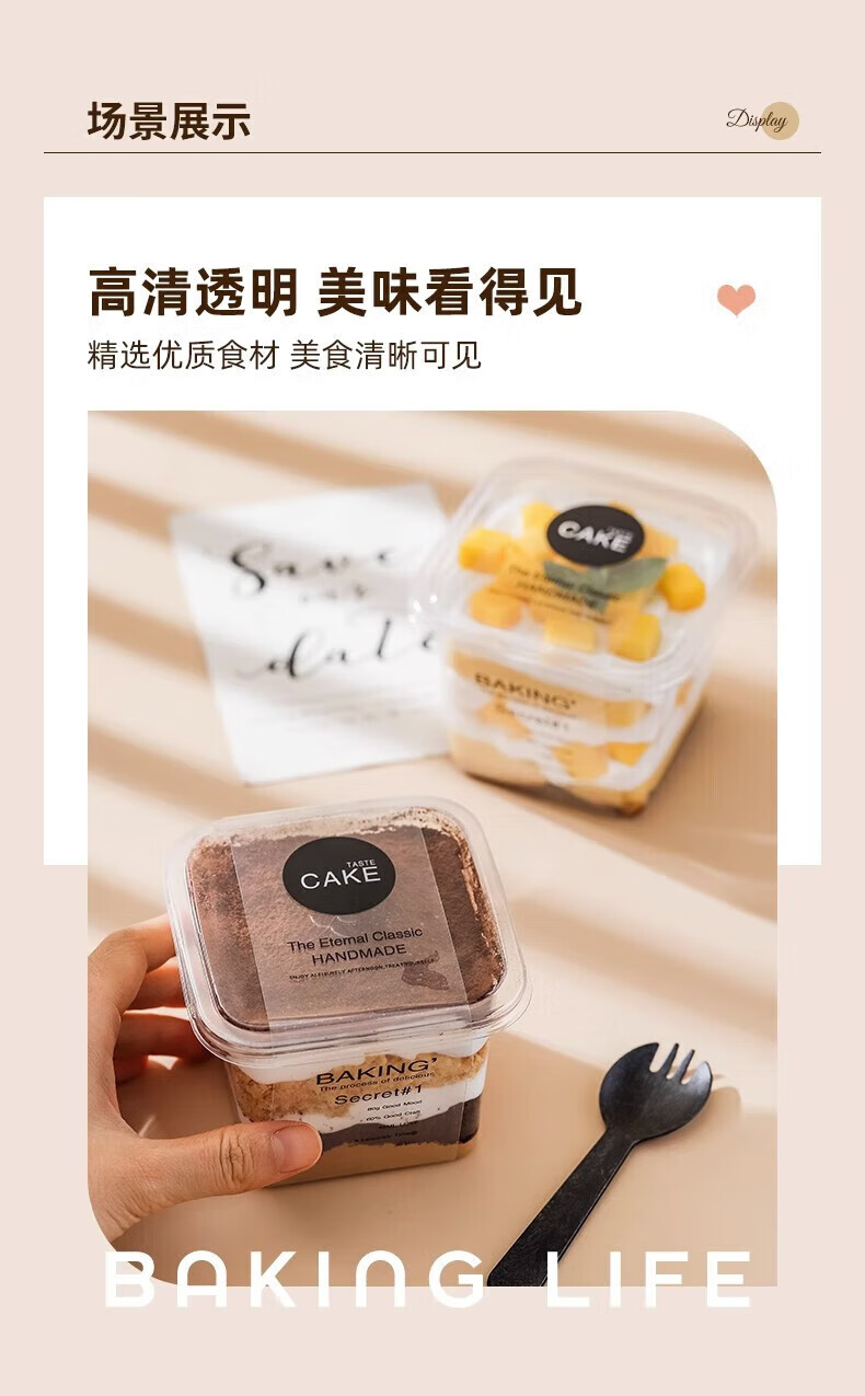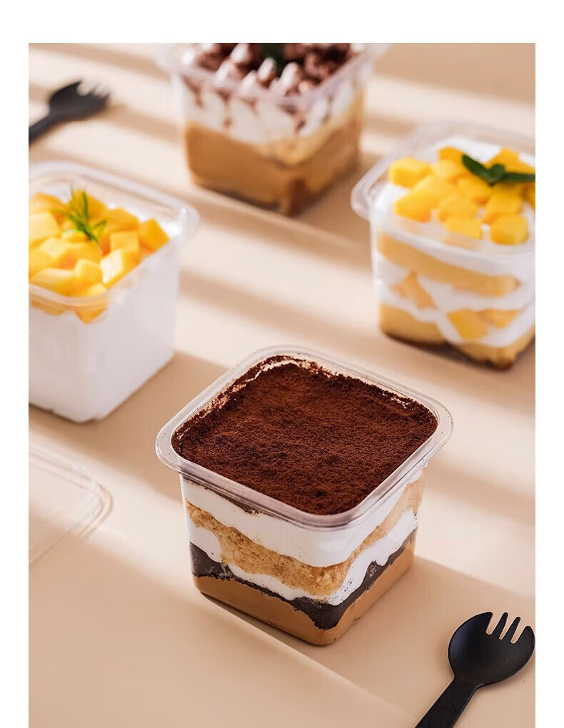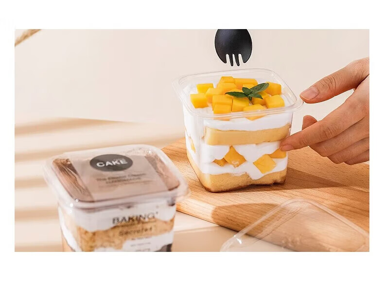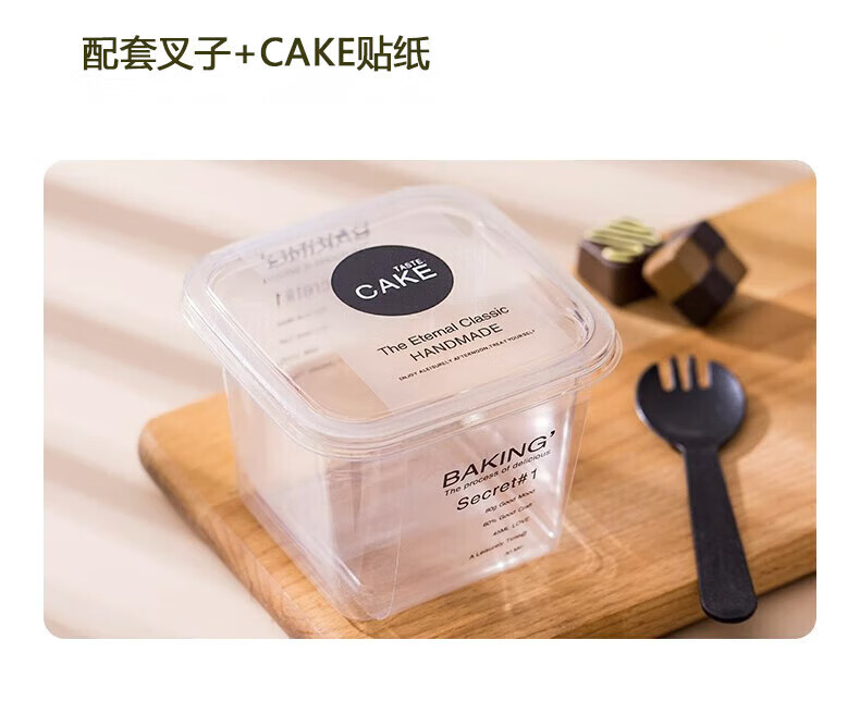 Jingxianju tiramisu box cake box cake packaging box packaging box disposable transparent mold plastic food grade 10 sets cake box + CAKE rim + fork and spoon