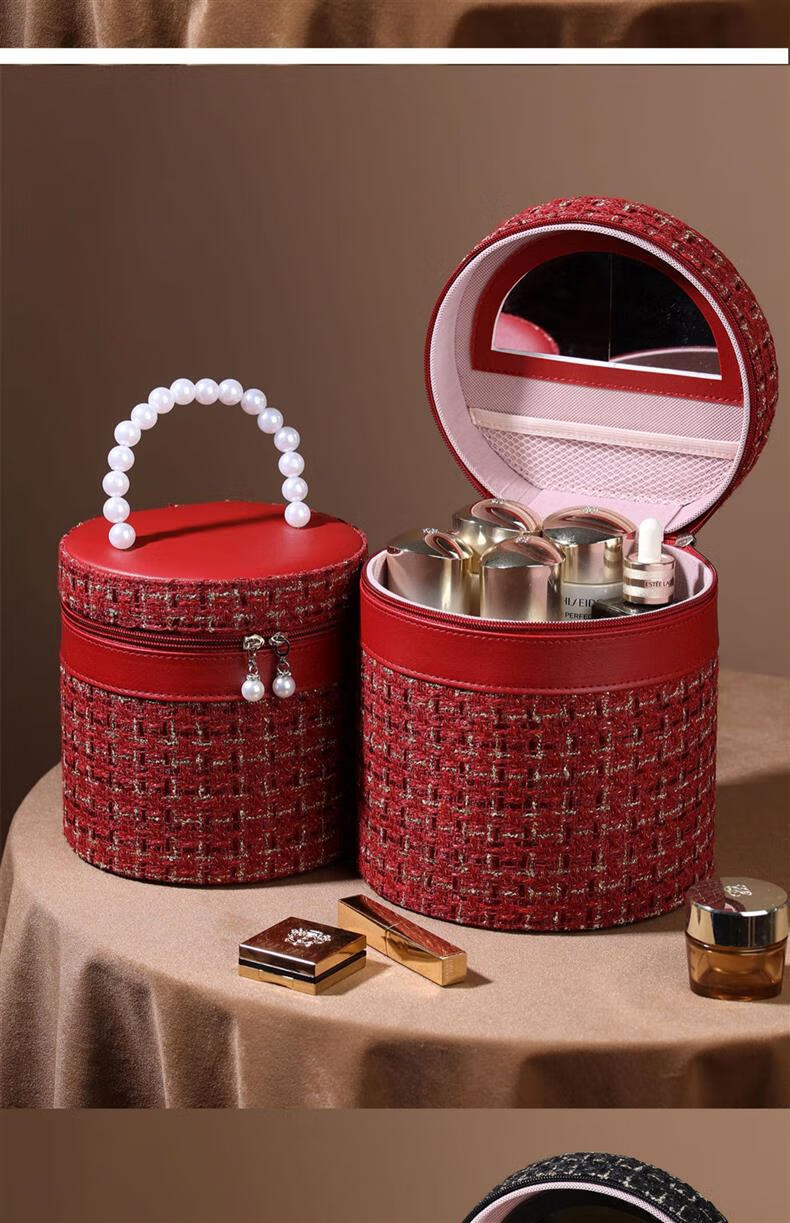 German quality desktop light luxury skin care product cosmetics storage box desktop high-end large-capacity dust-proof portable bag high-end wine red large size