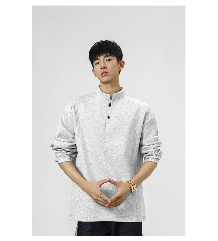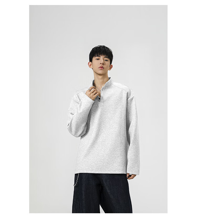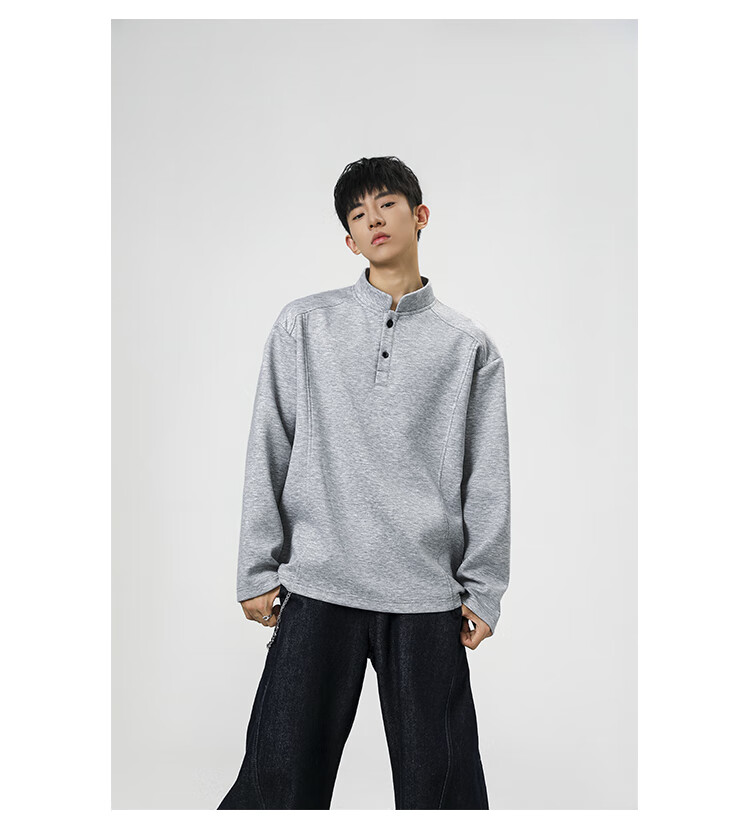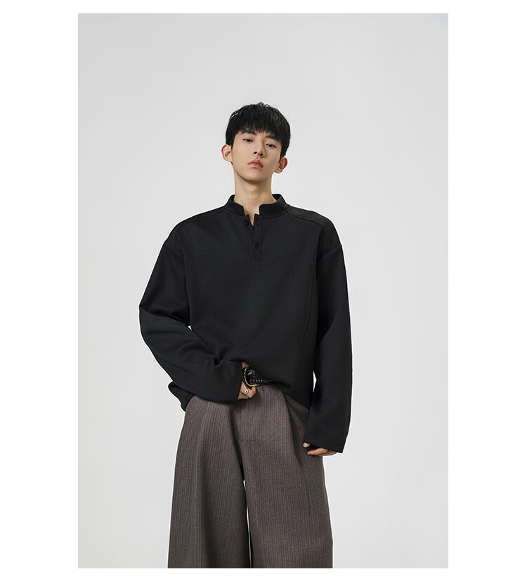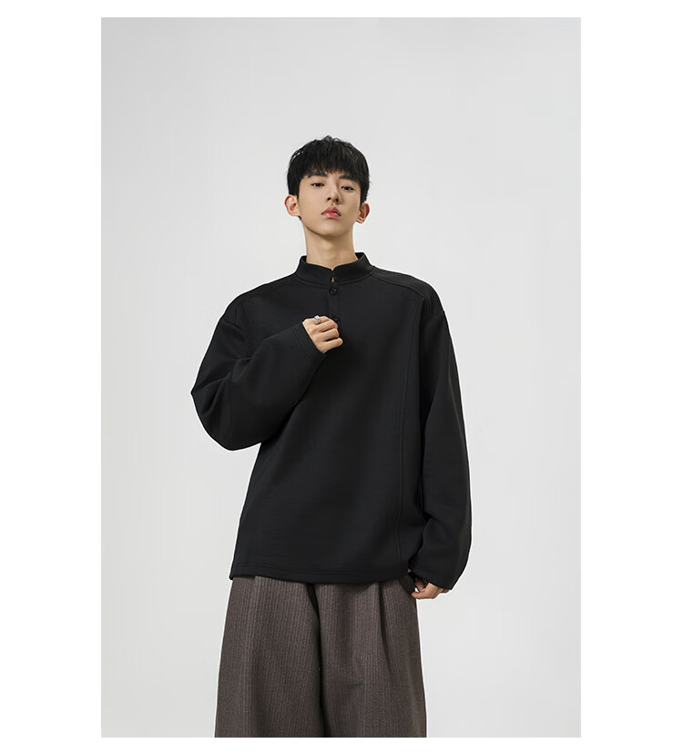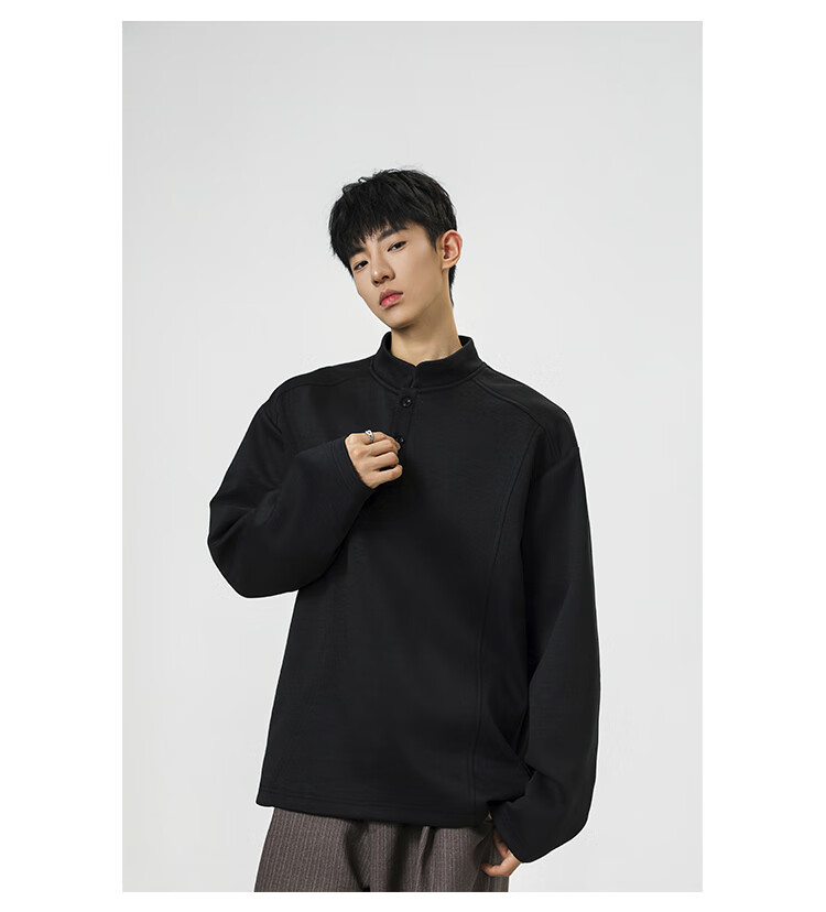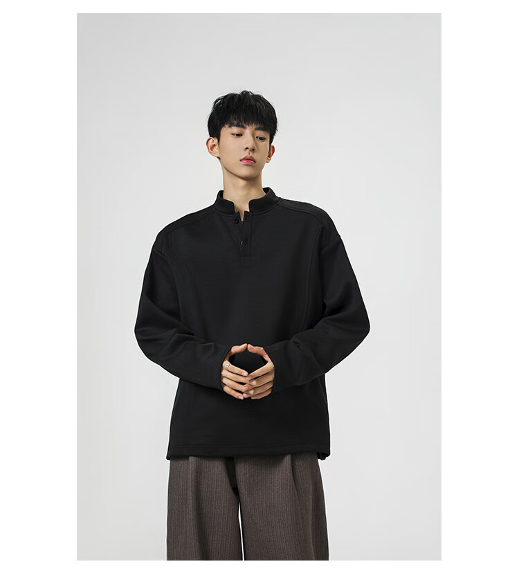 Homlean American Polo Henry shirt men's long-sleeved T-shirt autumn top with casual men's base sweatshirt JC-T24555 black M (recommended 85-100Jin Jin equals 0.5 kg)