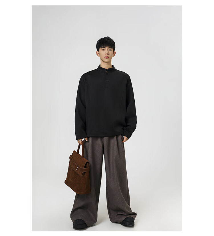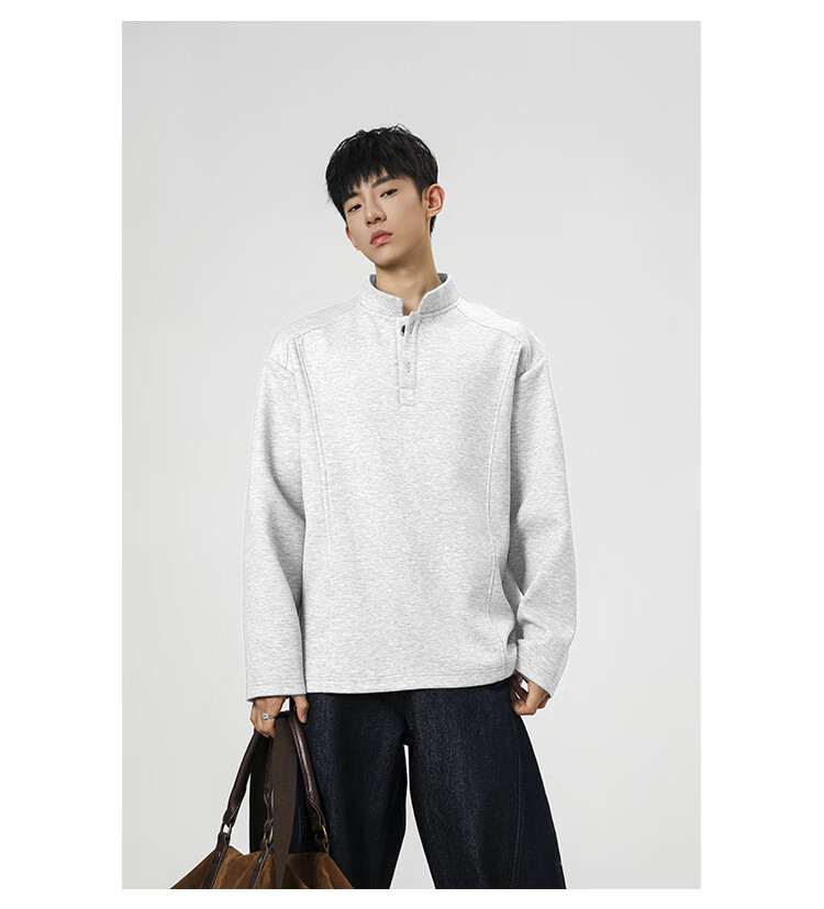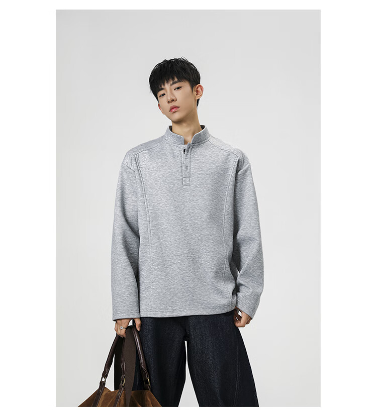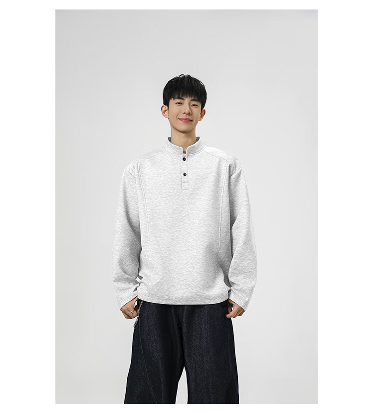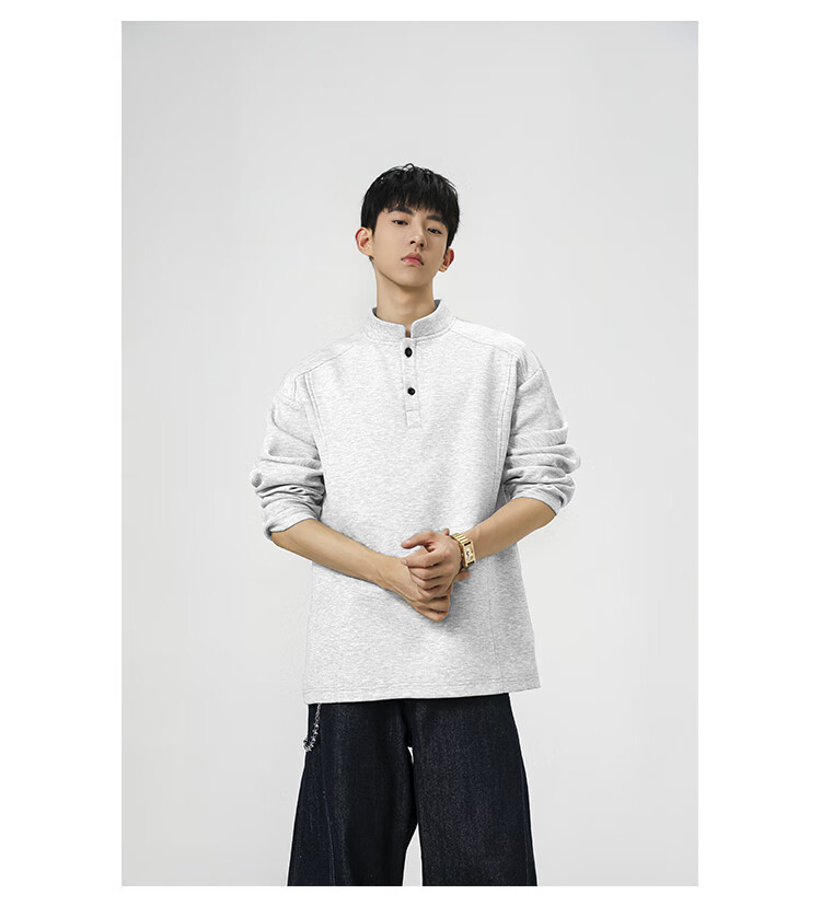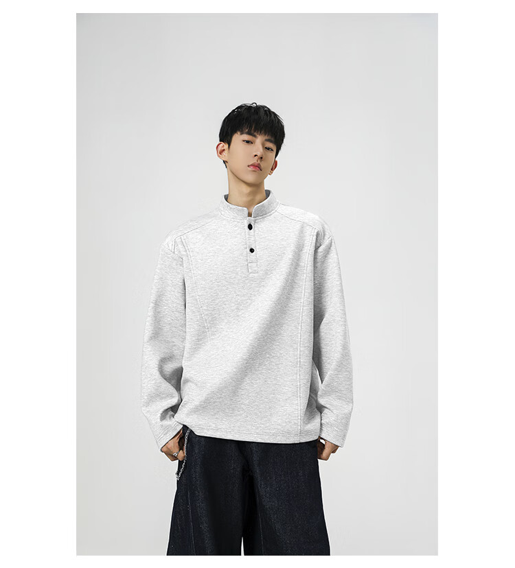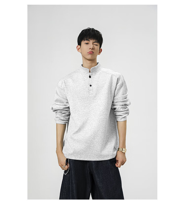 Homlean American Polo Henry shirt men's long-sleeved T-shirt autumn top with casual men's base sweatshirt JC-T24555 black M (recommended 85-100Jin Jin equals 0.5 kg)