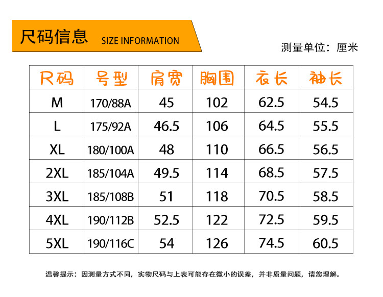 China (cm) 165 / 88-90 170 / 96-98 175 / 108-110 180 / 118-122 185 / 126-130