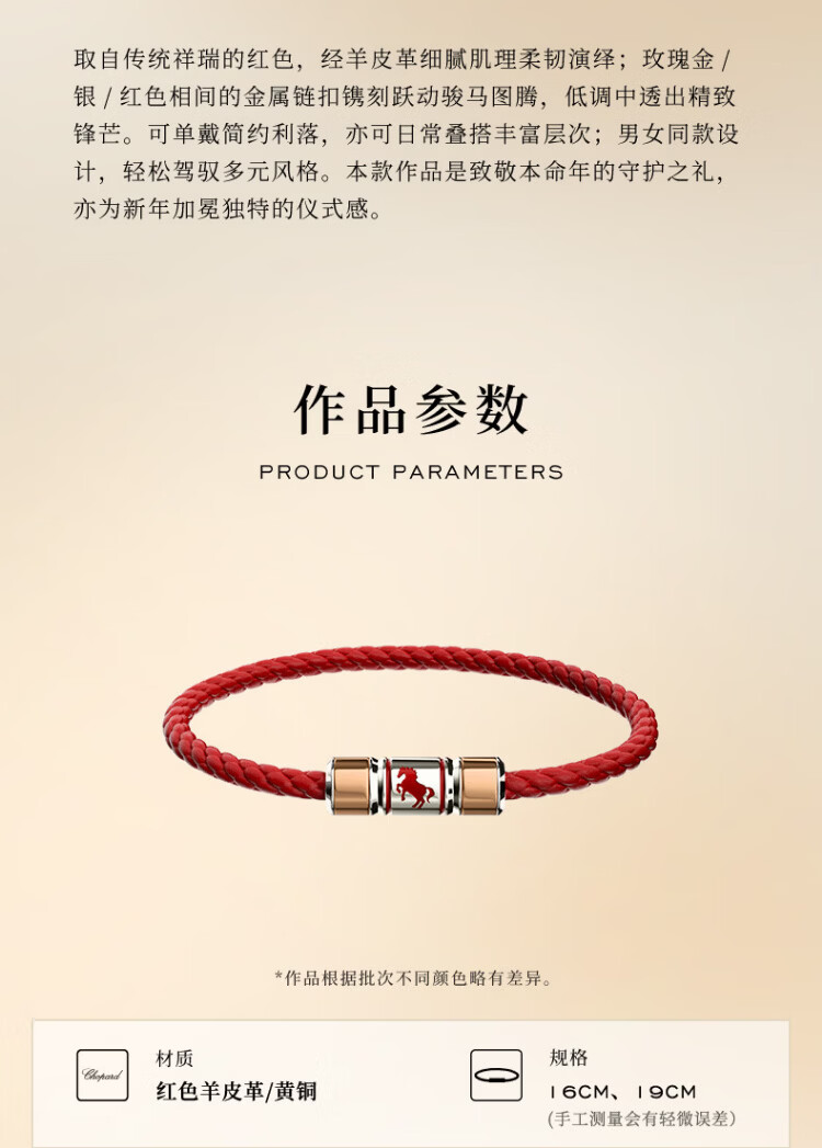 Chopard Year of the Horse New Year Red Sheep Leather Brass Red Rope Bracelet Couple Same Style Zodiac Year Gift Online Limited Edition Red Sheep Leather/Brass 19cm