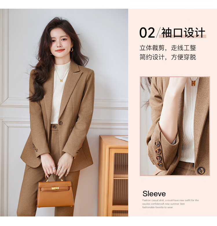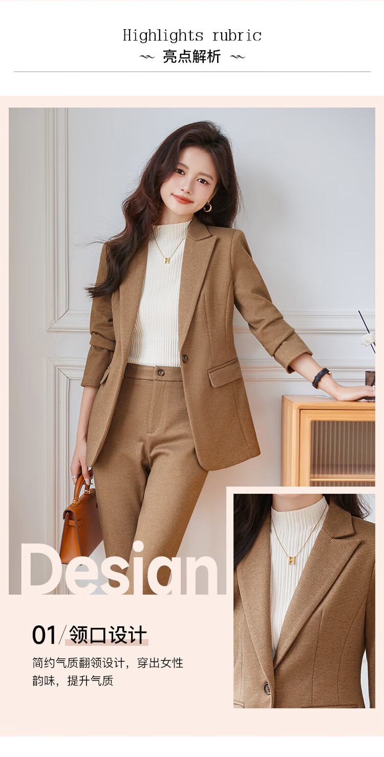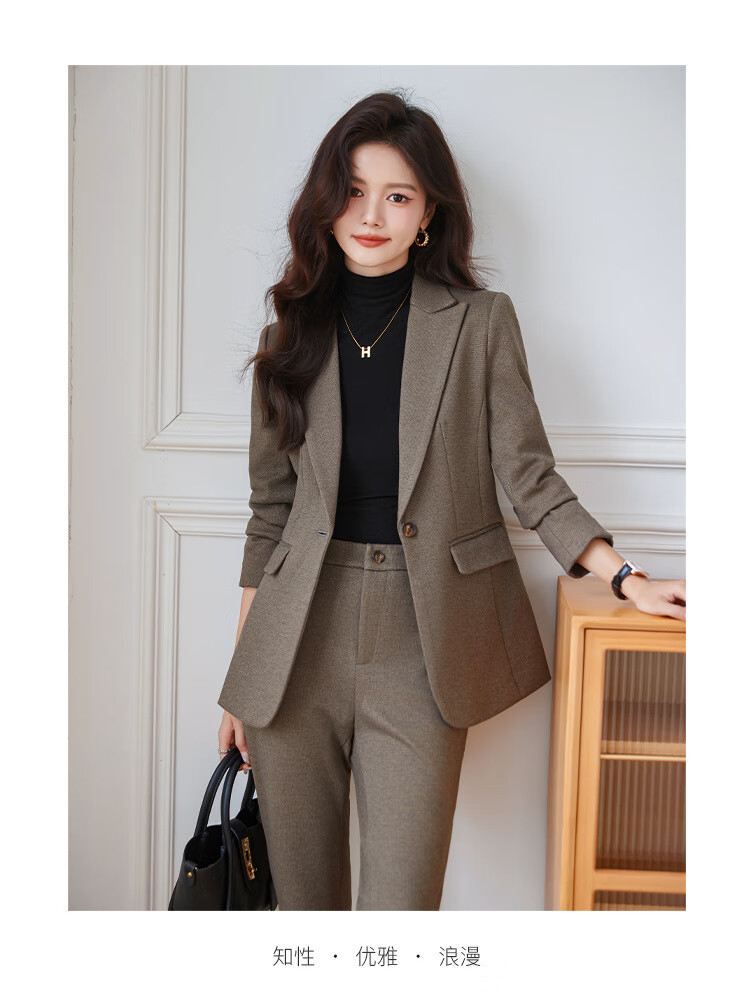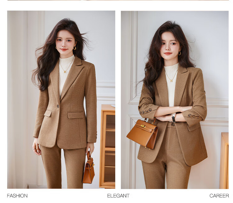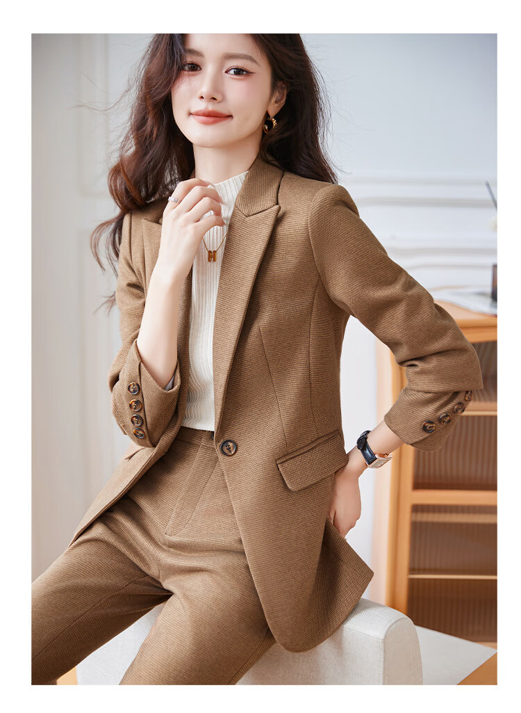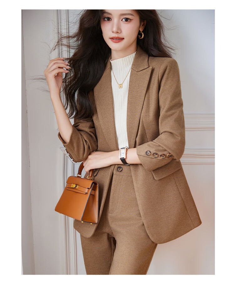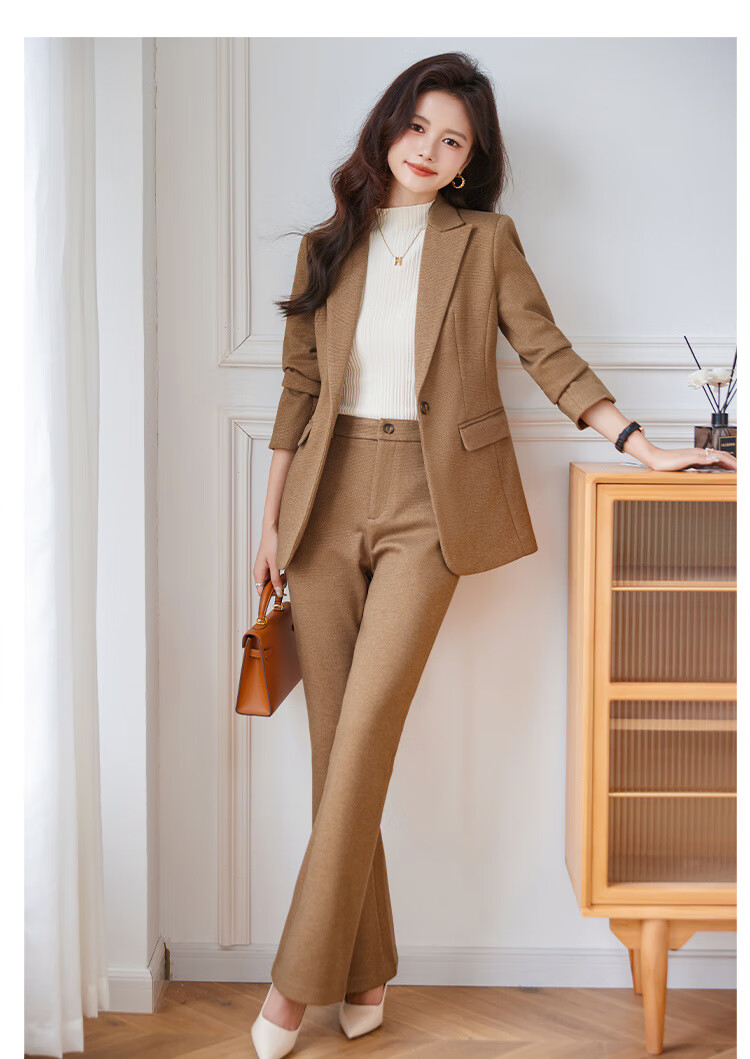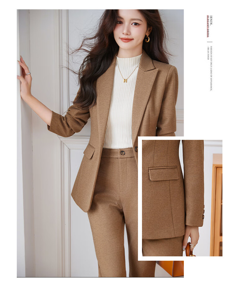 Faberza light brown woolen suit for women in autumn and winter thickened temperament goddess style small commuting suit jacket for women light brown suit + pants L
