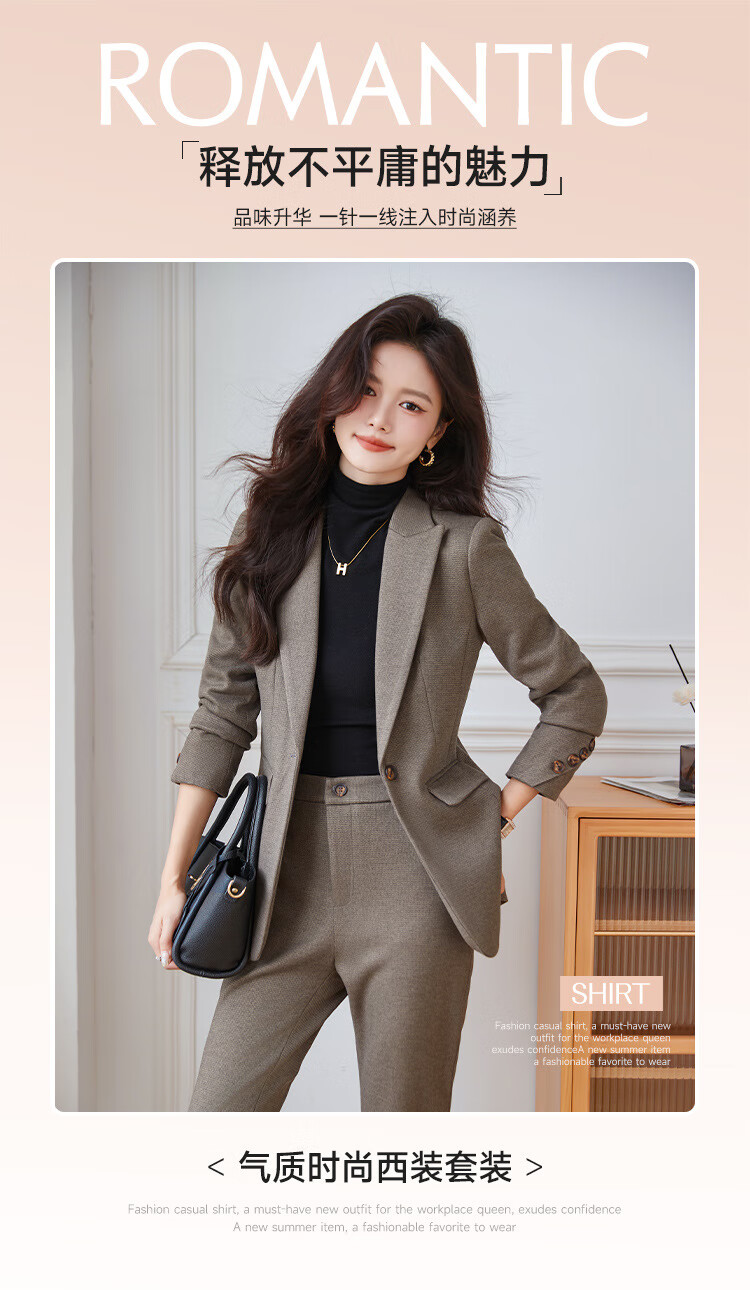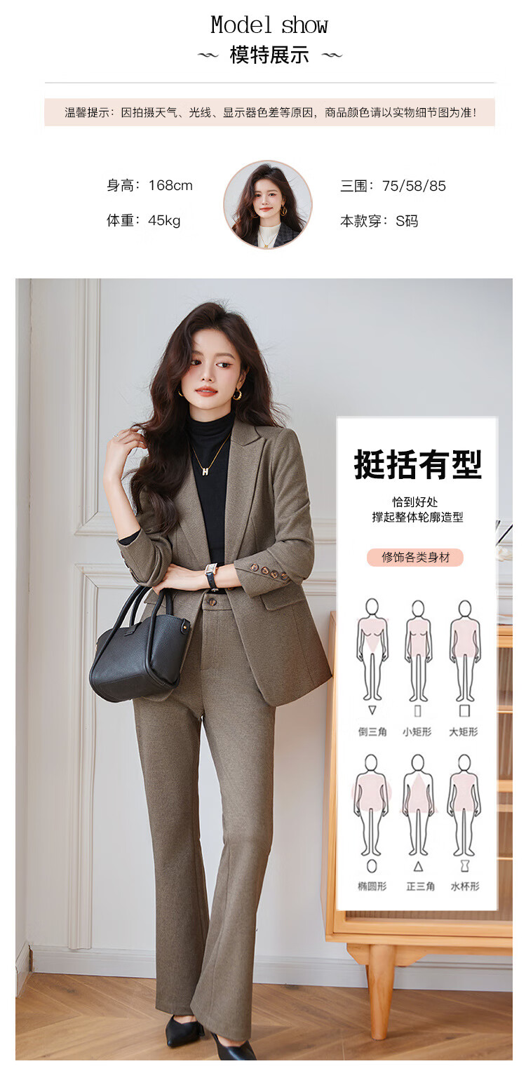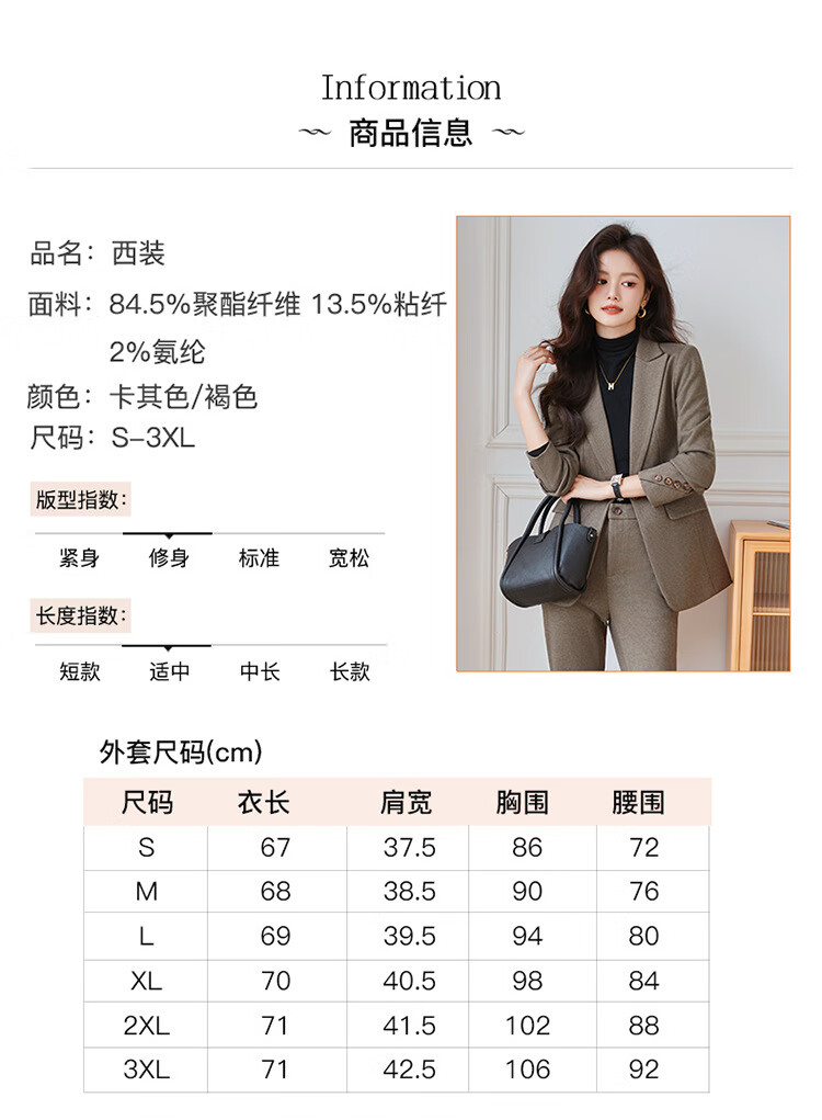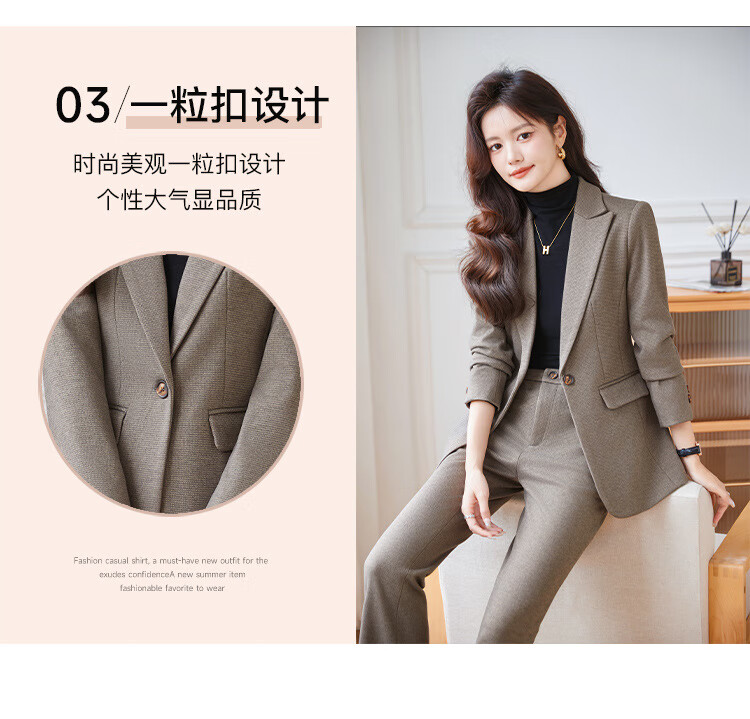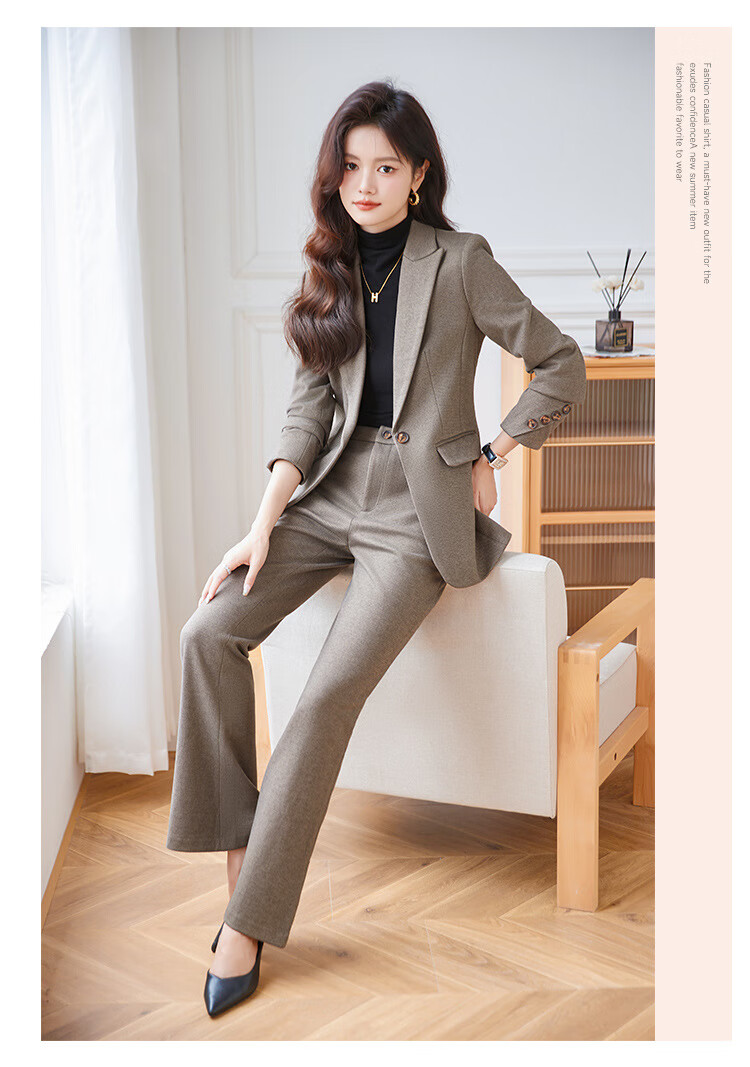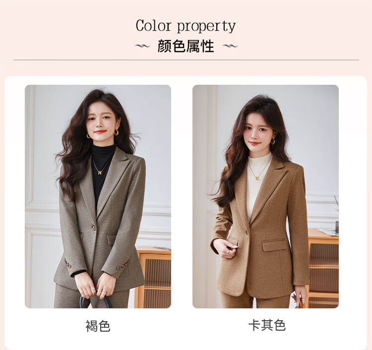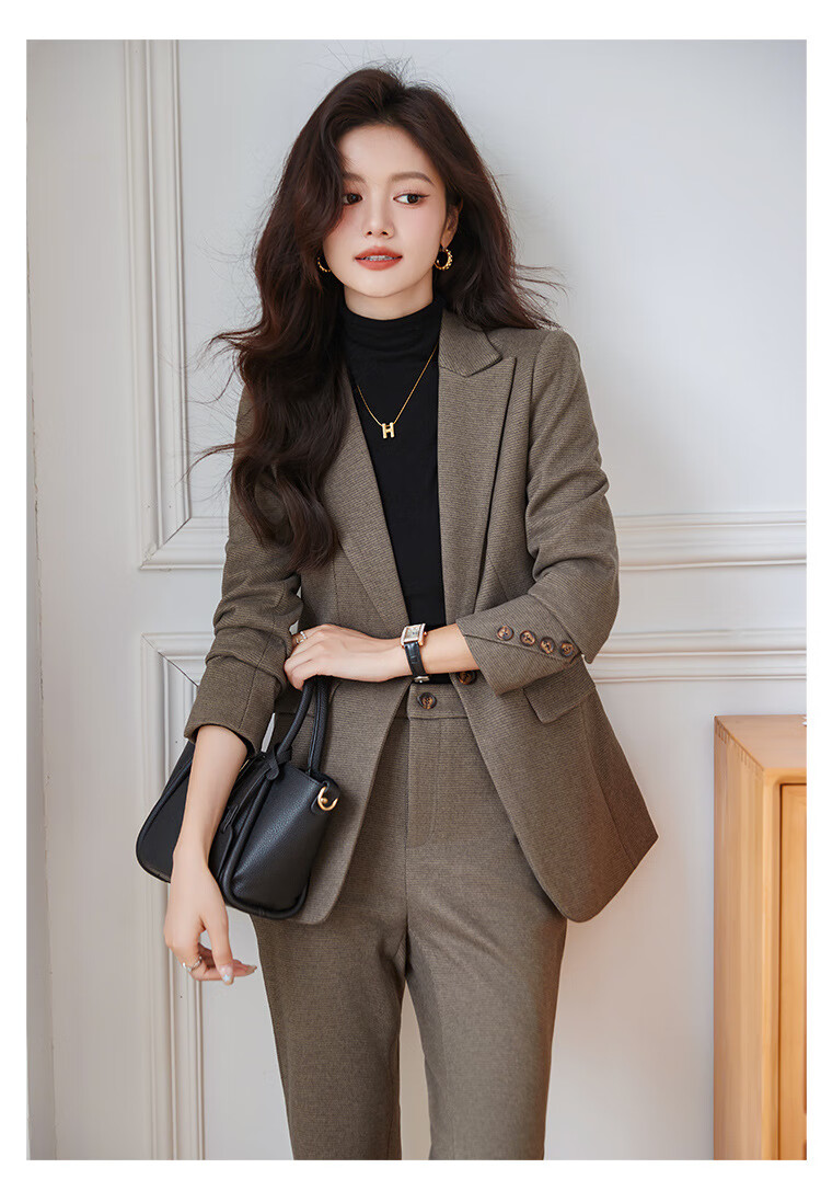 Faberza light brown woolen suit for women in autumn and winter thickened temperament goddess style small commuting suit jacket for women light brown suit + pants L