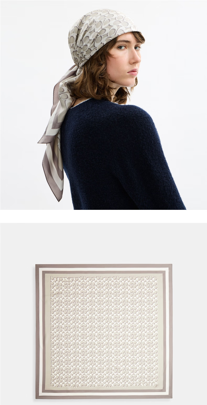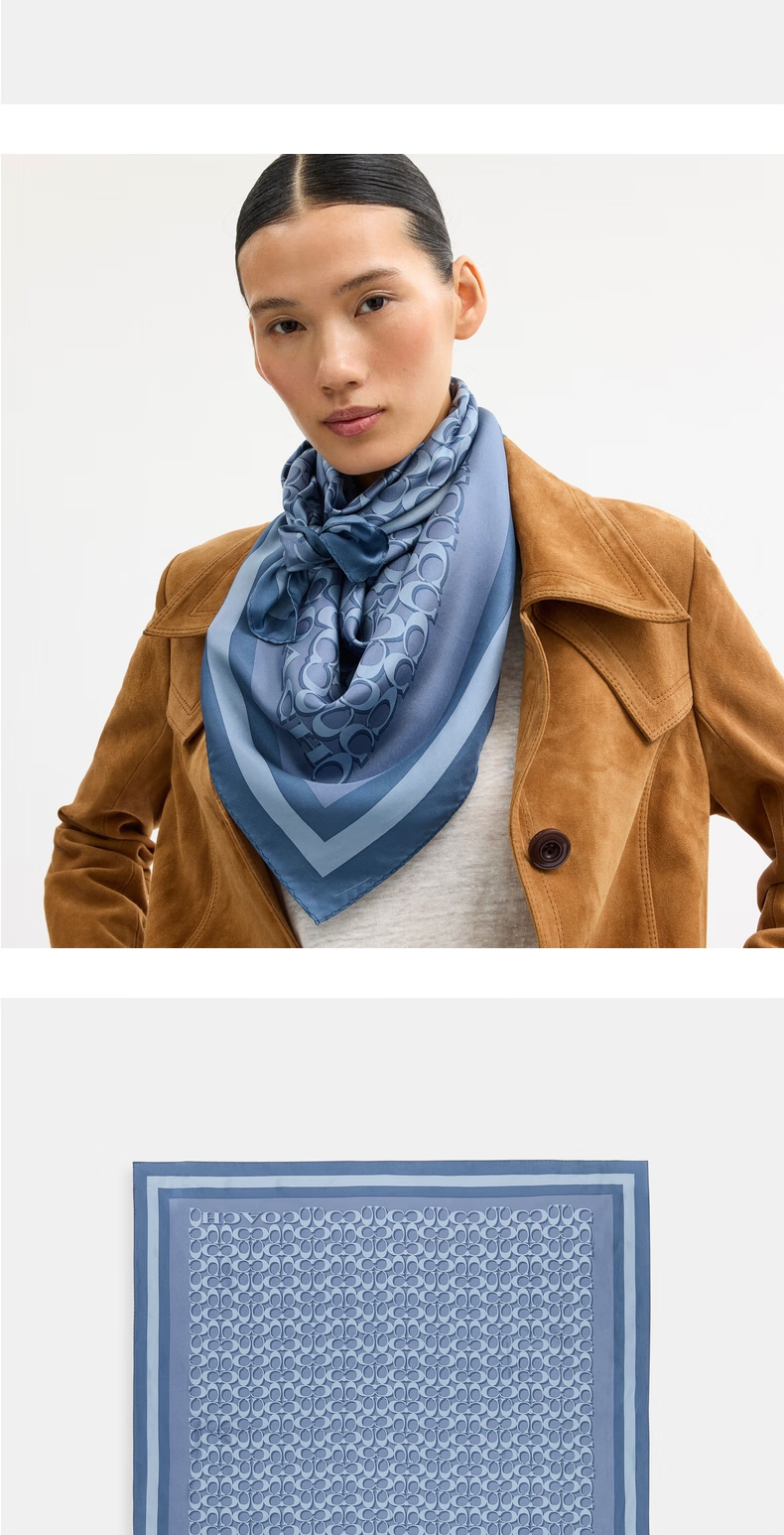 COACH New Year's gift Ole ladies classic logo mulberry silk square scarf gift light denim color