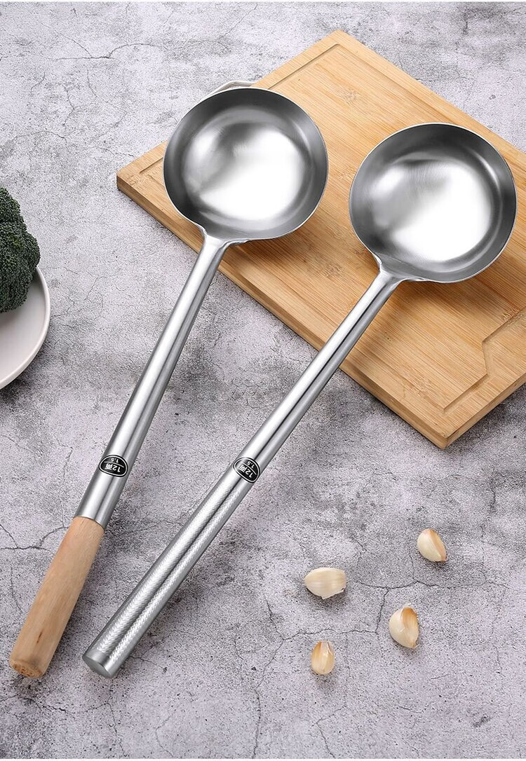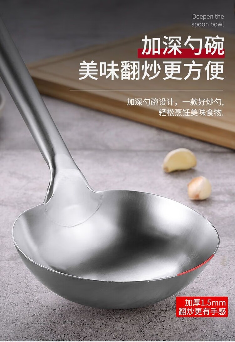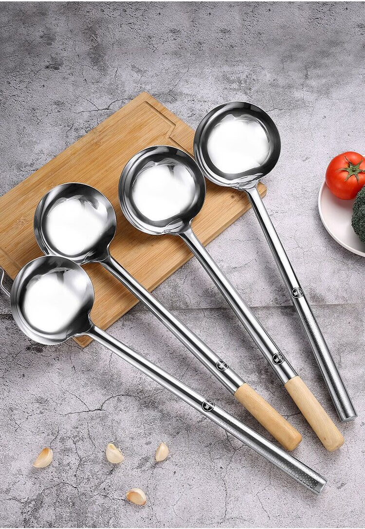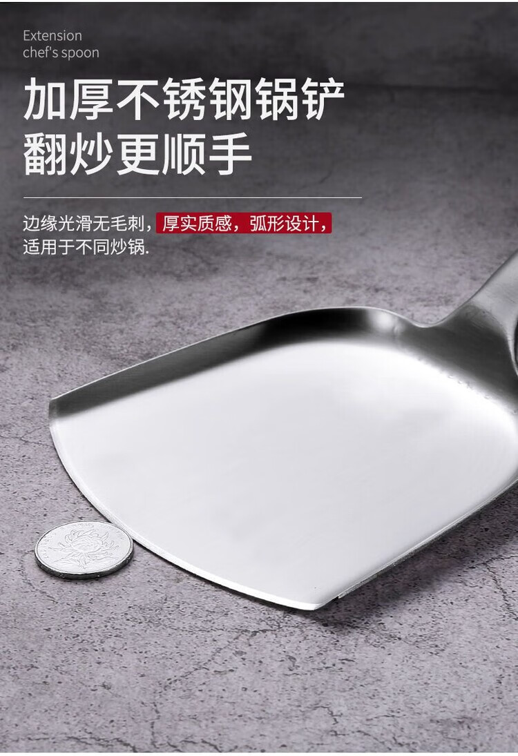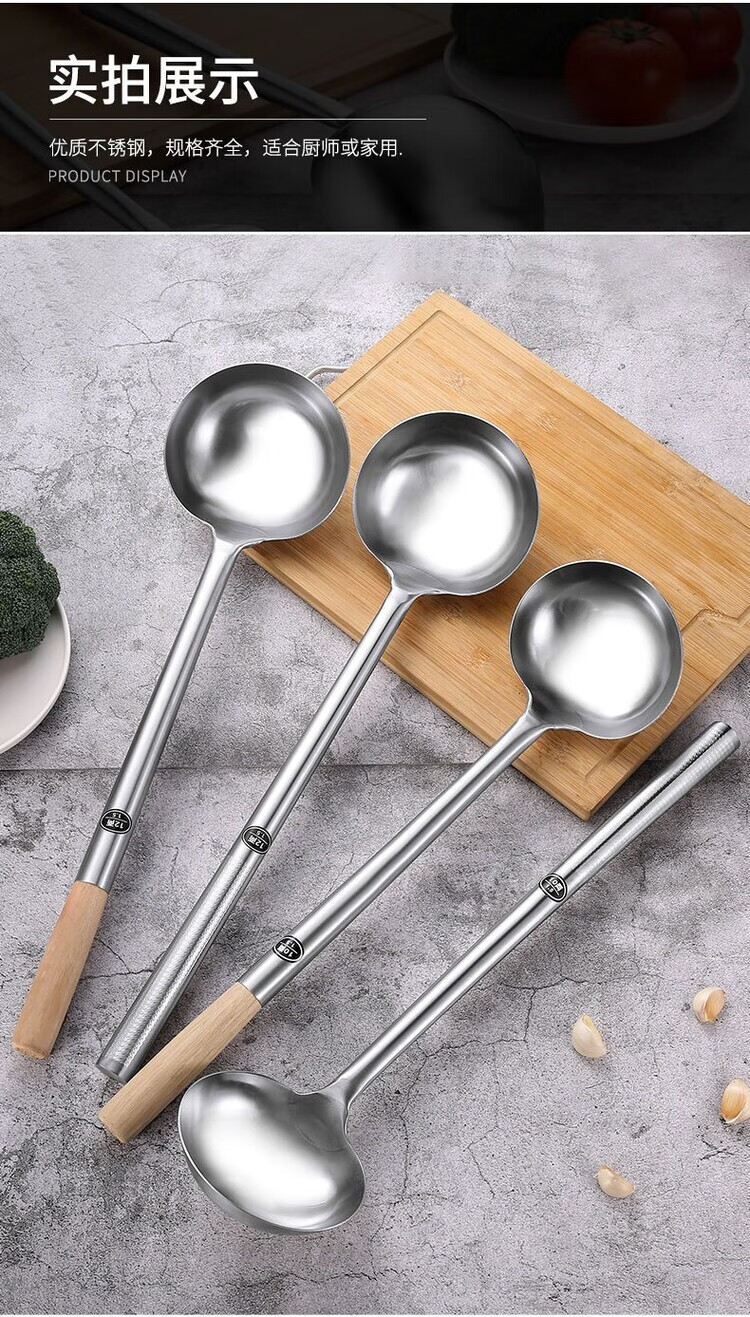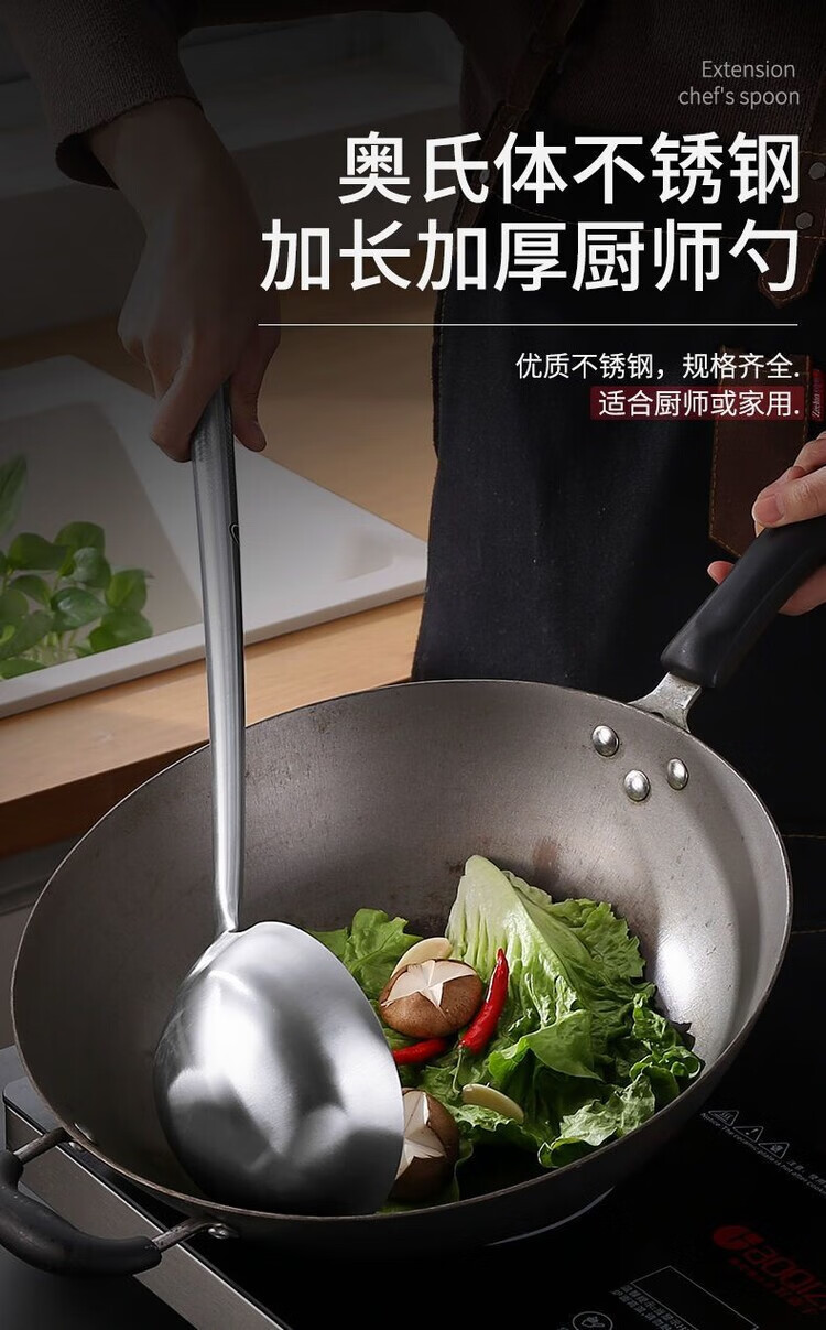 Fantasy German imported high-quality stainless steel frying spoon chef cooking spoon long-handled soup spoon dividing spoon cooking spoon kitchen old-fashioned upgraded super thick 304 style more sturdy and durable hotel stir-fry spatula steel handle