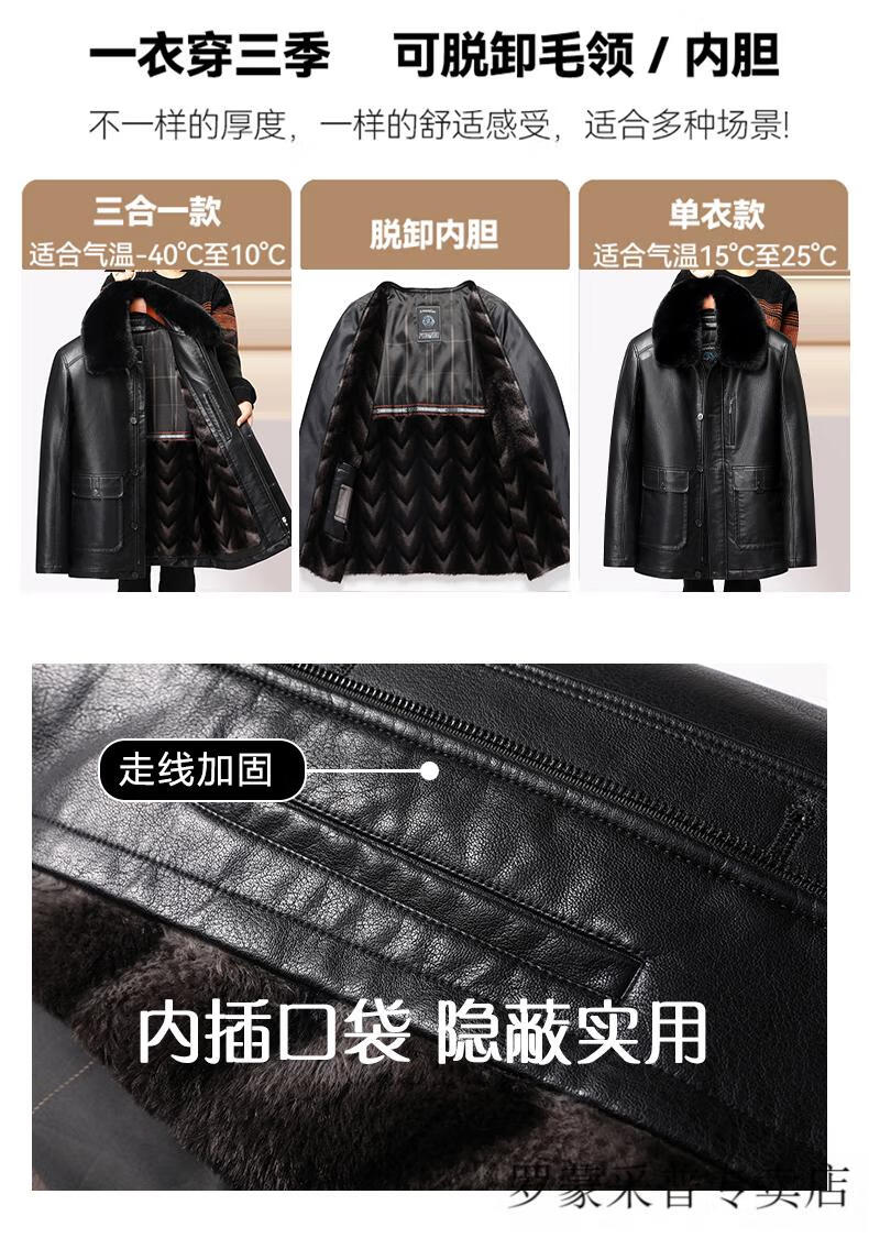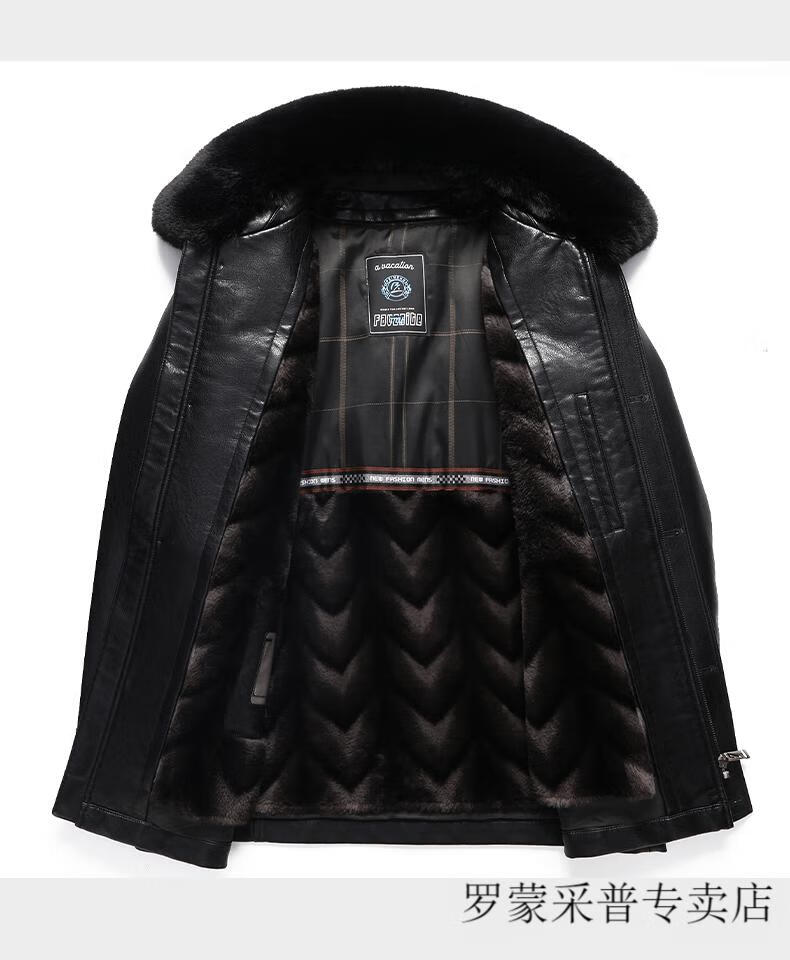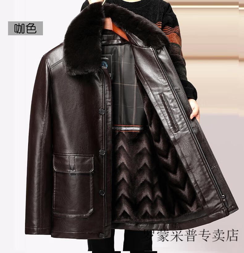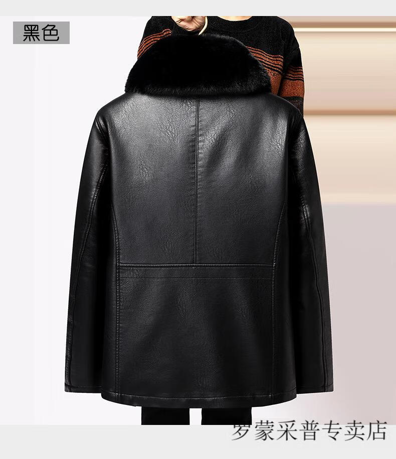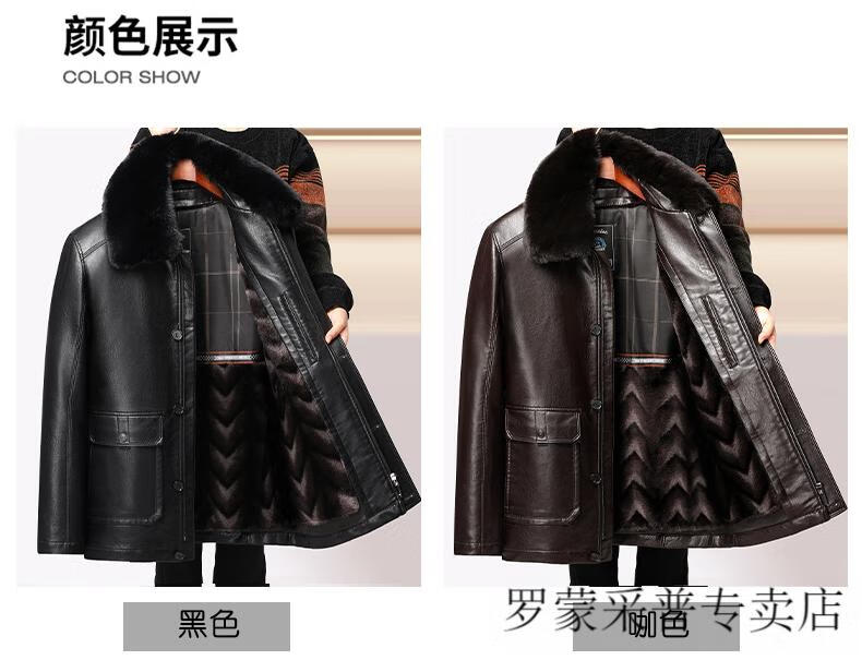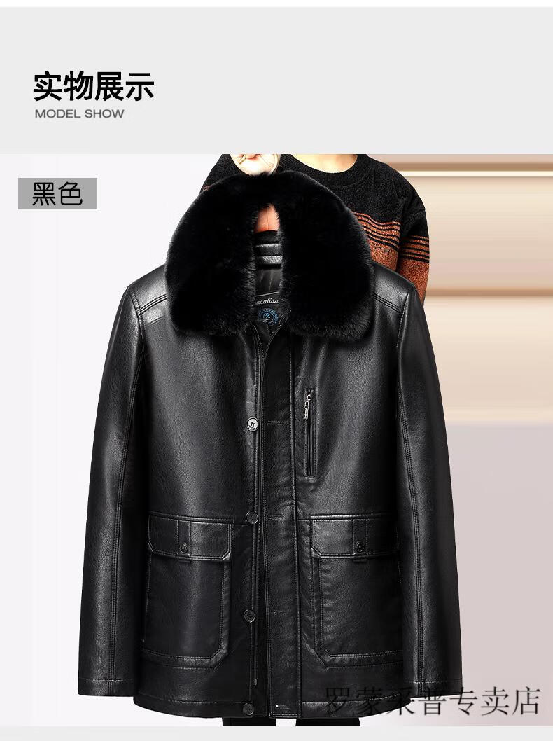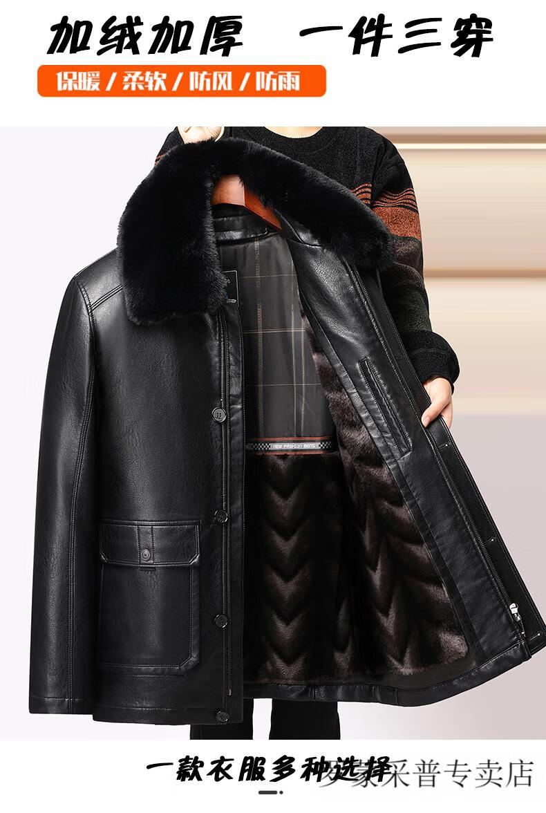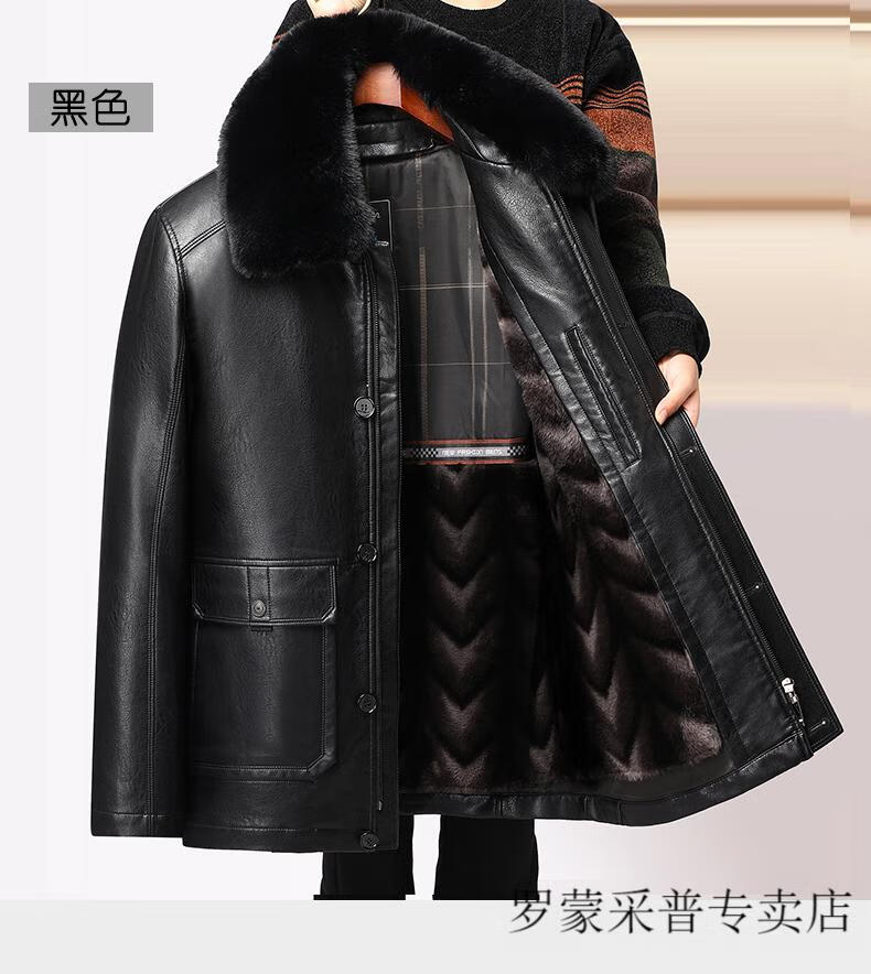 Luo Meng dad leather jacket velvet thickened 2025 new middle-aged and elderly men's winter jacket grandpa and the elderly winter leather jacket 228 black L 175/88A