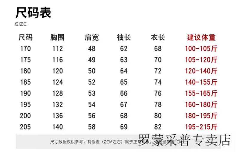 China (cm) 165 / 88-90 170 / 96-98 175 / 108-110 180 / 118-122 185 / 126-130