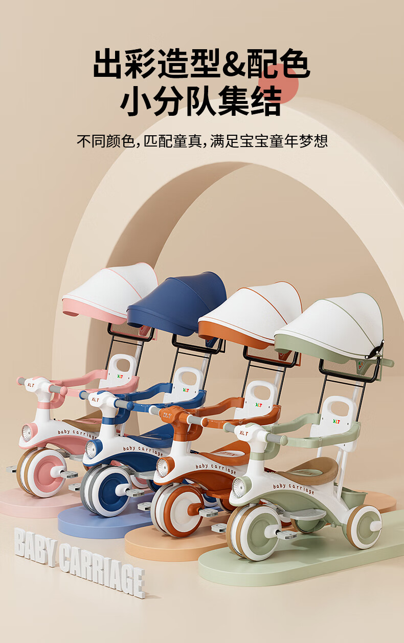 Children's tricycle with music bicycle 1 3 6 year old baby stroller light pedal bicycle child bicycle princess pink pedals removable music light + push handle