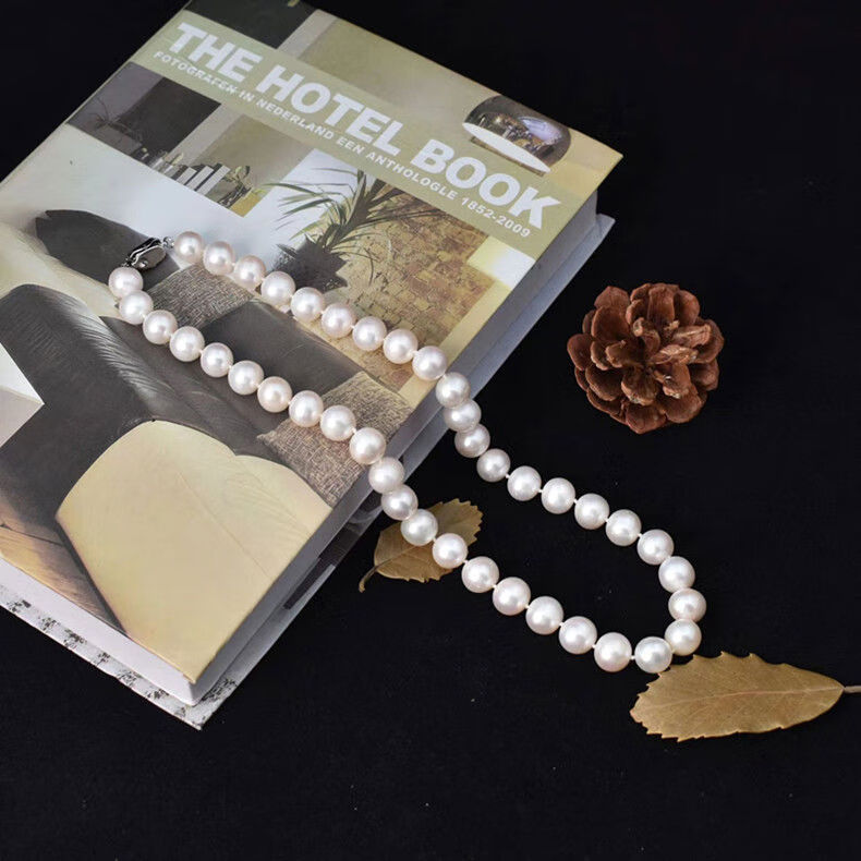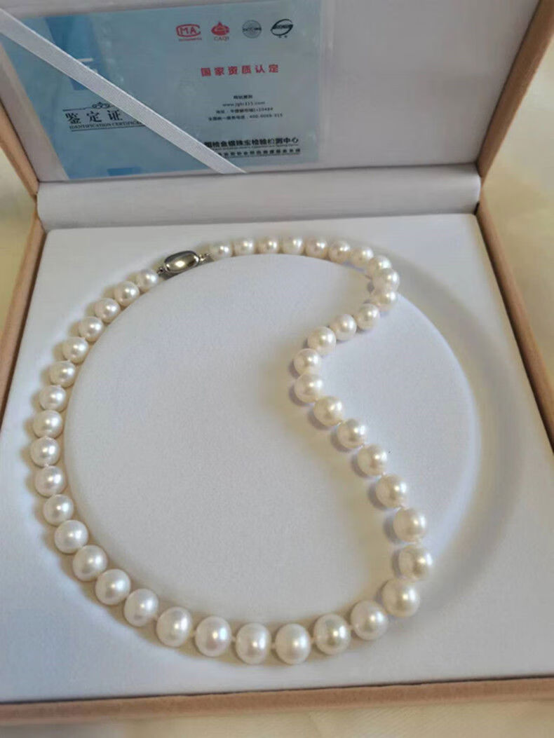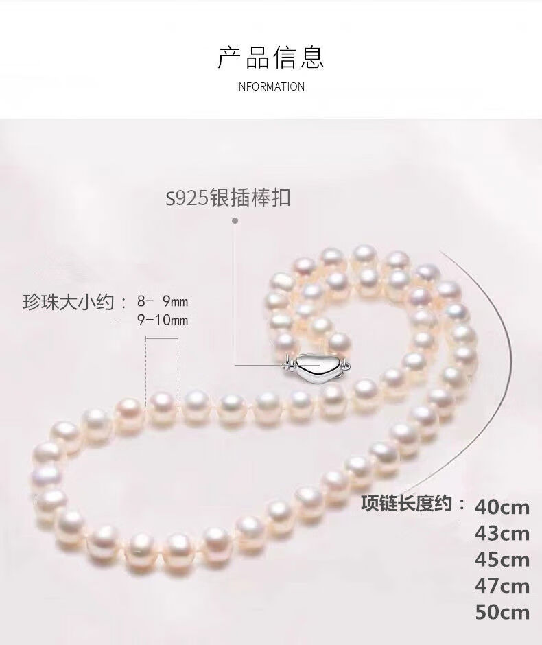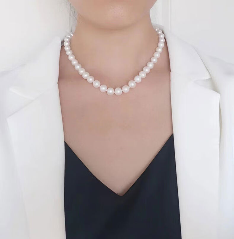 Natural Freshwater Pearl Necklace Round Highlight S925 Silver Light Luxury Women's Long Neck Jewelry as a Mother's Day Gift 40cm White 8-9mm