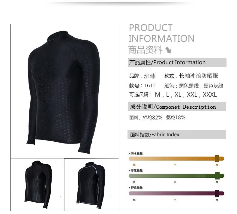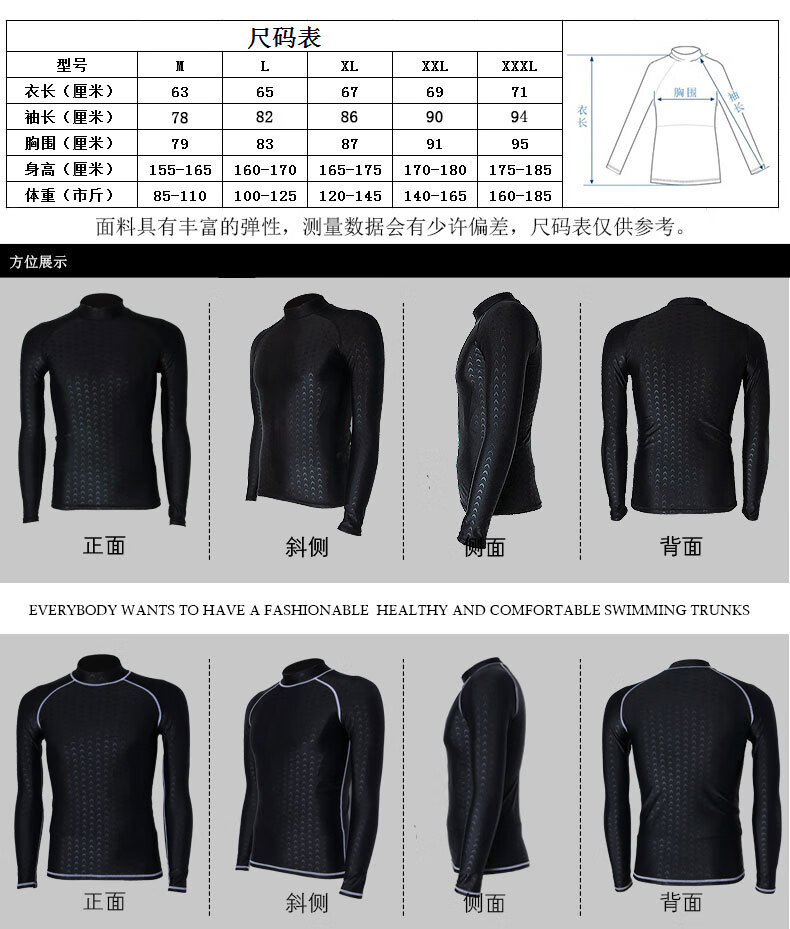Waterproof and quick-drying men's long-sleeved diving swimming top coach clothing men's imitation shark skin snorkeling and surfing clothing black black line M 155-160