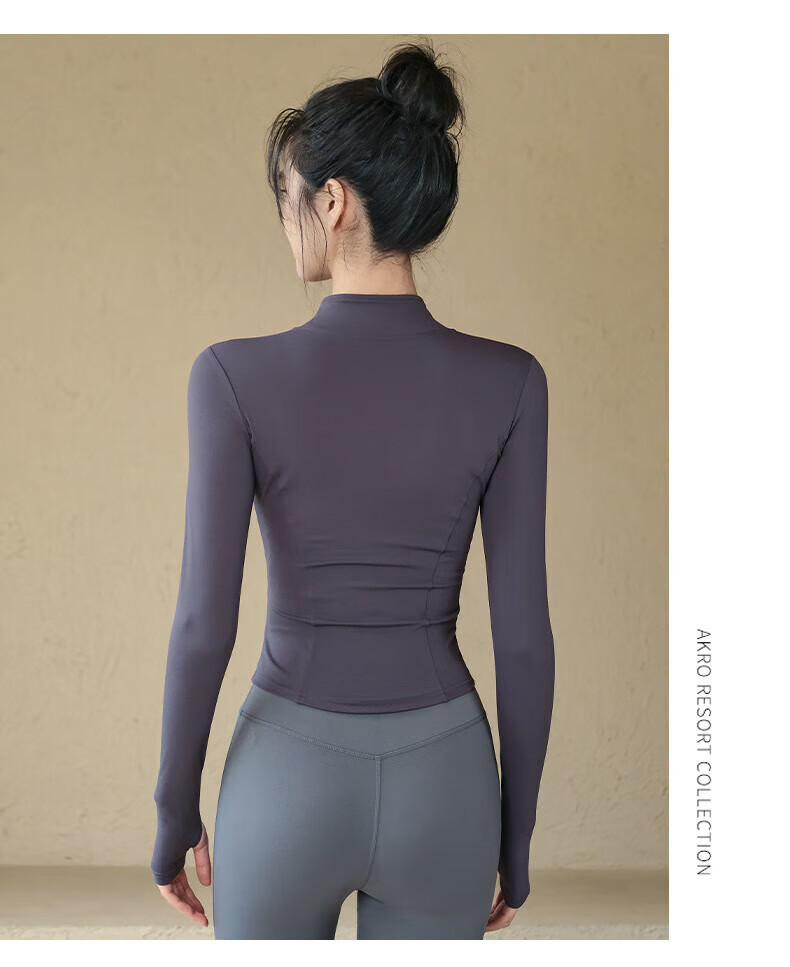 COZOK Cycling and Running Sports Jacket Women's Autumn and Winter Quick-Drying Yoga Wear Tops Fitness Wear Pilates Training Wear Long Sleeve Black - Waist Slimming S