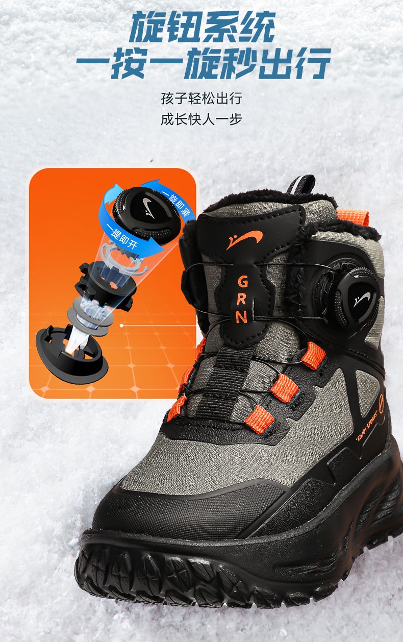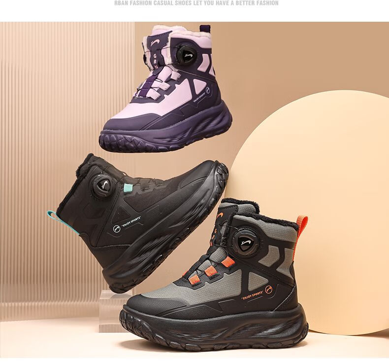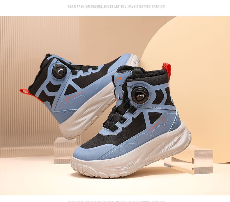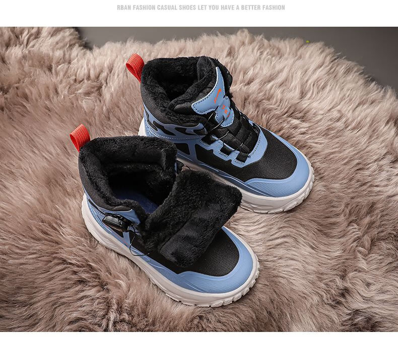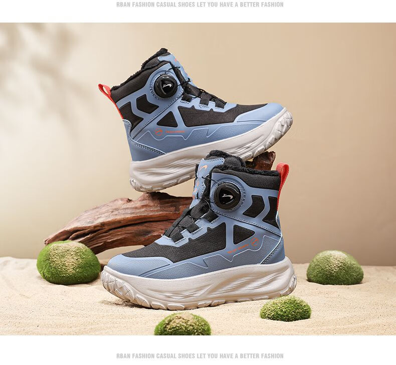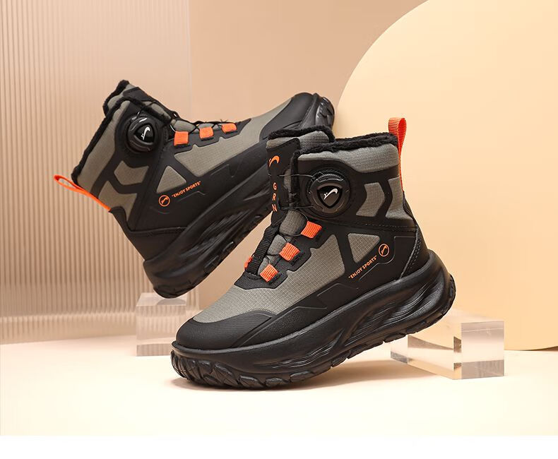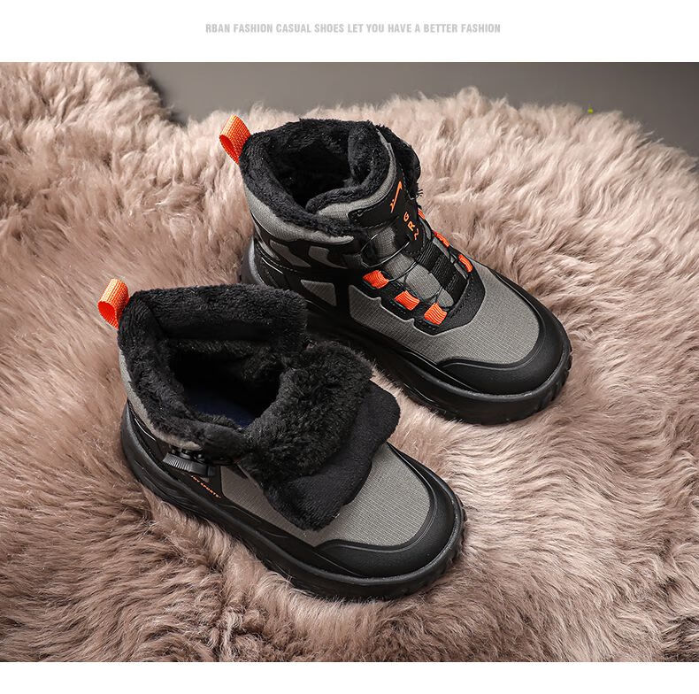 Guirenniao Guirenniao boys' snow boots 2025 autumn and winter new style velvet warm wear-resistant non-slip children's high-top sports shoes 25093M black (velvet cotton shoes) 31 (inner length 19.8/foot length 18.8)