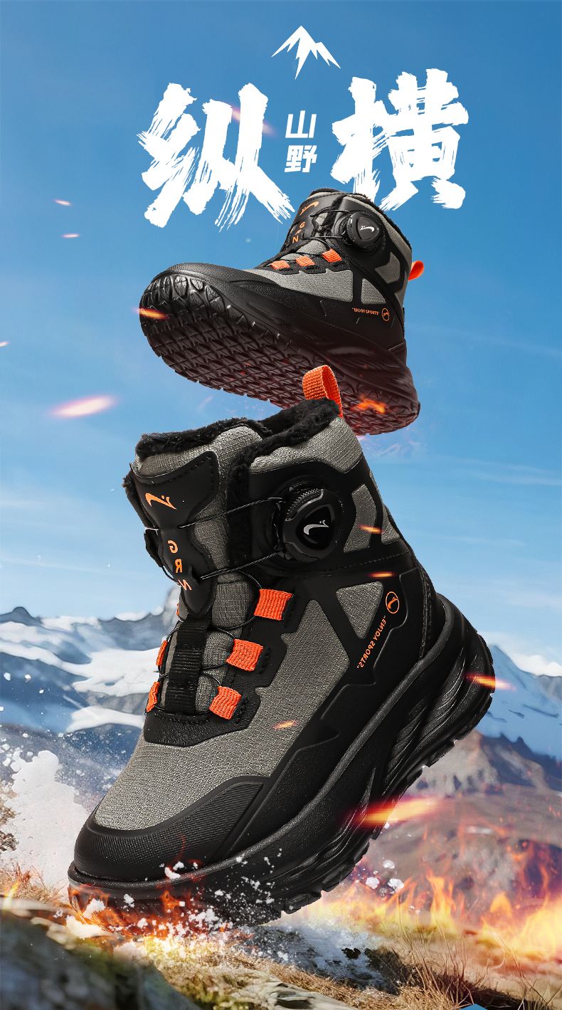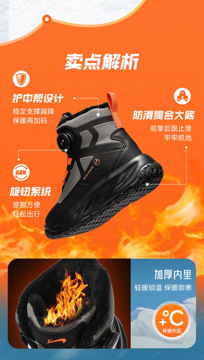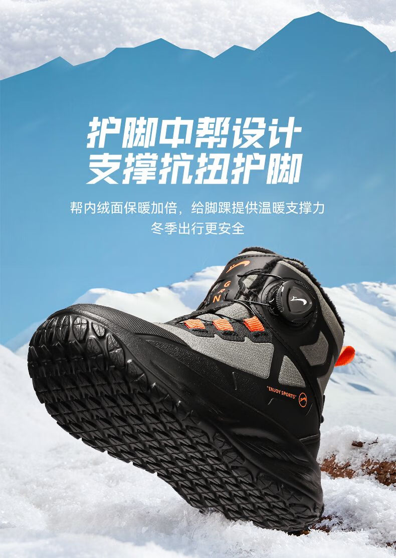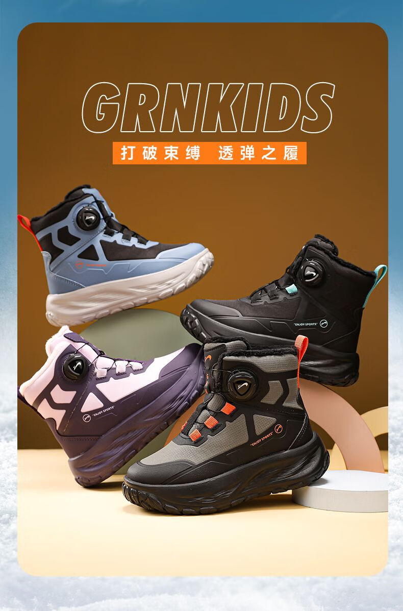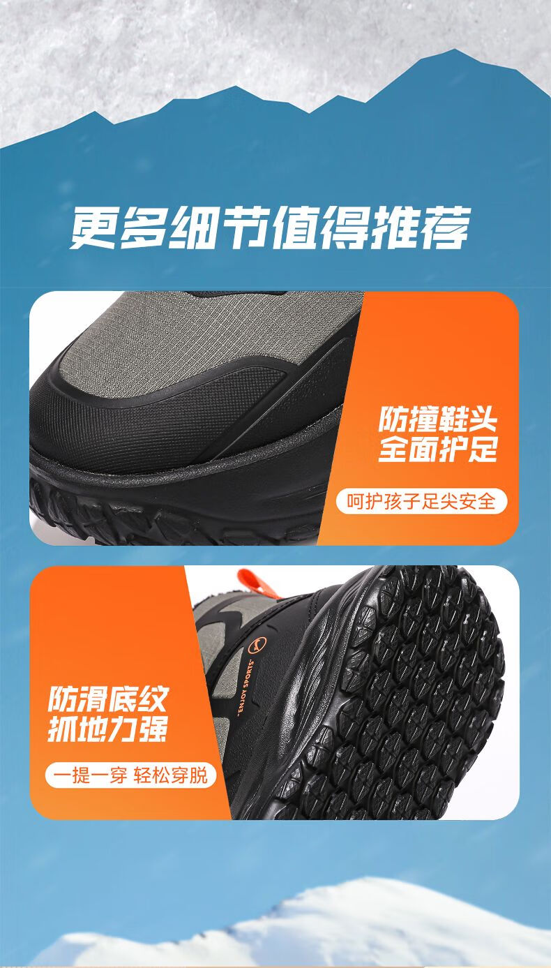 Guirenniao Guirenniao boys' snow boots 2025 autumn and winter new style velvet warm wear-resistant non-slip children's high-top sports shoes 25093M black (velvet cotton shoes) 31 (inner length 19.8/foot length 18.8)