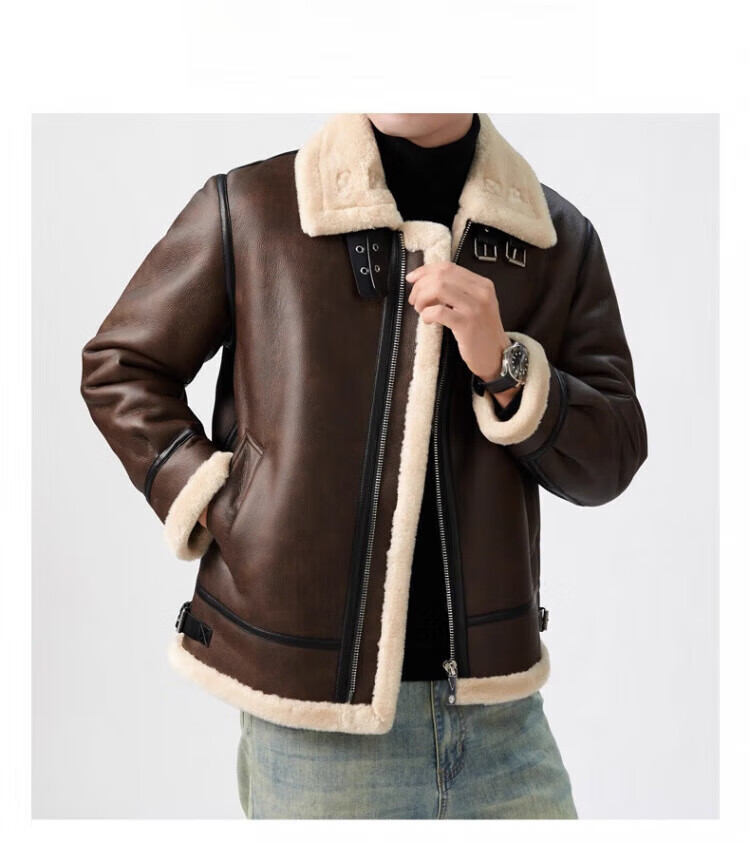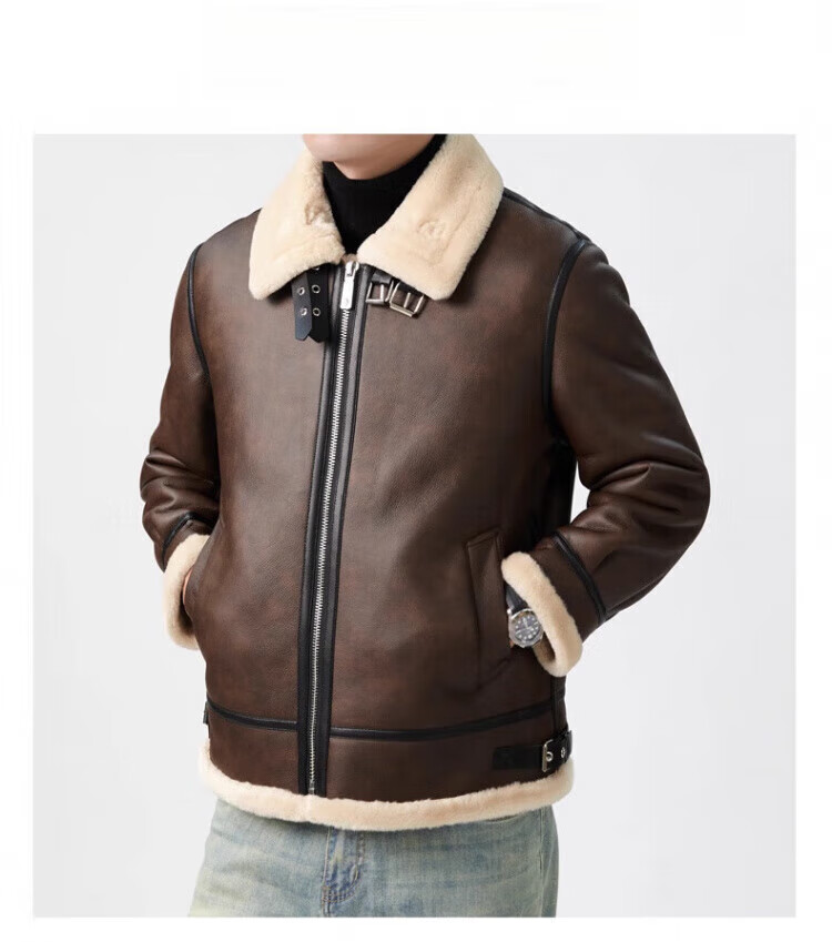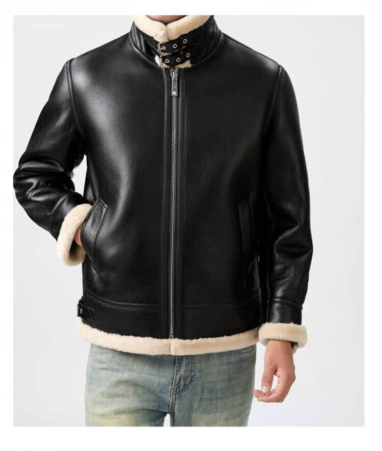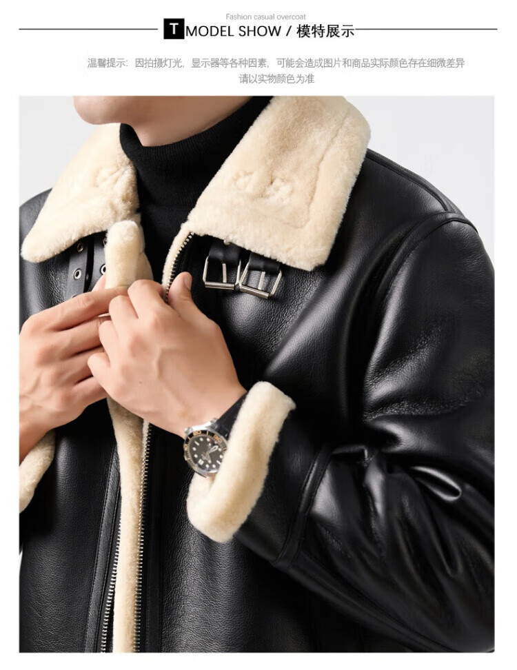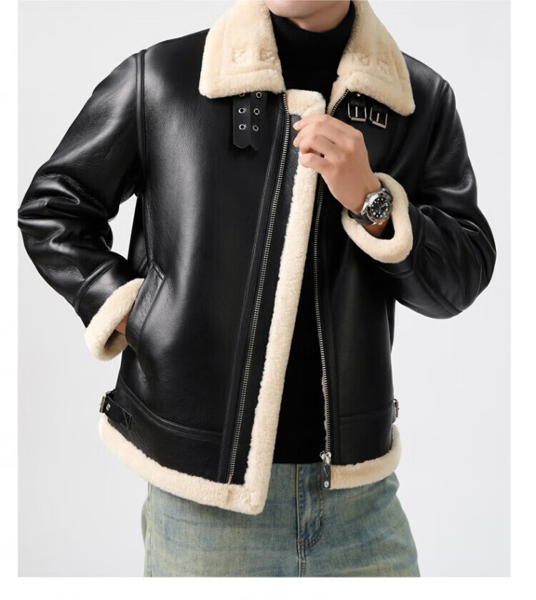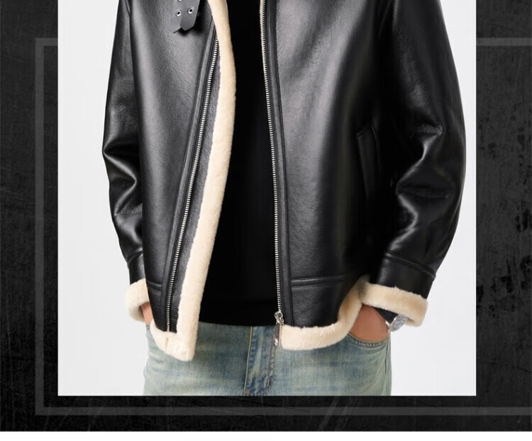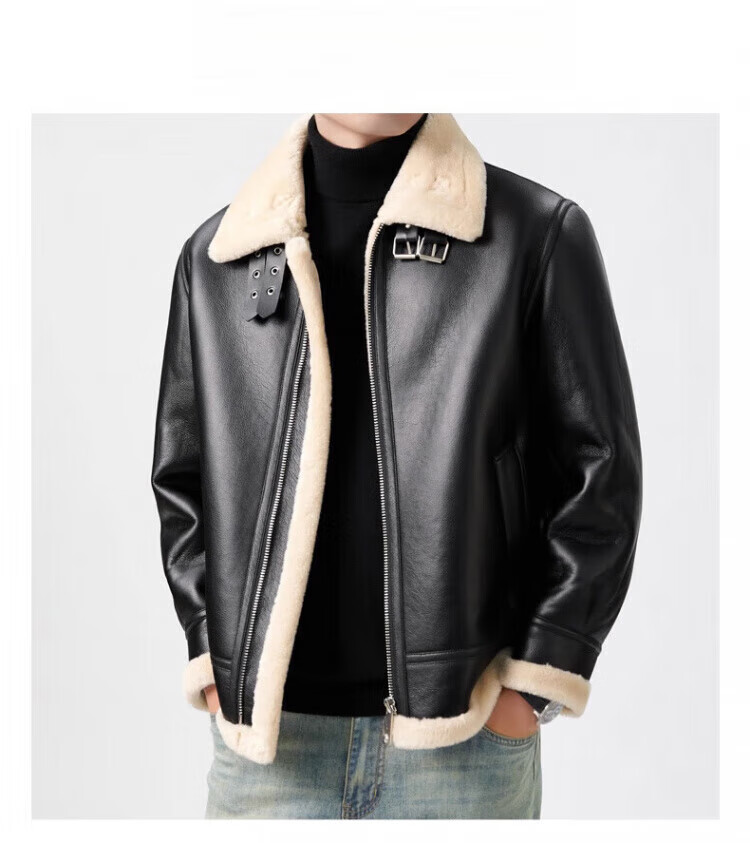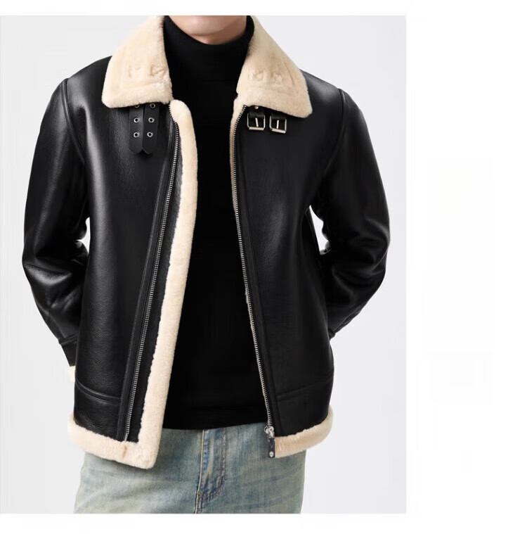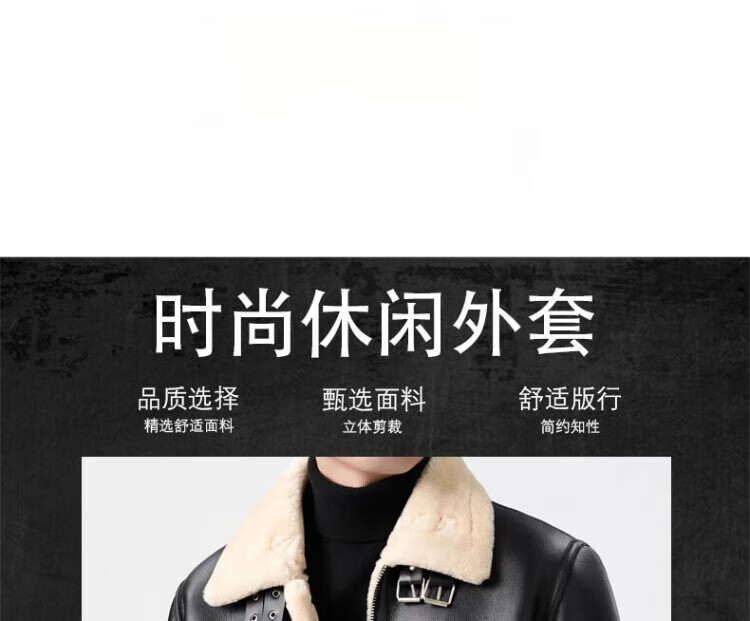Pierre Cardin flagship store fur-integrated plus velvet leather jacket men's lamb velvet comfortable and warm jacket thickened cold-proof leather jacket for men black fur-integrated M /170