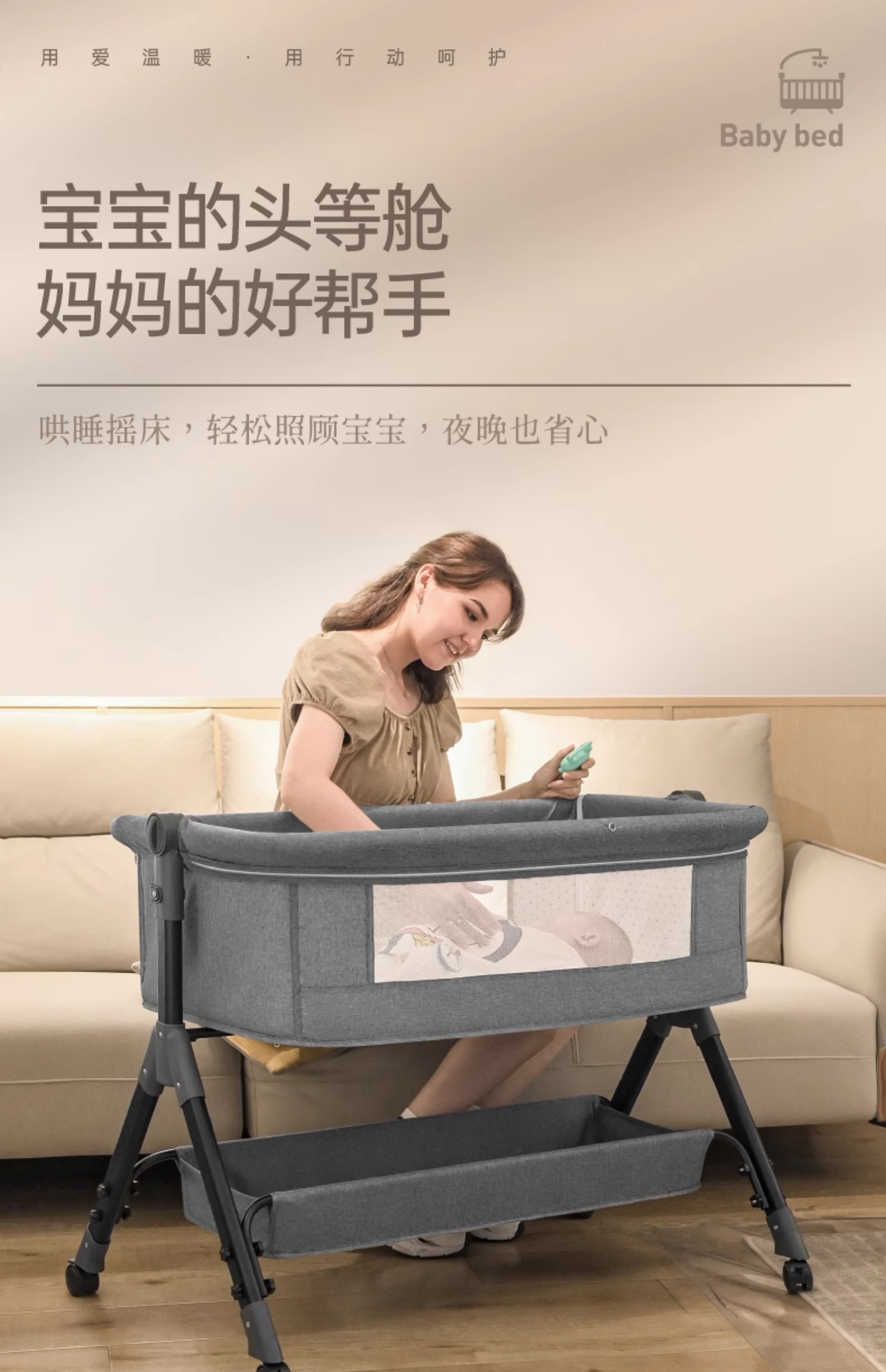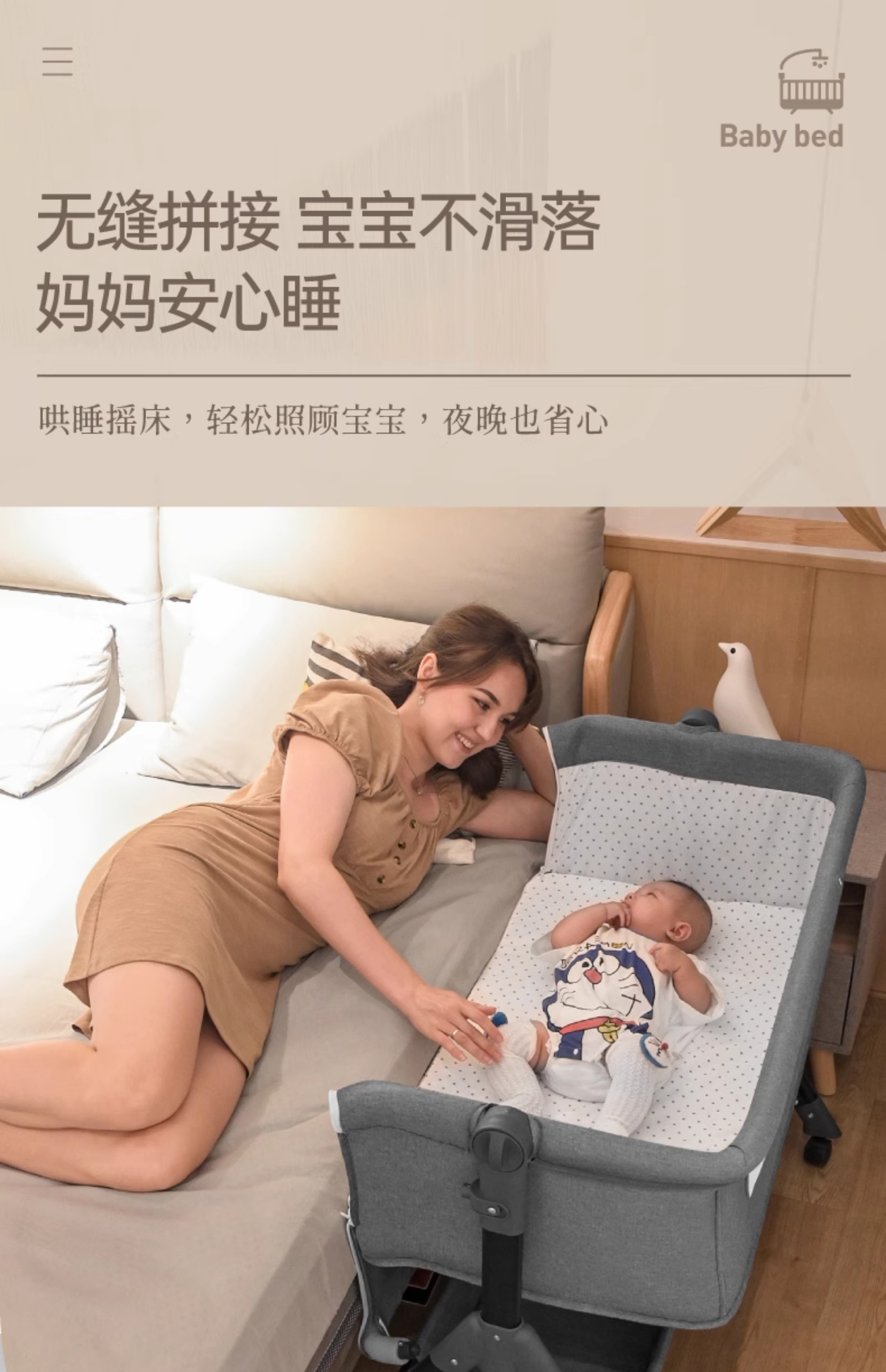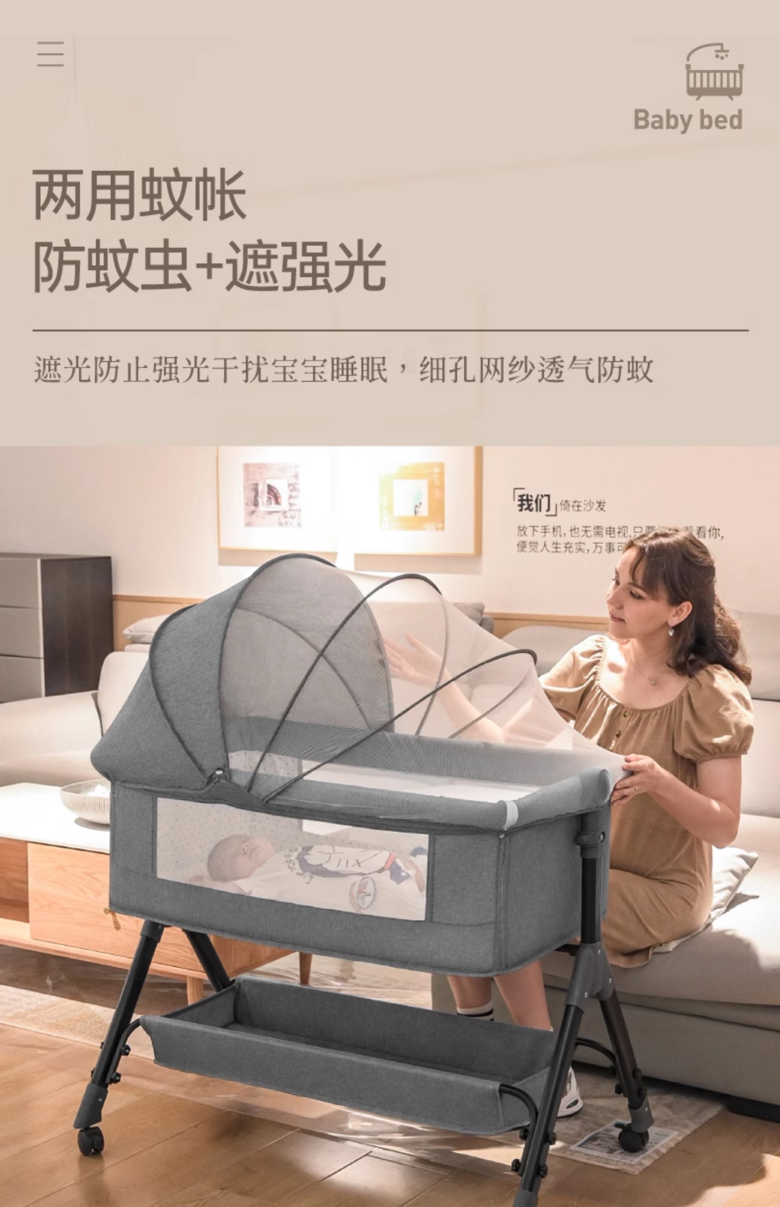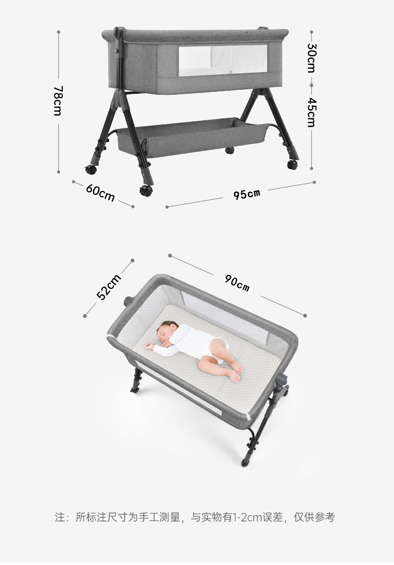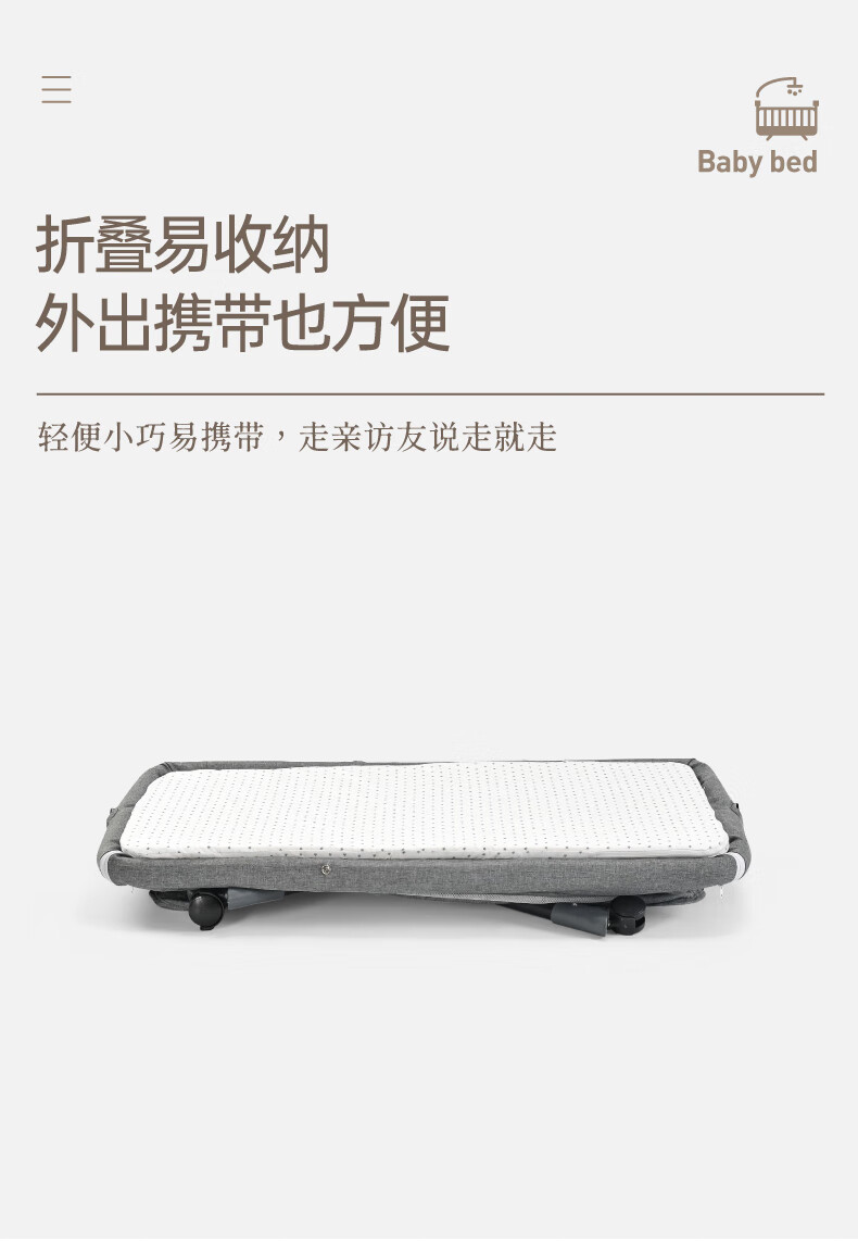 General Electric (GE) removable crib spliced large bed baby bed cradle bed foldable medical grade multi-functional portable standard version knight gray + bedside changing table 988