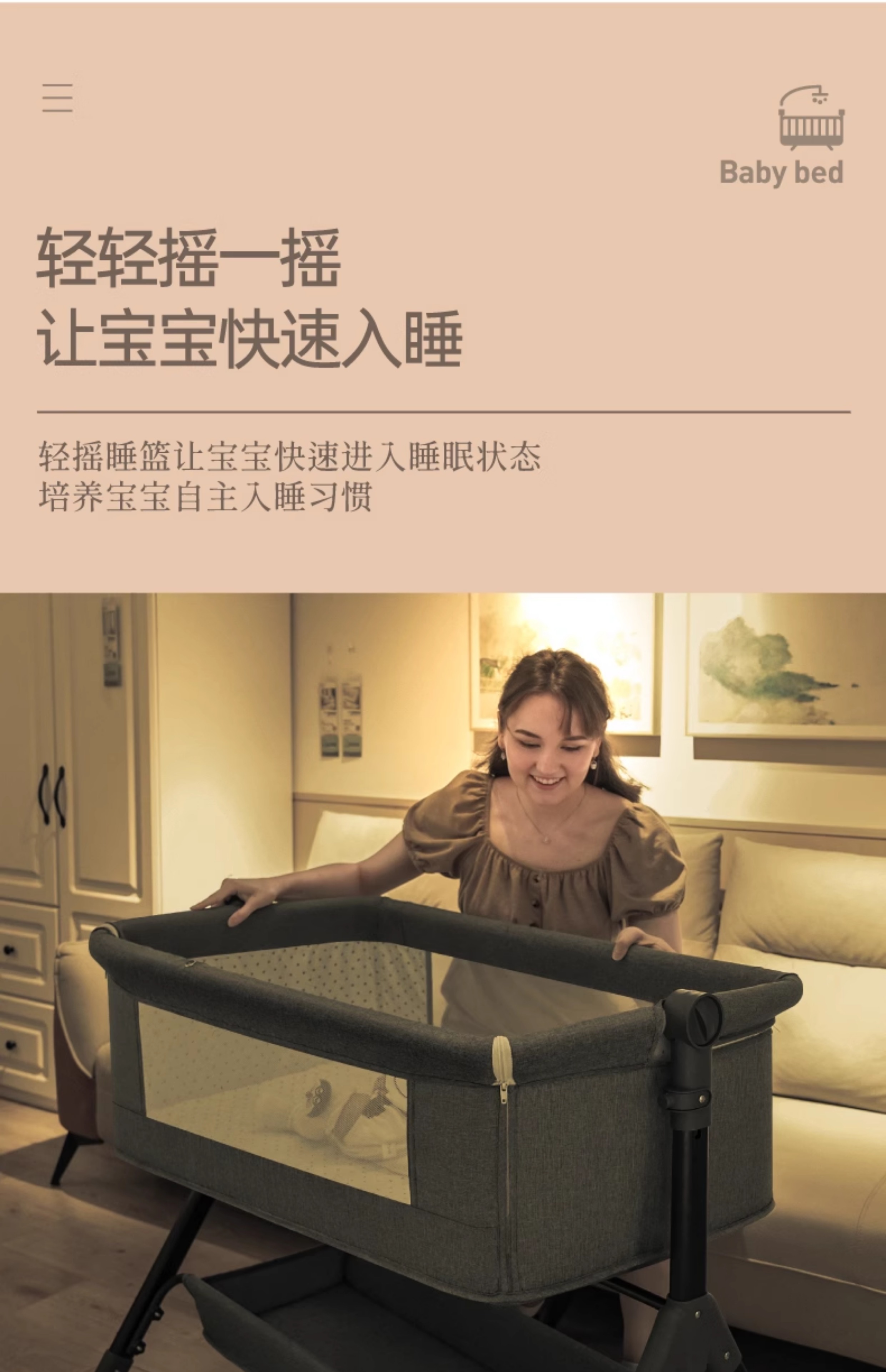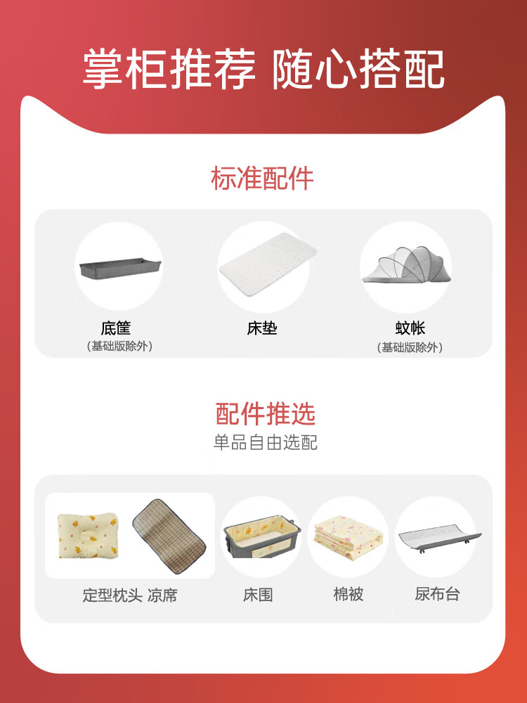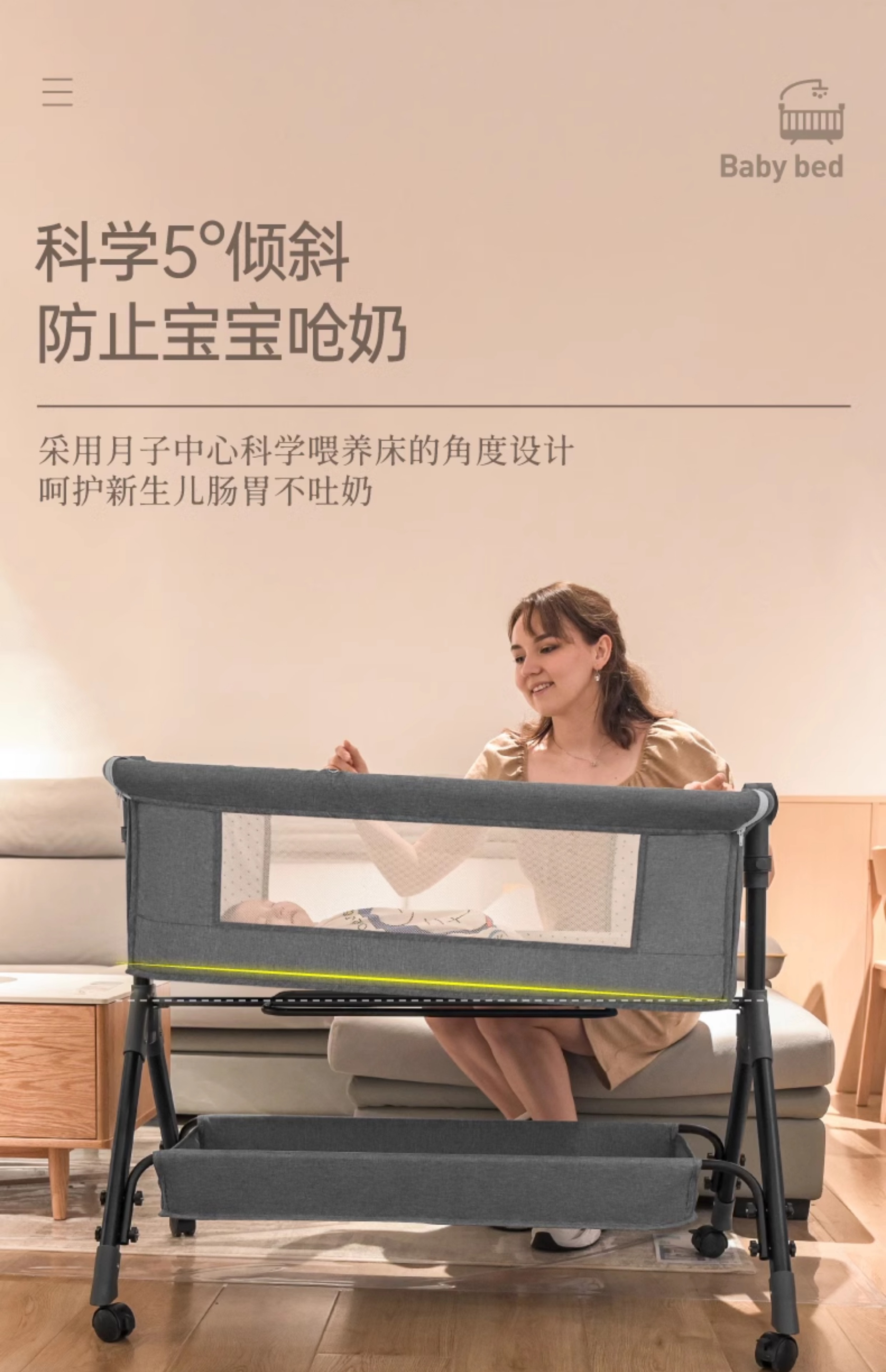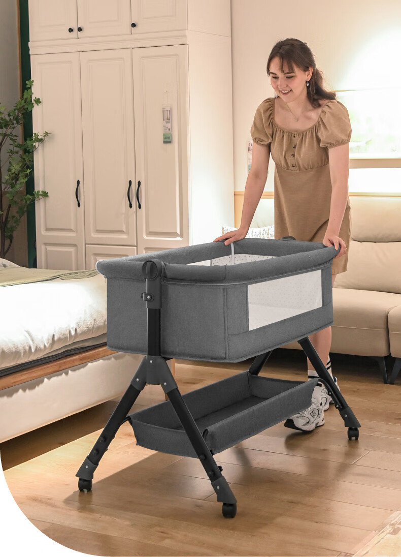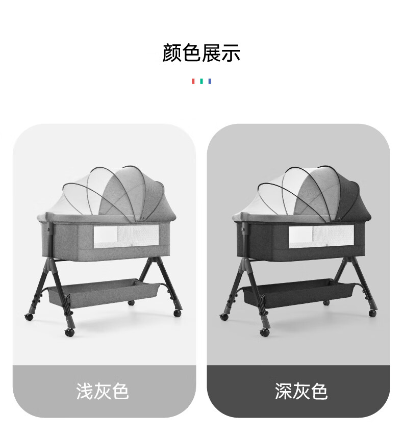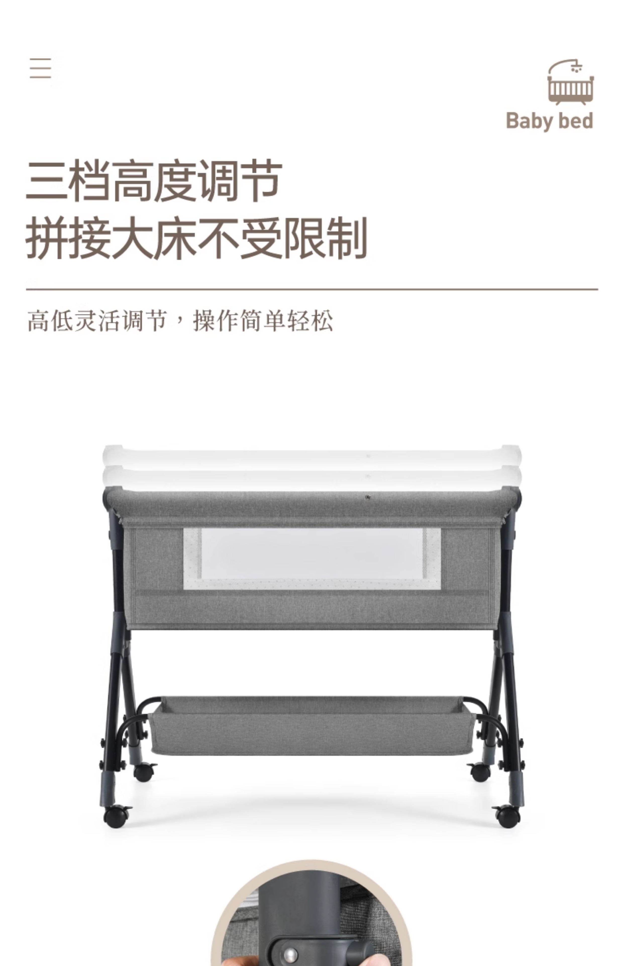 General Electric (GE) removable crib spliced large bed baby bed cradle bed foldable medical grade multi-functional portable standard version knight gray + bedside changing table 988