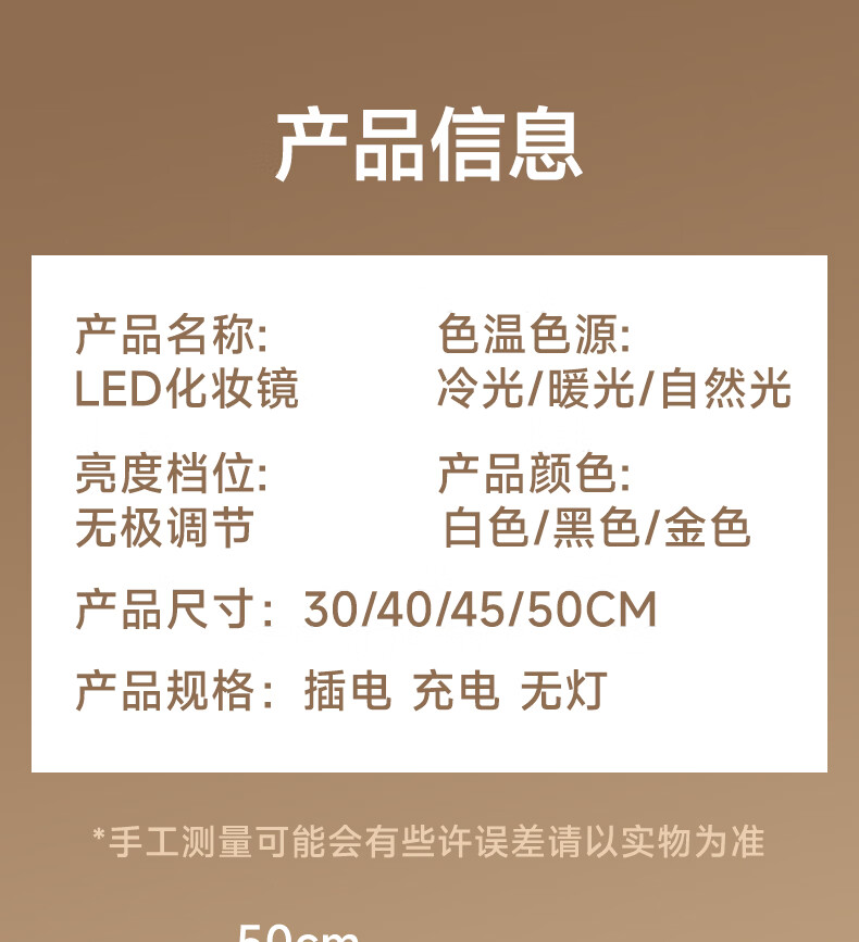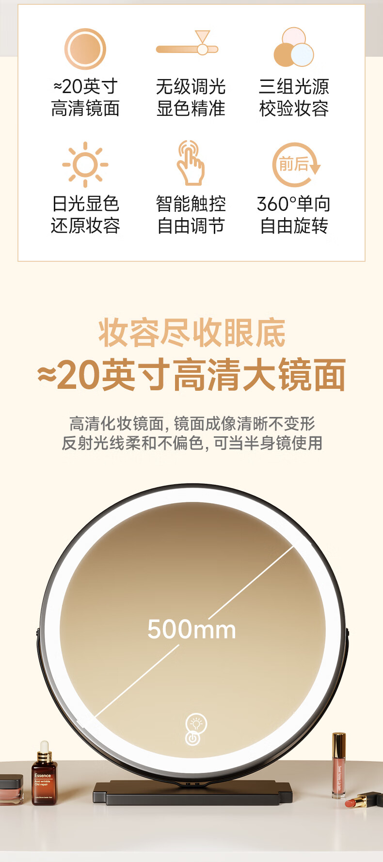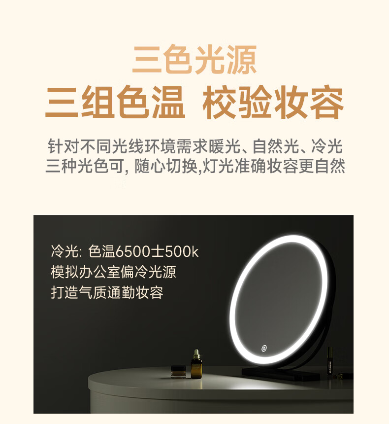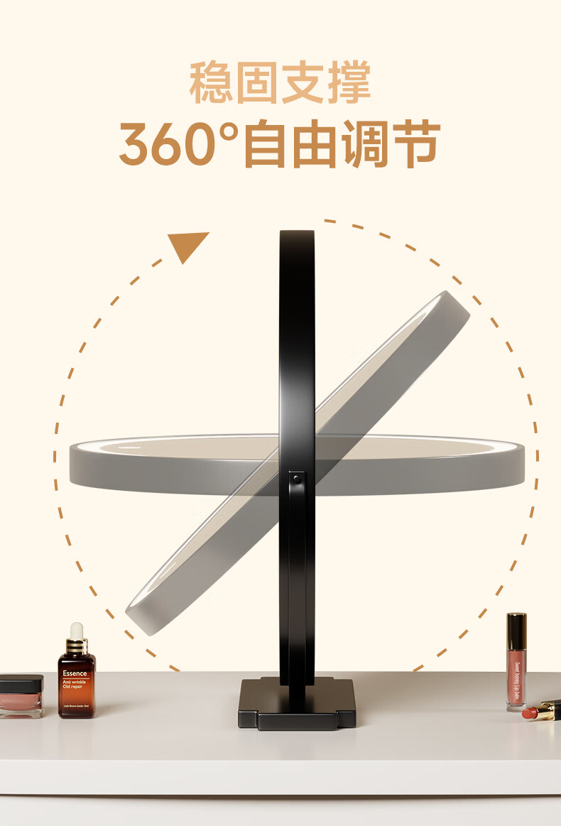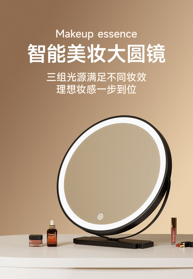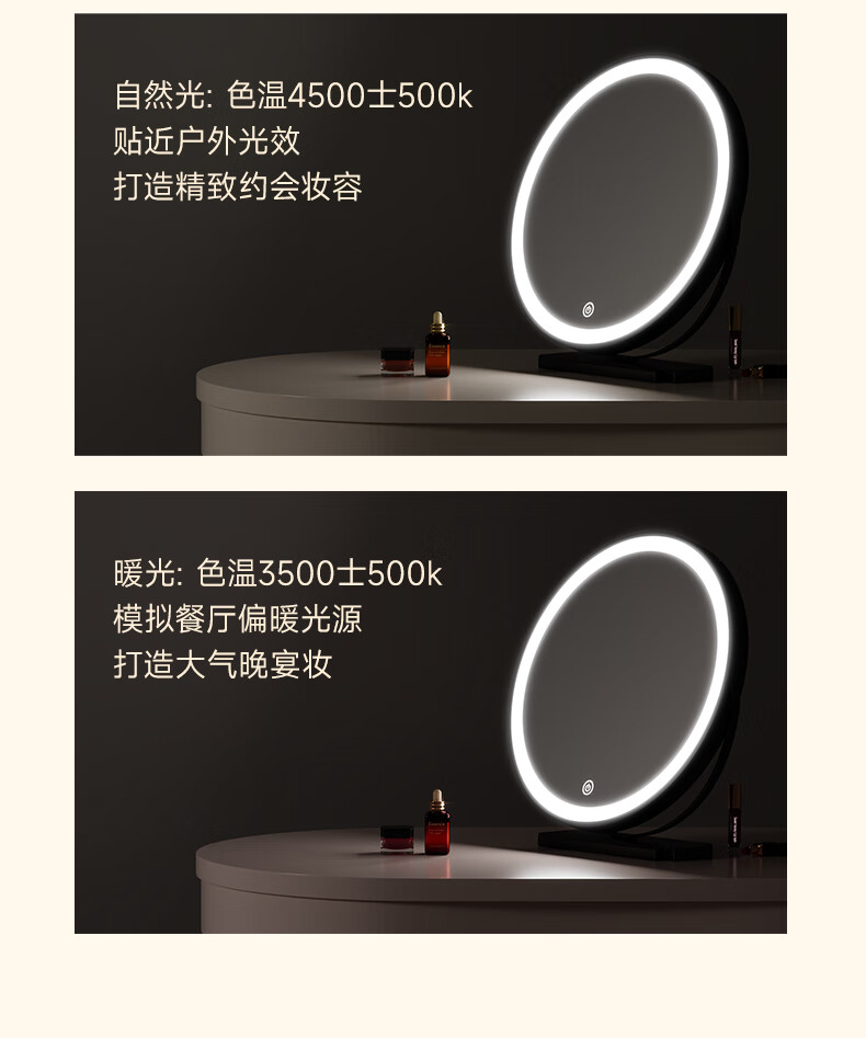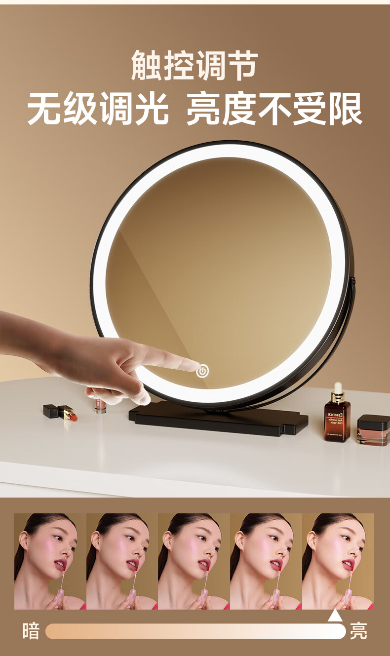 Cosmetic mirror with light, LED daylight fill-in light, desktop dormitory smart portable beauty mirror, birthday gift for girls, friends, Women's Day gift for wife, light luxury gold, 45cm plug-in (rotating model)