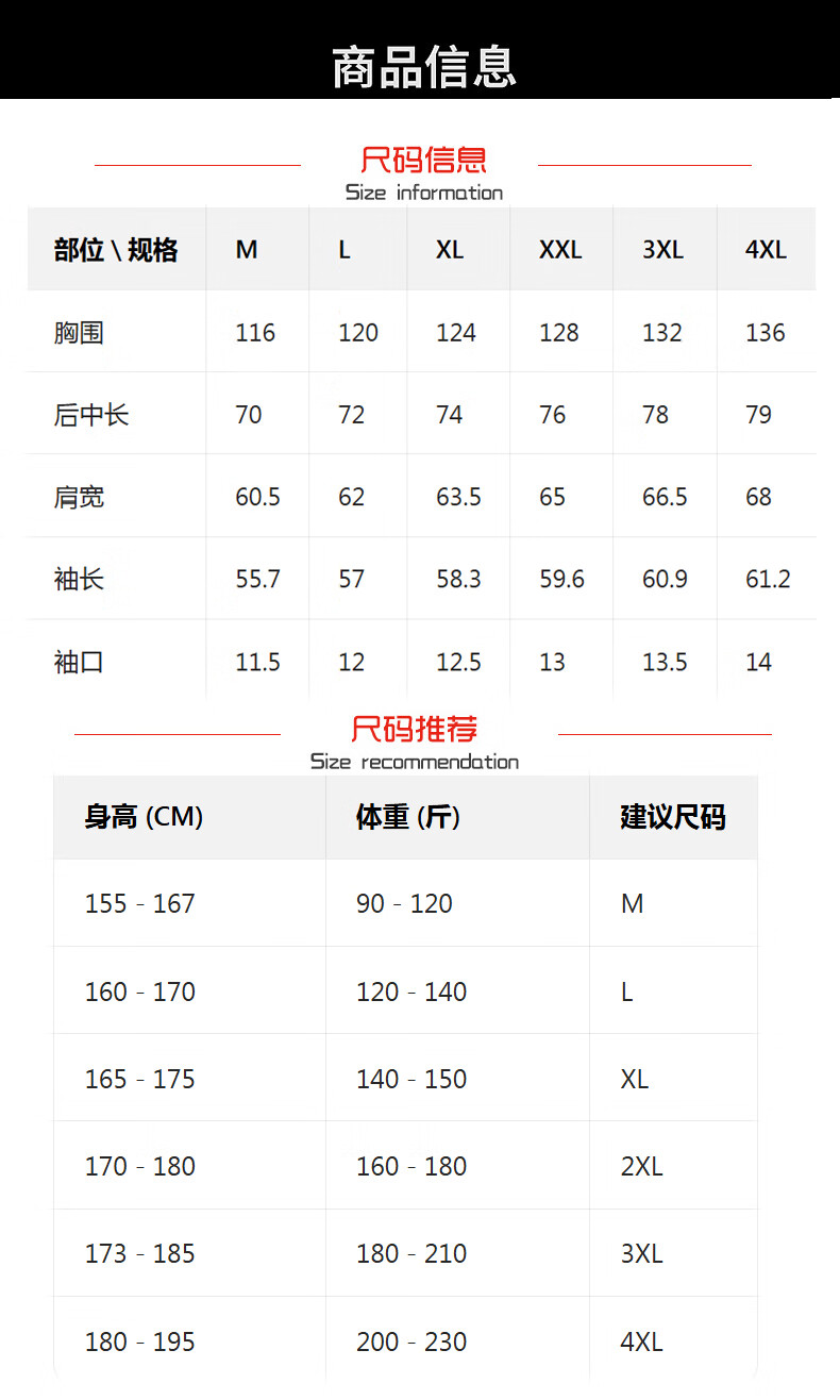 China (cm) 165 / 88-90 170 / 96-98 175 / 108-110 180 / 118-122 185 / 126-130
