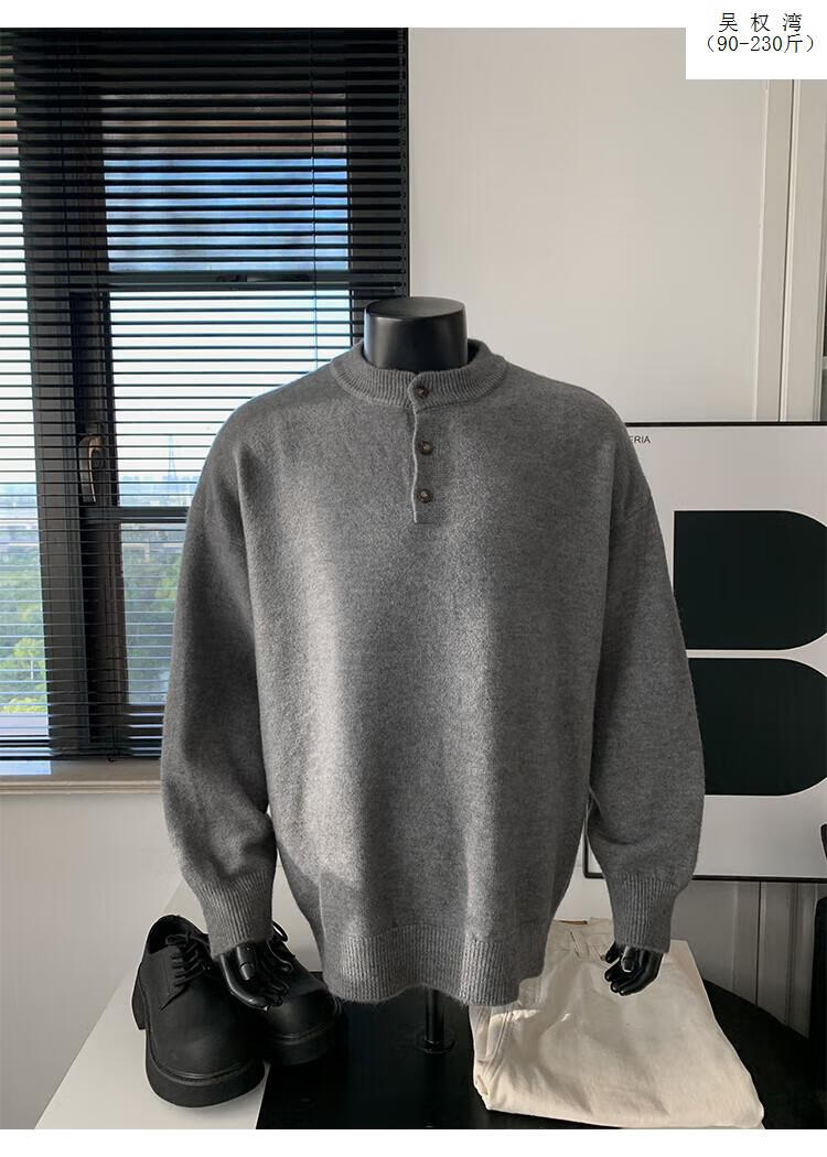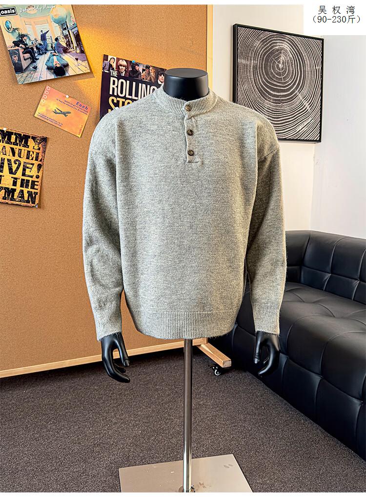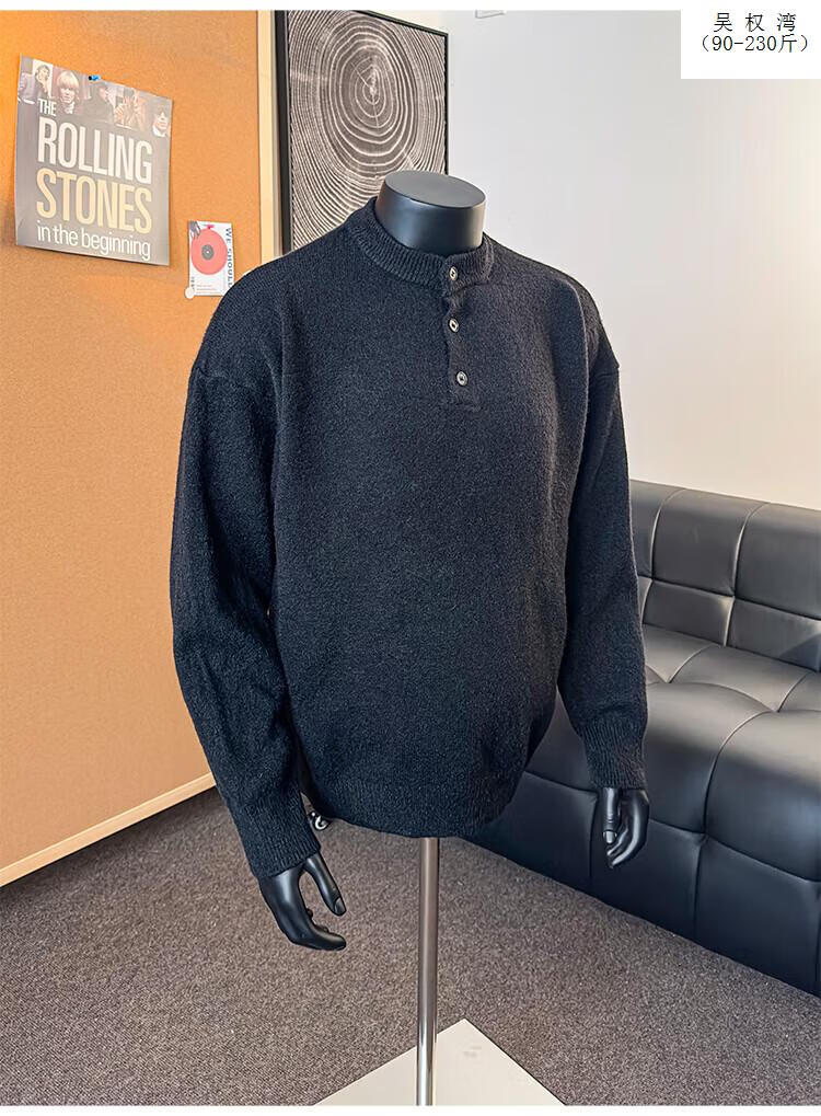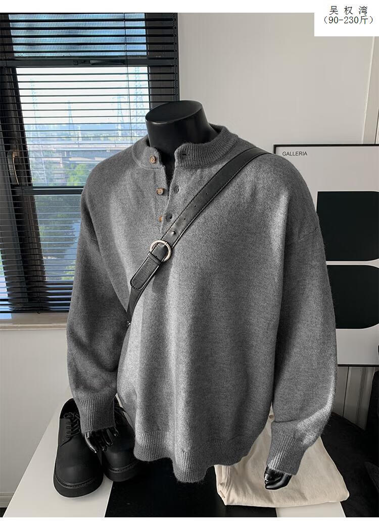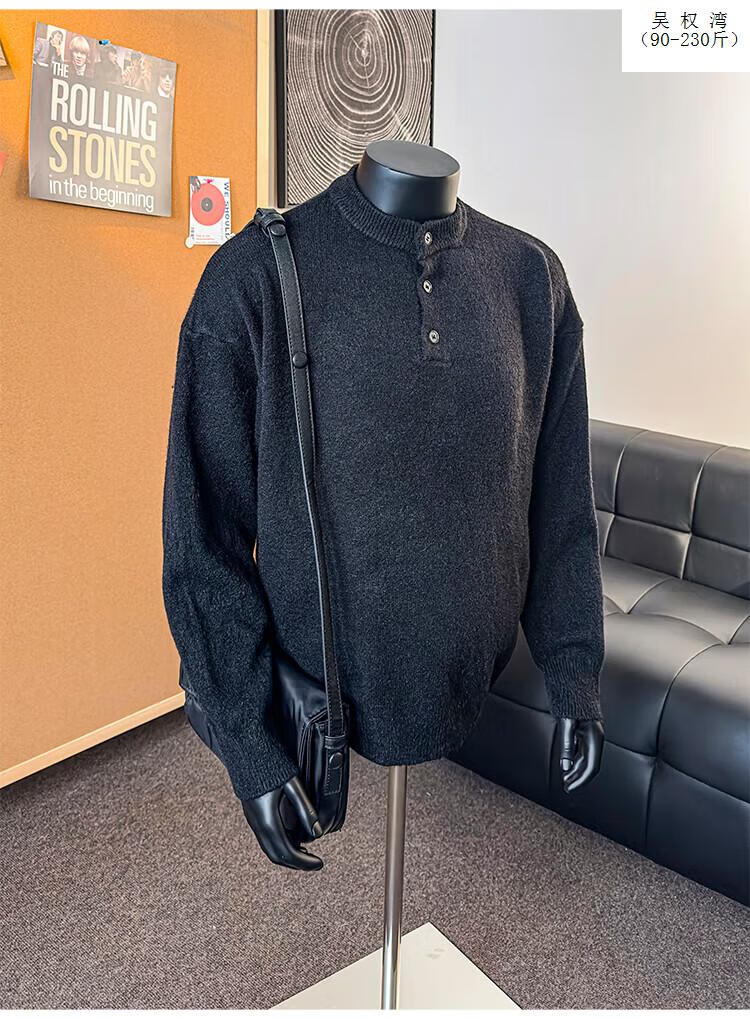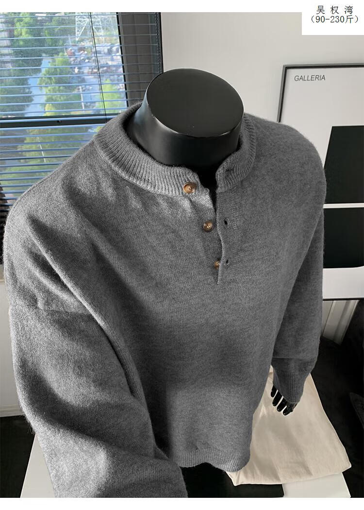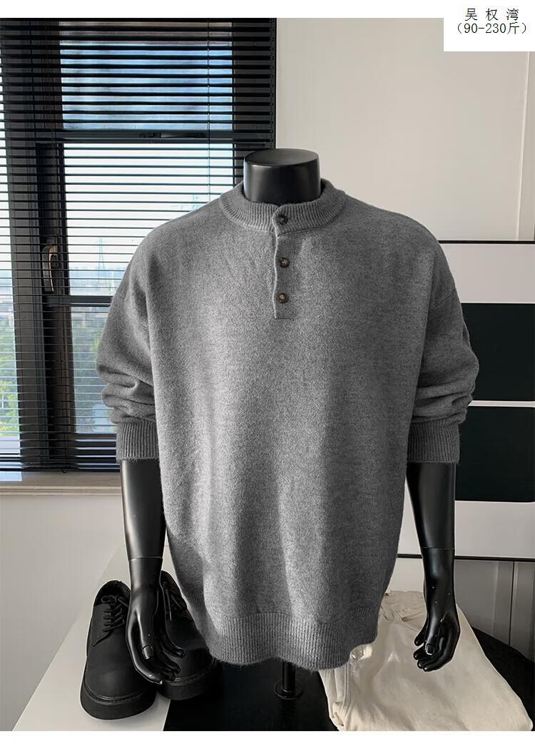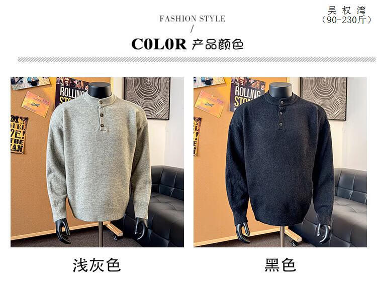 Wu Quanwan gray sweater large size Henry collar sweater men's lazy style inner base sweater jacket black black M recommended 95-115Jin Jin equals 0.5 kg