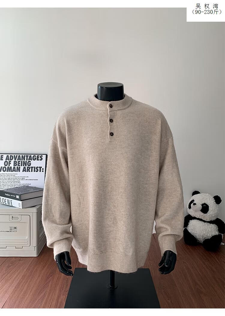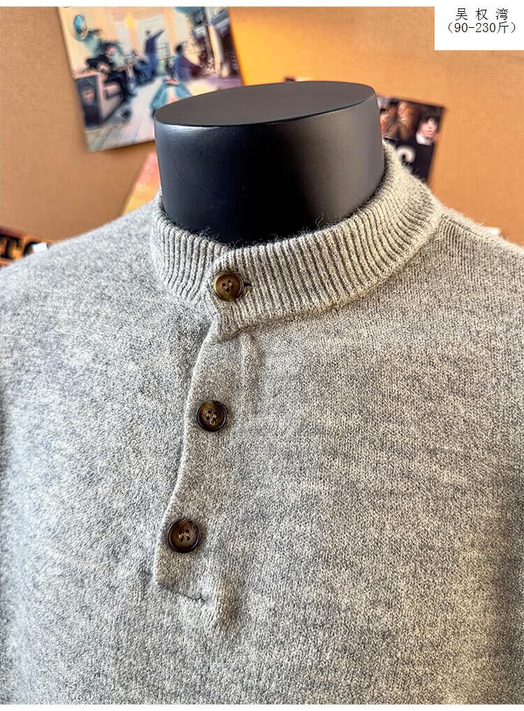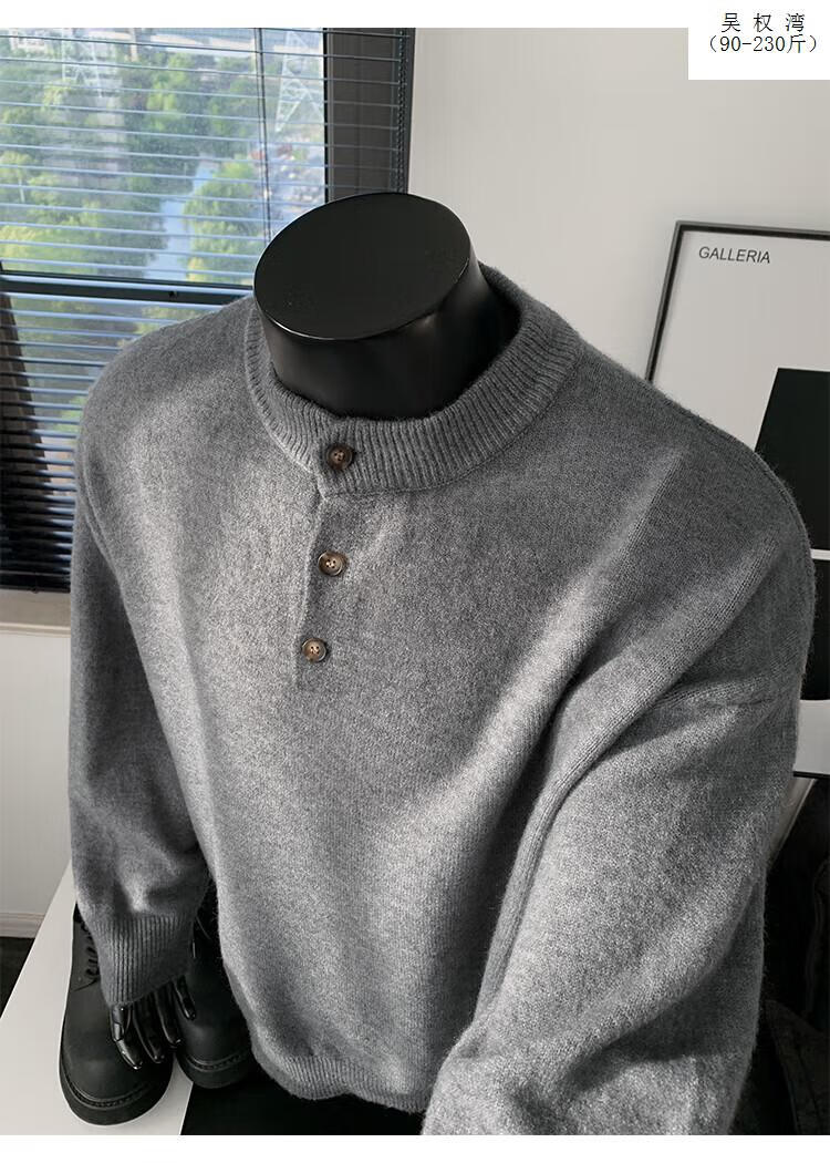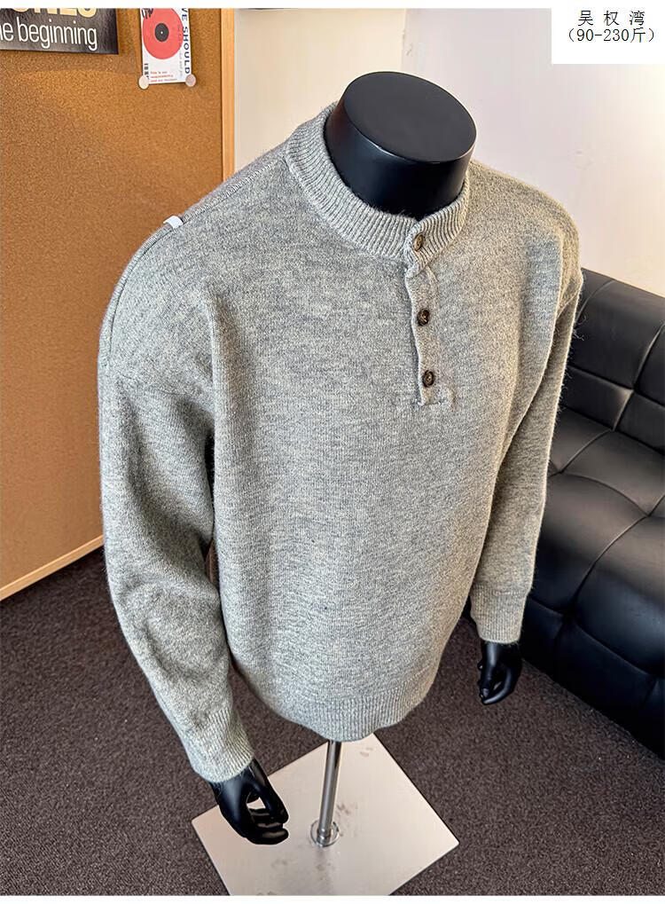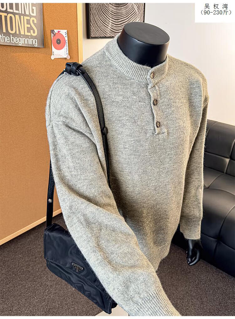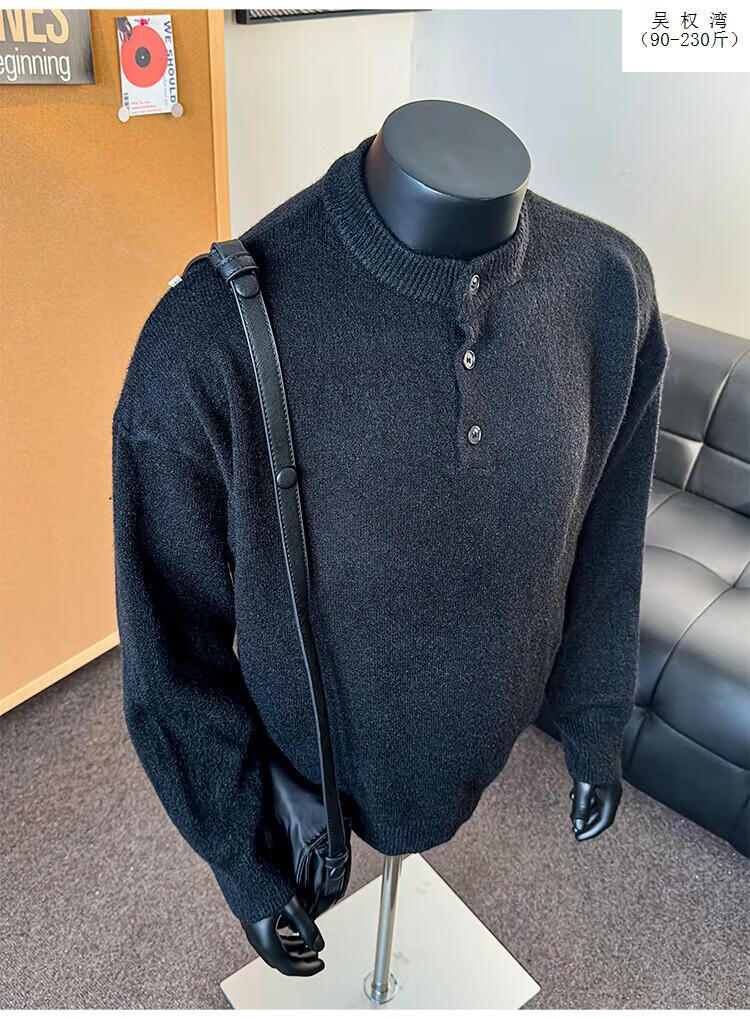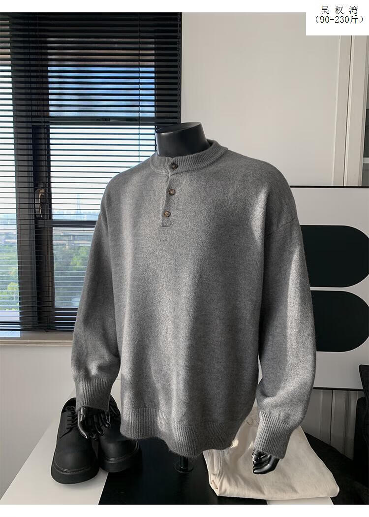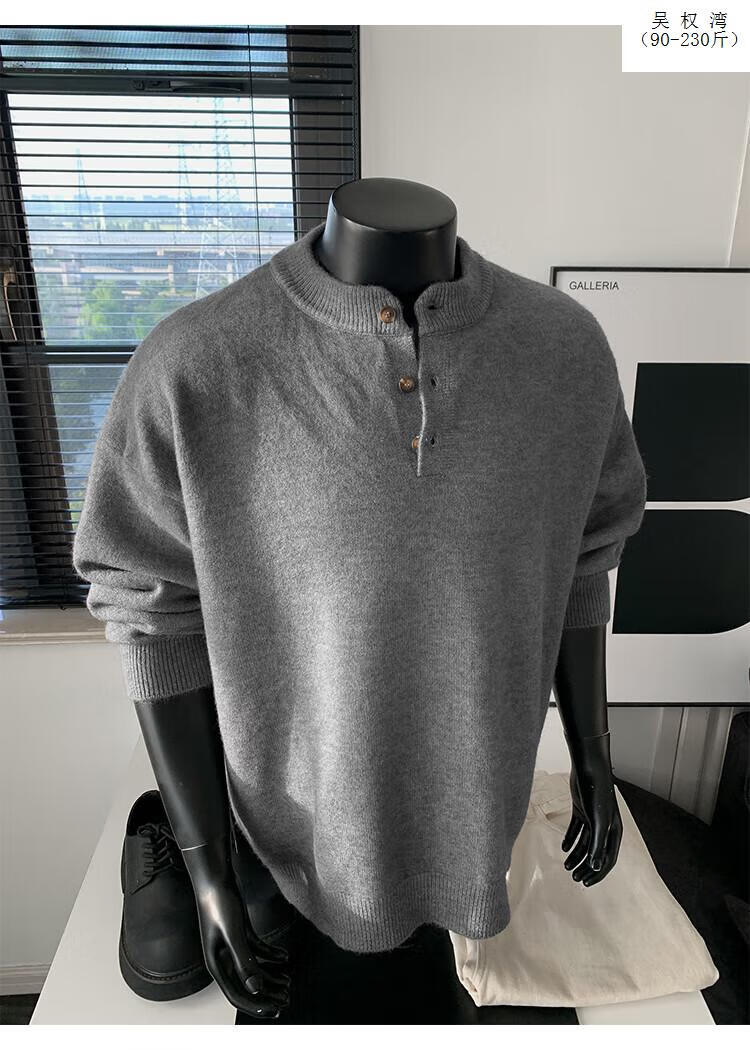Wu Quanwan gray sweater large size Henry collar sweater men's lazy style inner base sweater jacket black black M recommended 95-115Jin Jin equals 0.5 kg