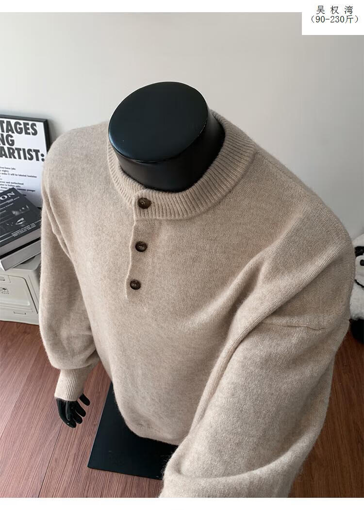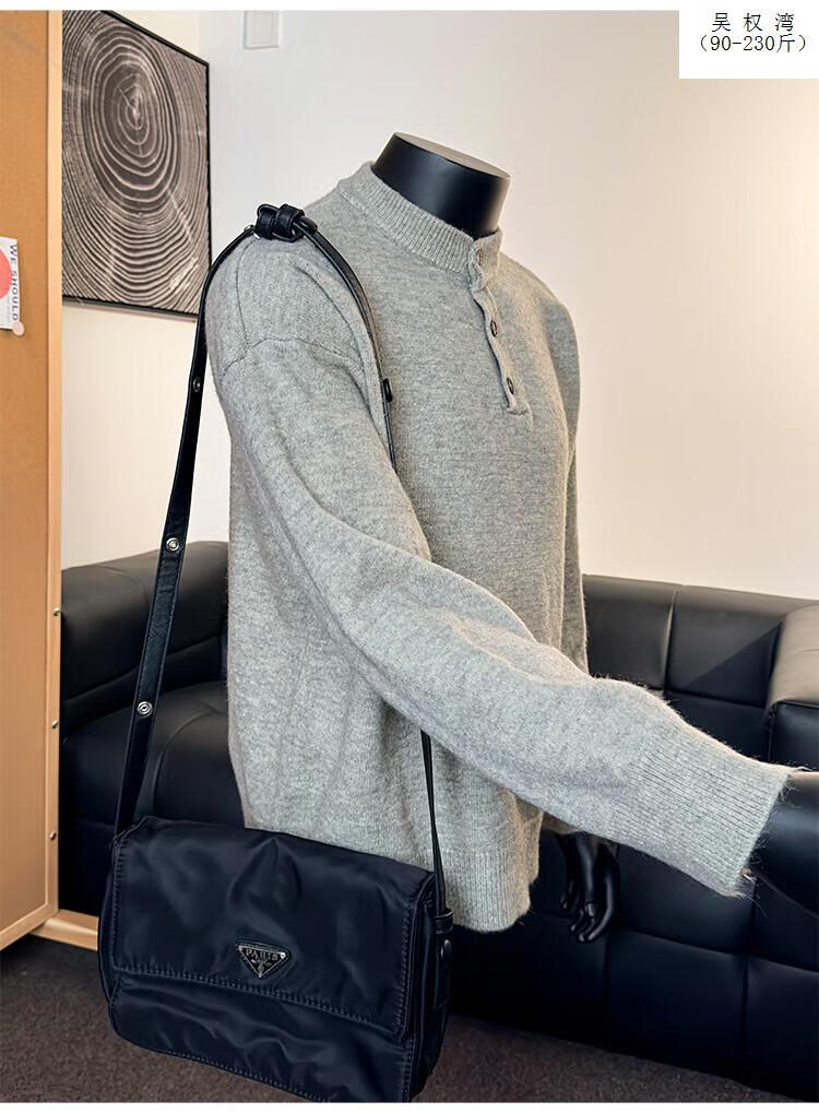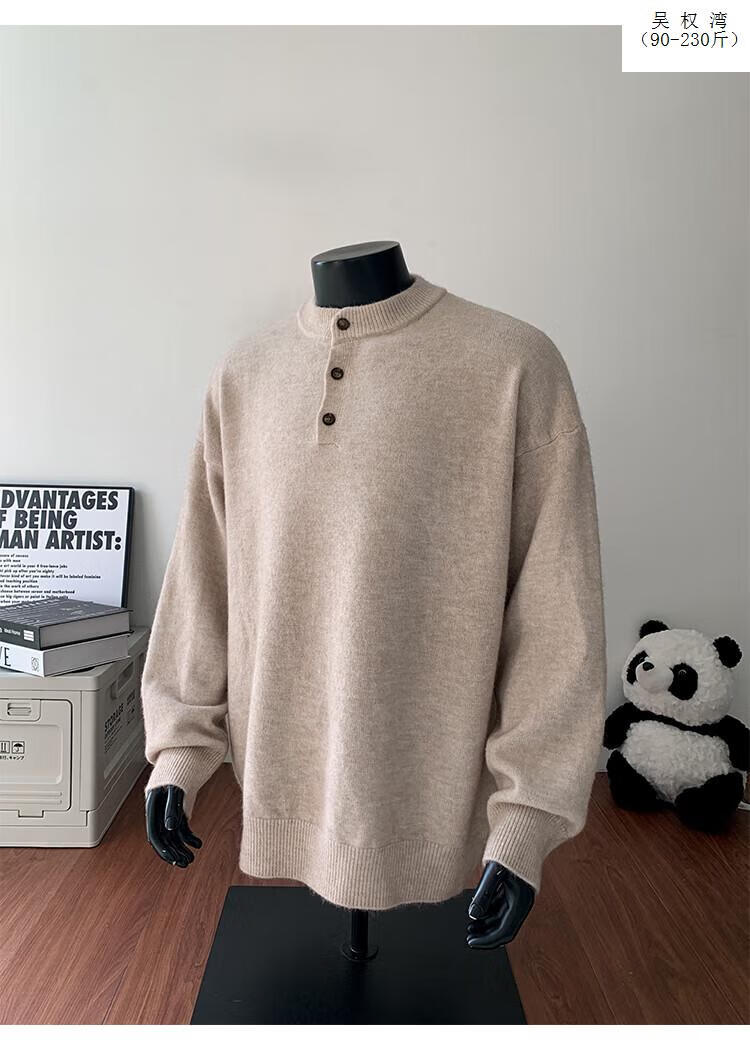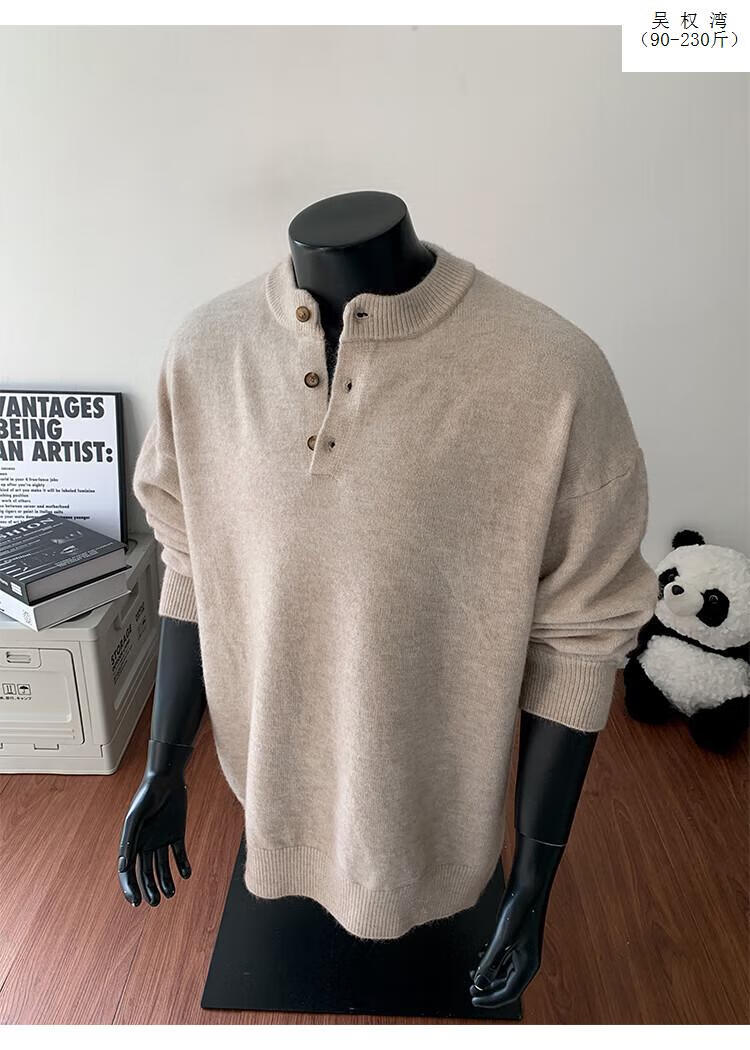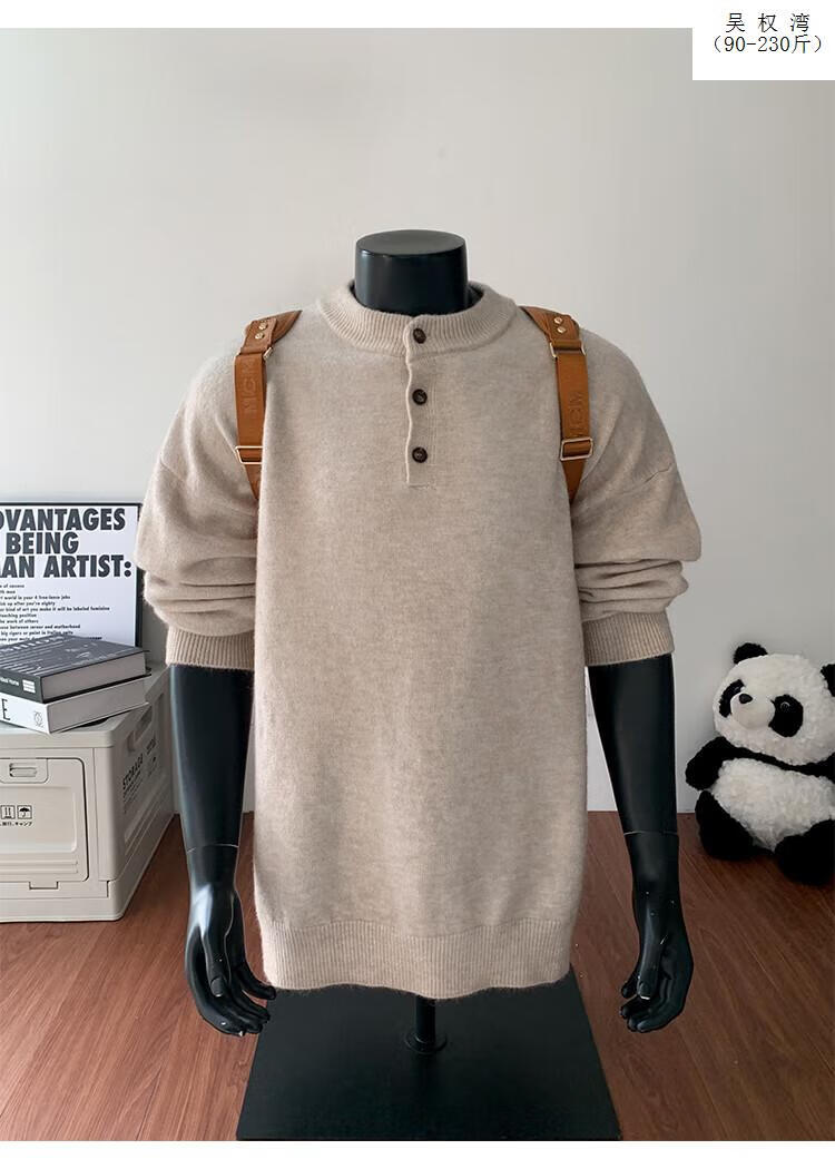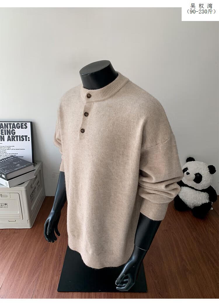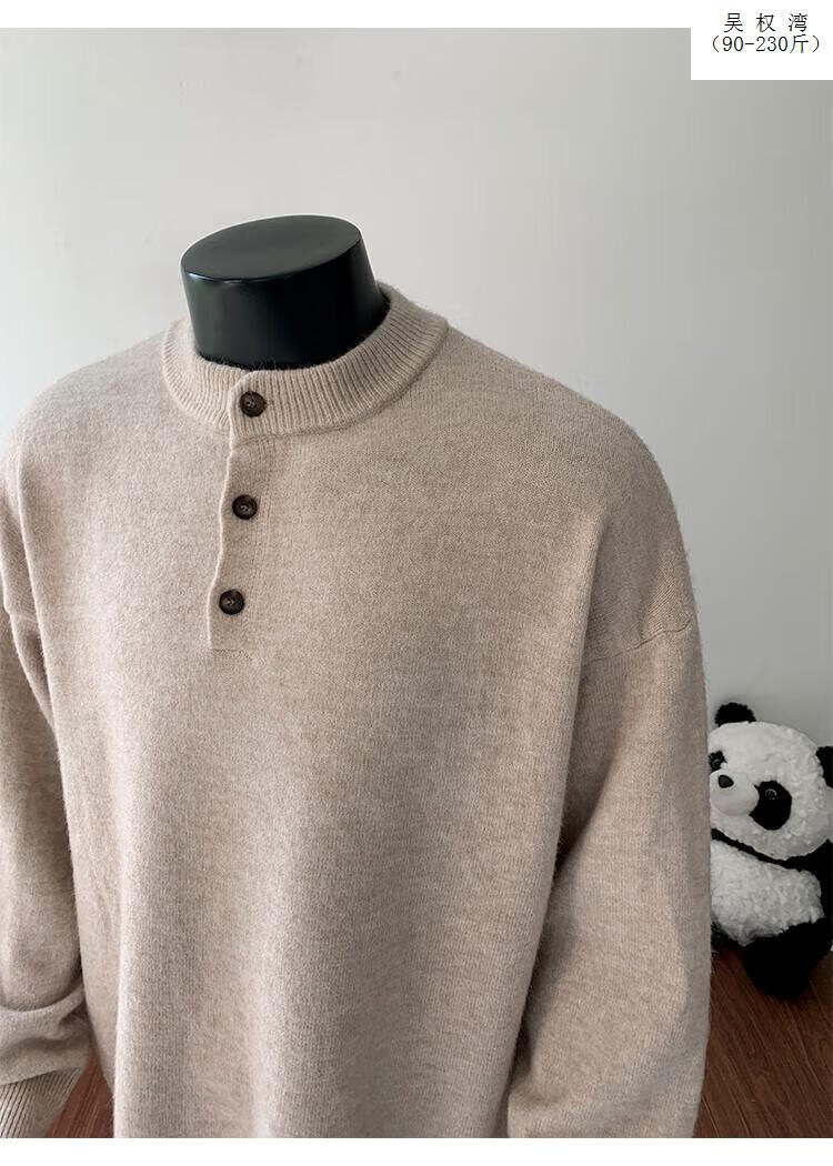 Wu Quanwan gray sweater large size Henry collar sweater men's lazy style inner base sweater jacket black black M recommended 95-115Jin Jin equals 0.5 kg