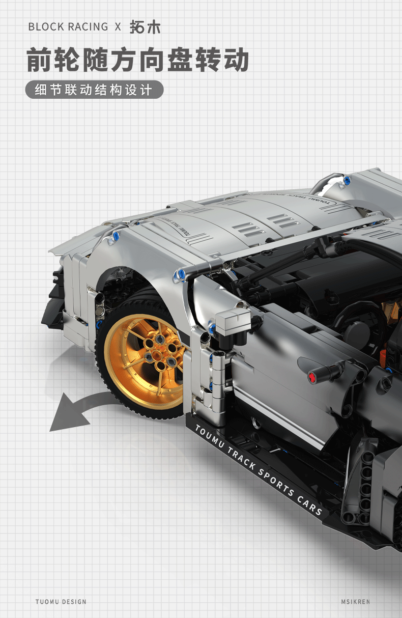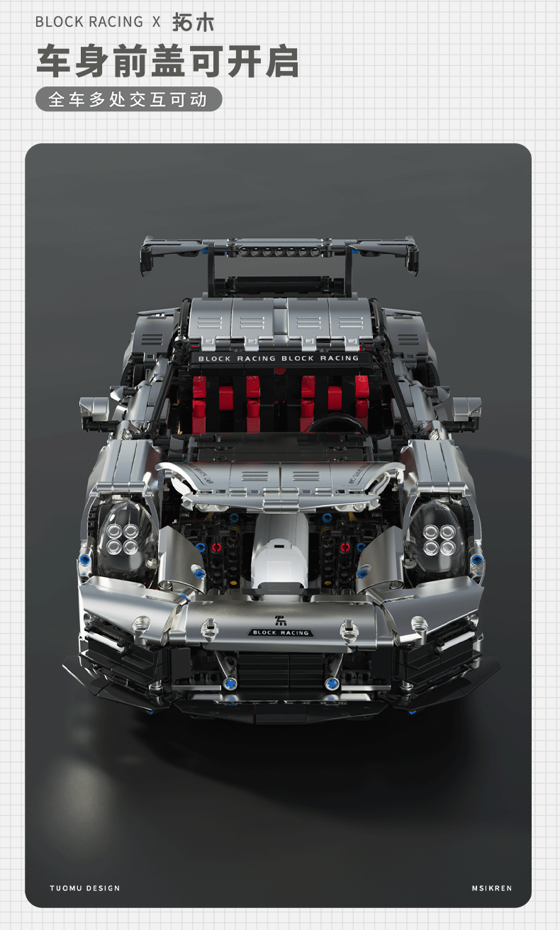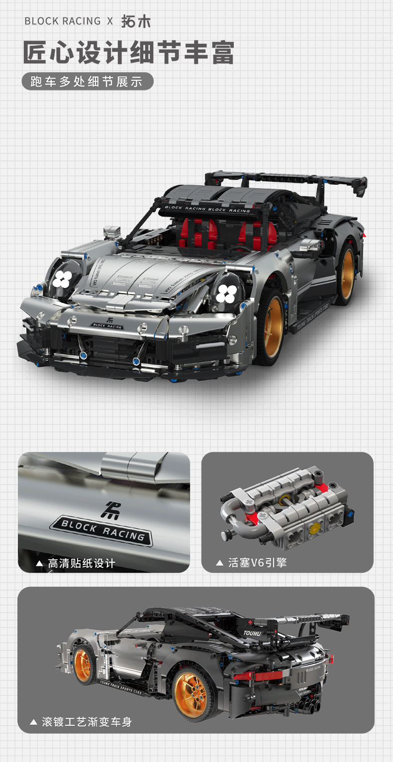 LALAPLAY building block sports car assembled racing model remote control car toy educational boy's birthday gift for boys over 10 years old static version of Silver Wing supercar GT