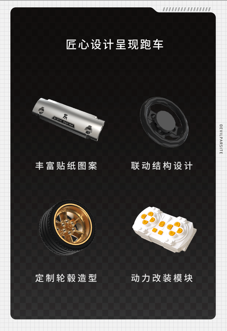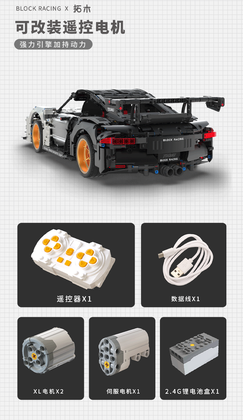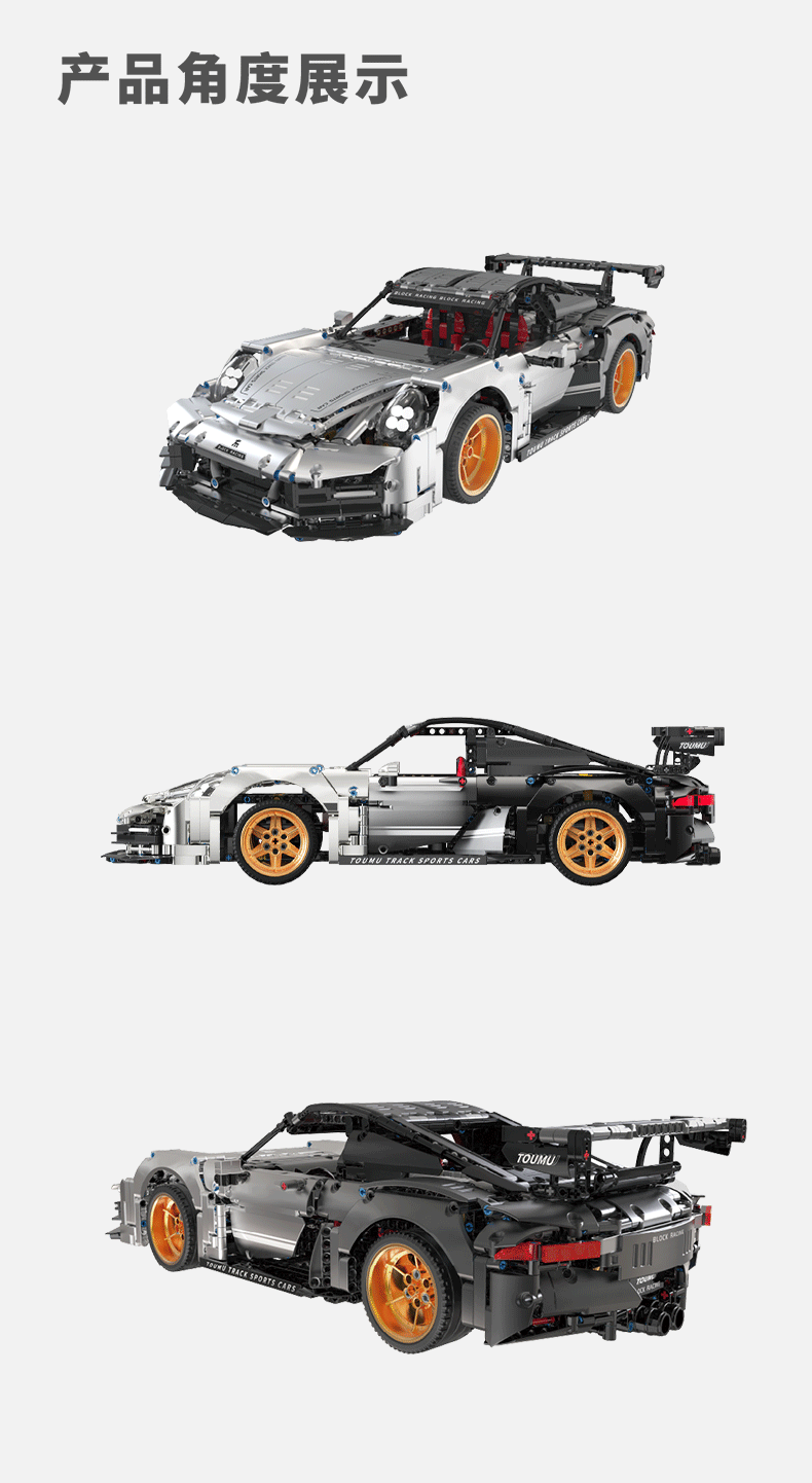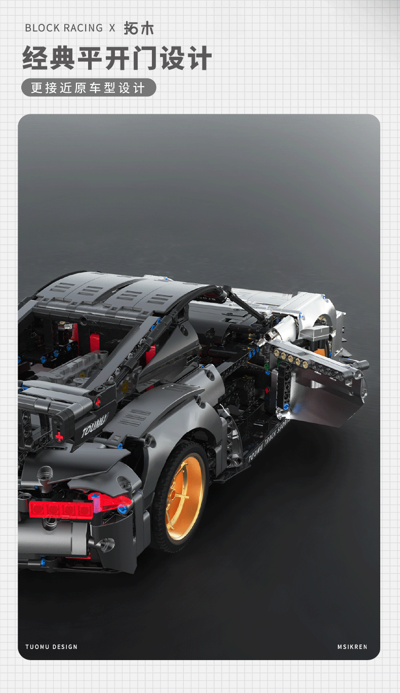 LALAPLAY building block sports car assembled racing model remote control car toy educational boy's birthday gift for boys over 10 years old static version of Silver Wing supercar GT