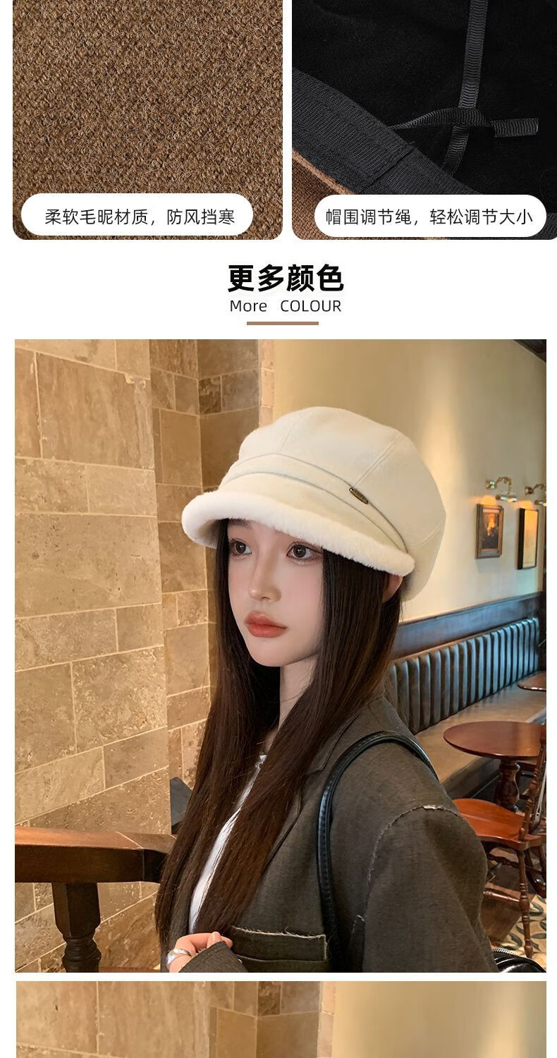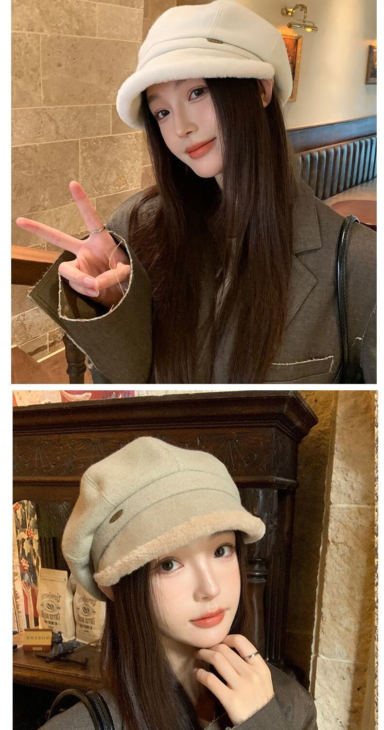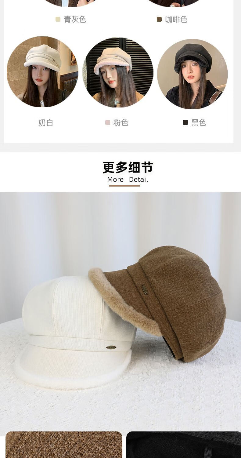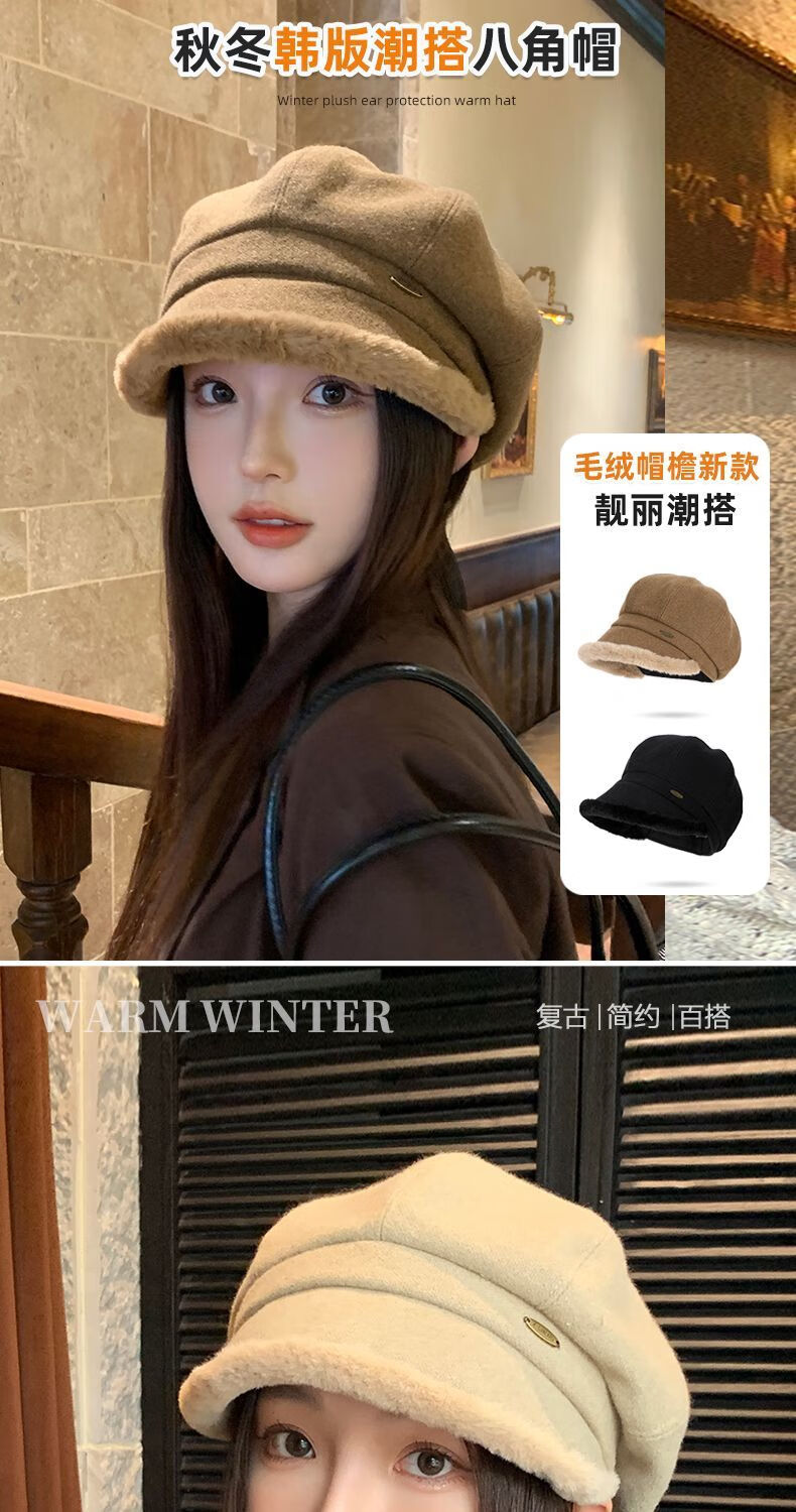 Pierre Cardin British retro fisherman hat octagonal hat women's autumn and winter warm beret plus down duck tongue Japanese ear protection versatile 8979-Coffee One size fits all 55-60 head circumference