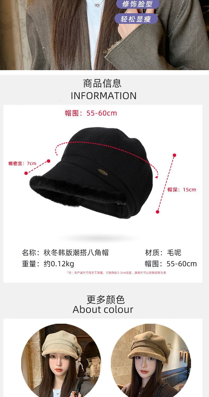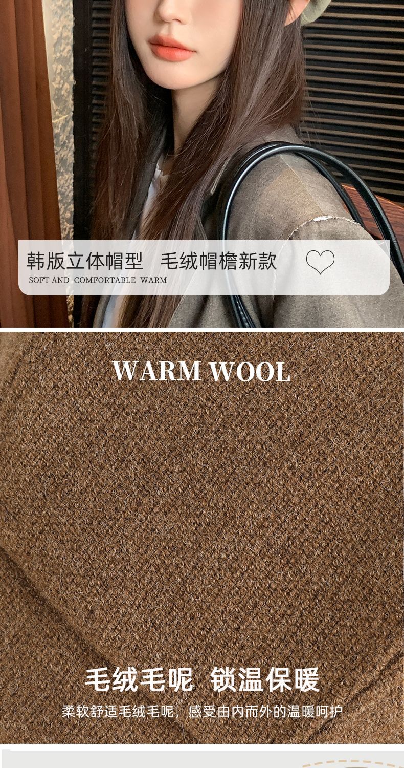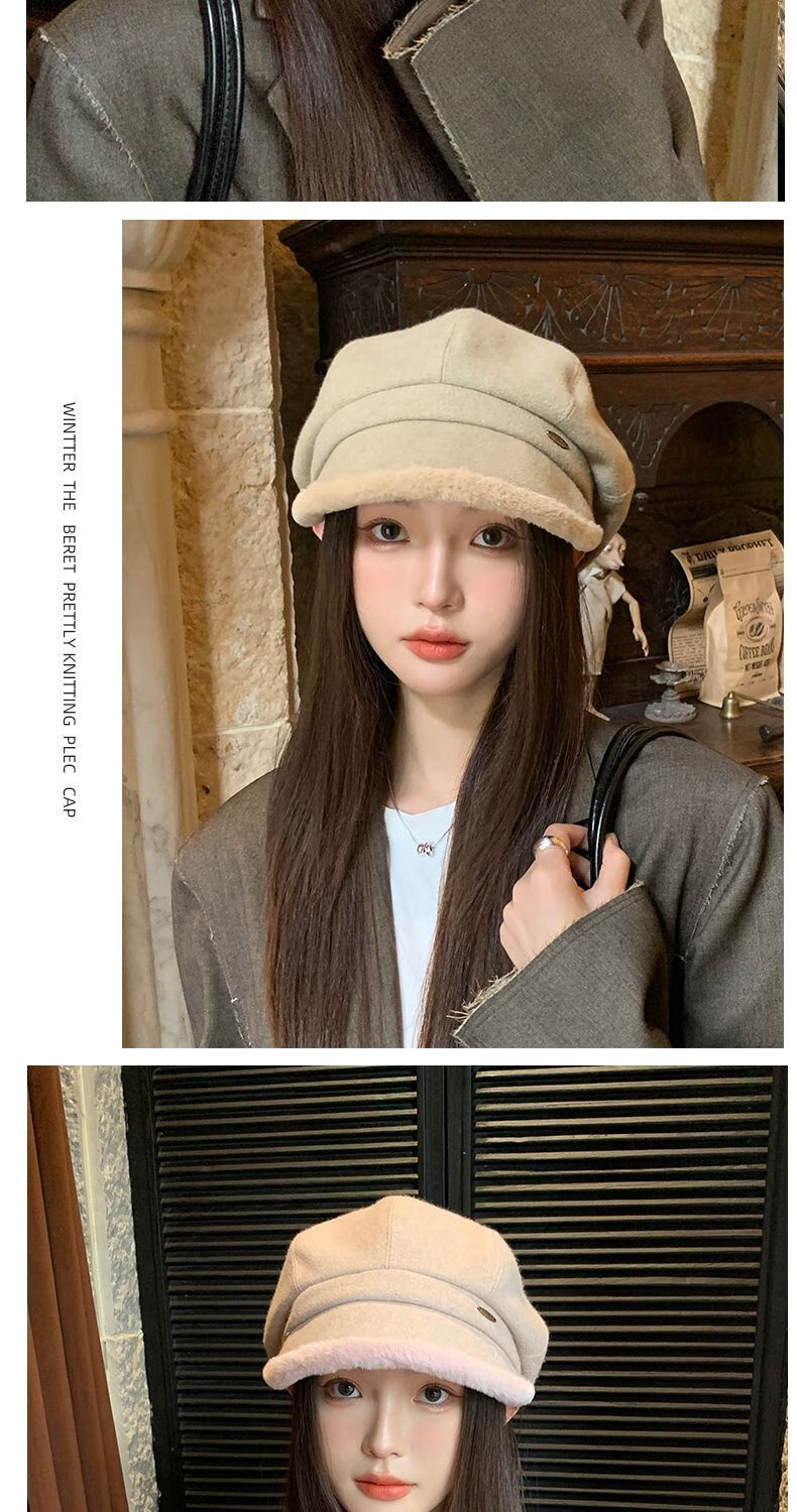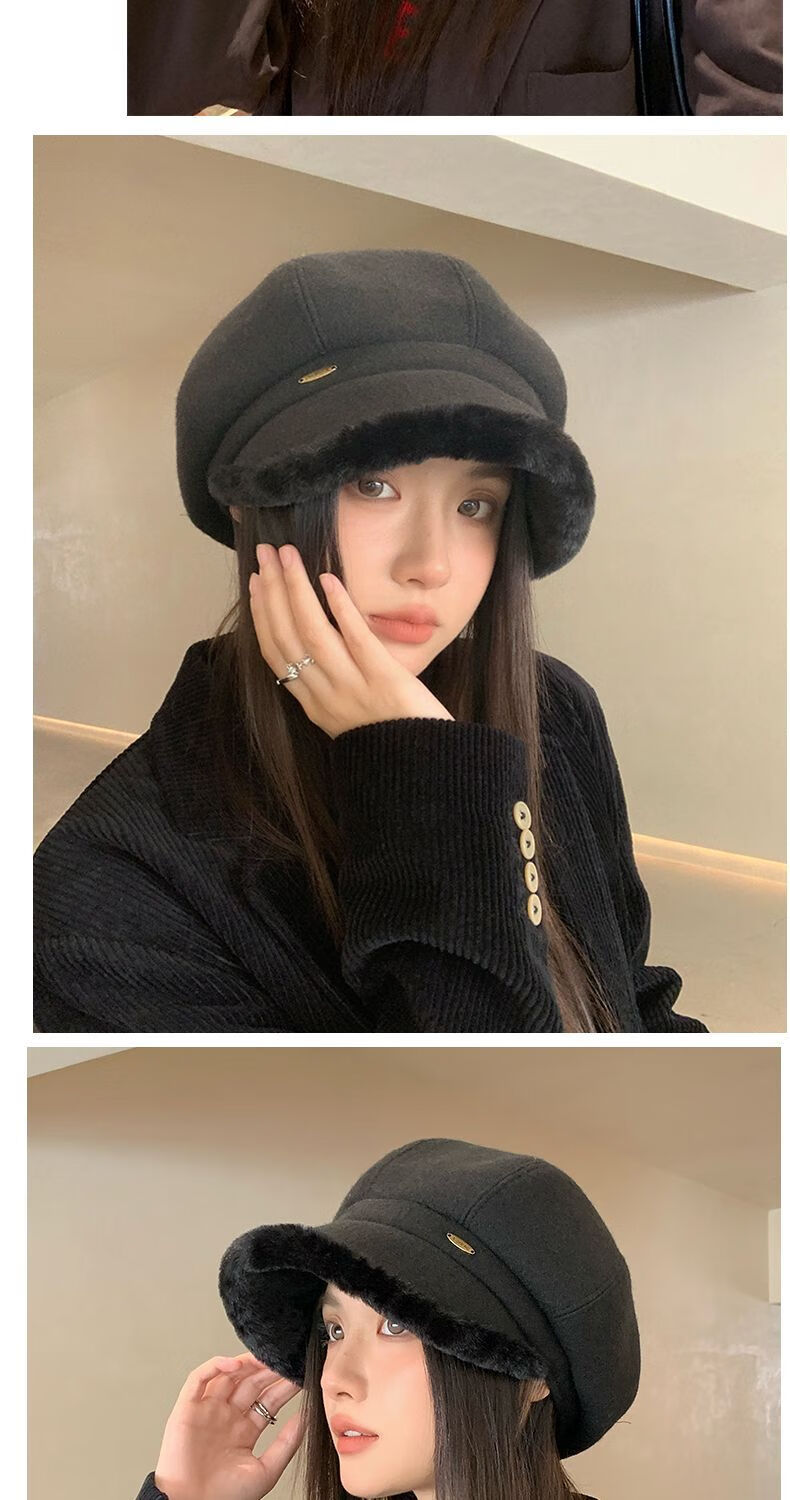 Pierre Cardin British retro fisherman hat octagonal hat women's autumn and winter warm beret plus down duck tongue Japanese ear protection versatile 8979-Coffee One size fits all 55-60 head circumference