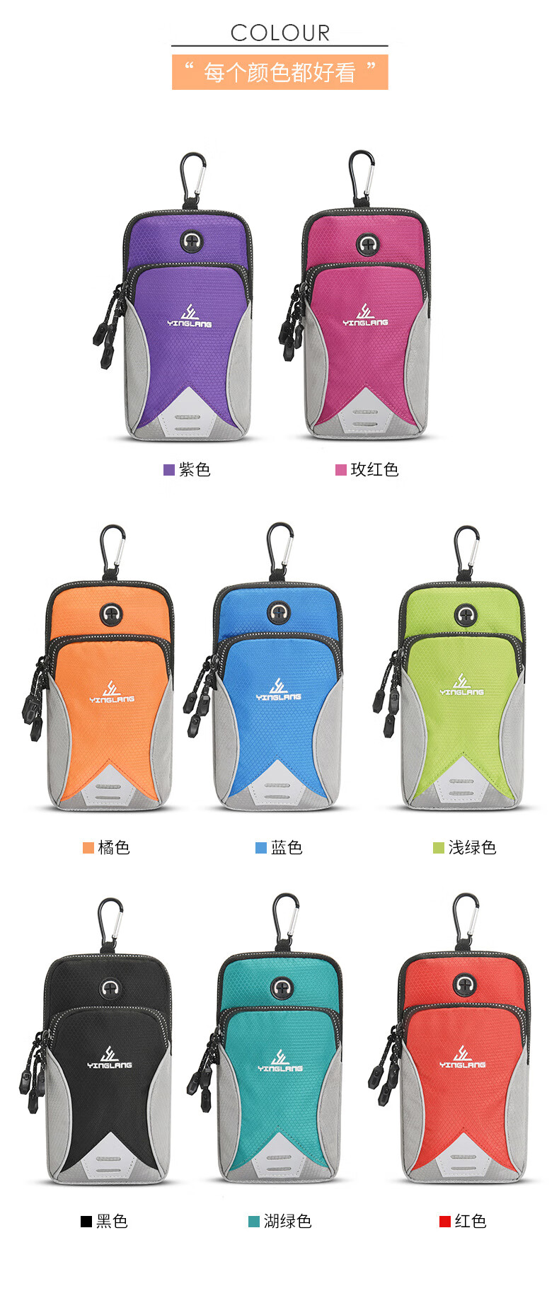 YINGLANG outdoor sports mobile phone arm bag single shoulder crossbody bag universal mobile phone arm strap wrist bag red