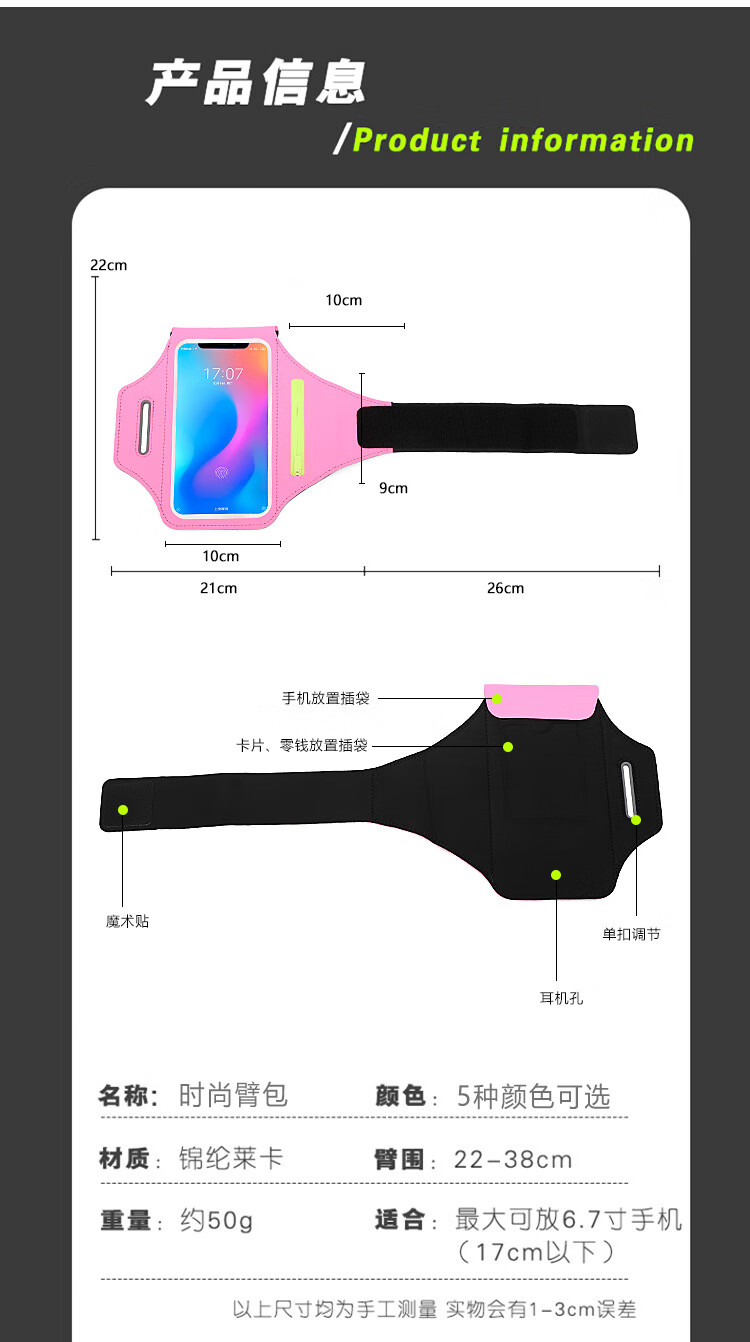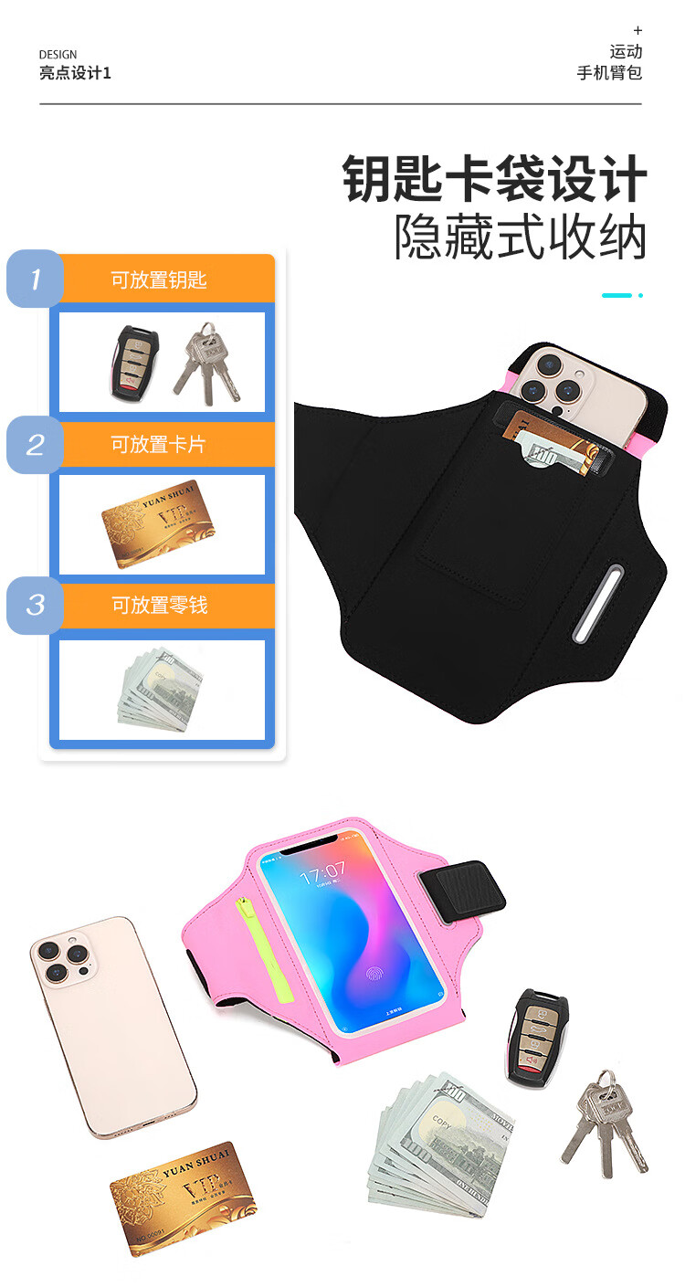 Outdoor sports mobile phone armband with touch screen armbag for men and women, fitness running armband and cycling armbag, pink, suitable for mobile phones within 6.9 inches