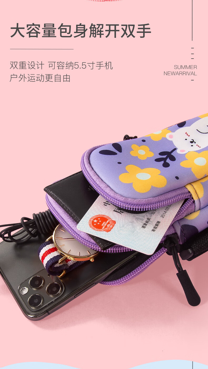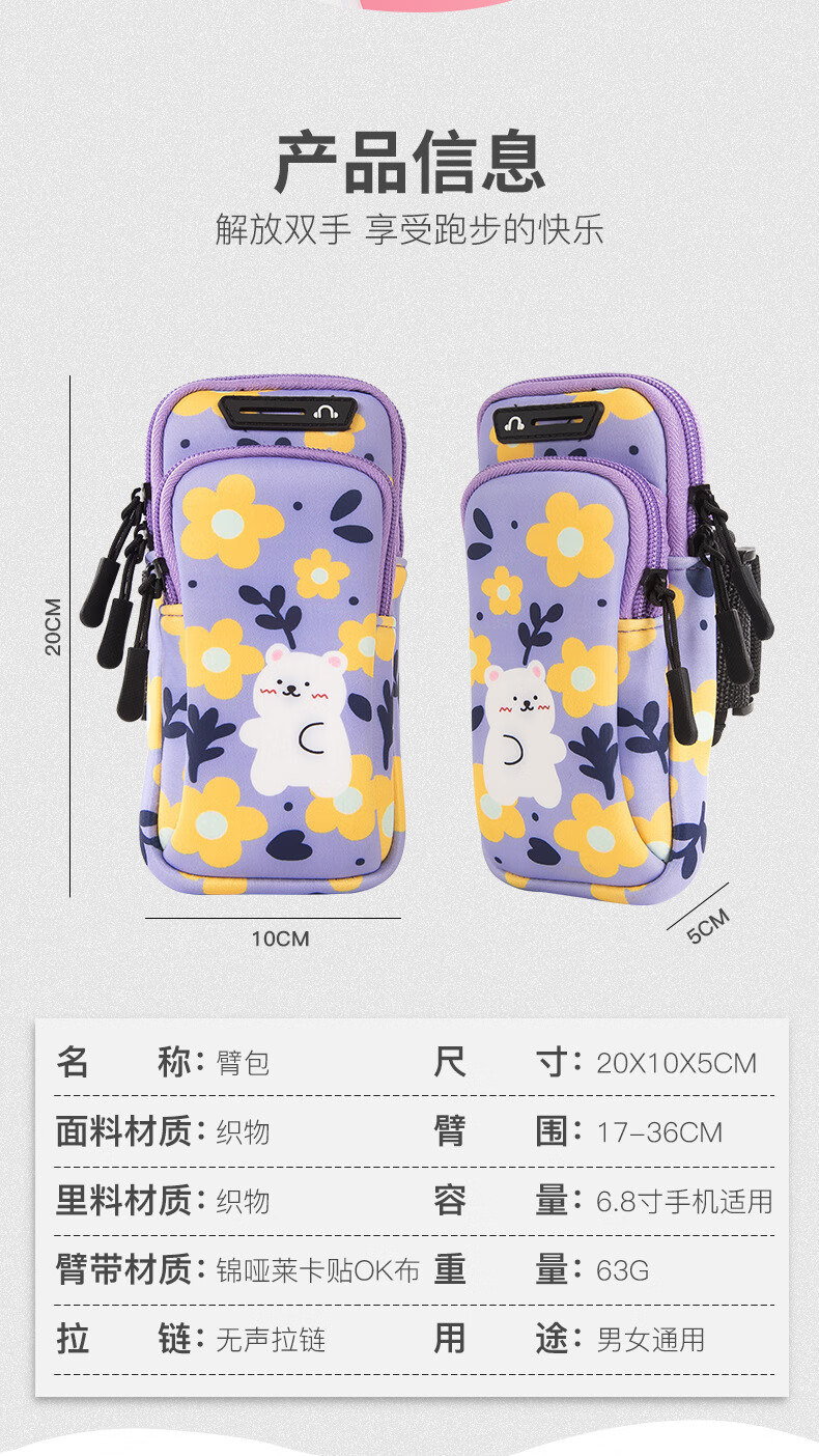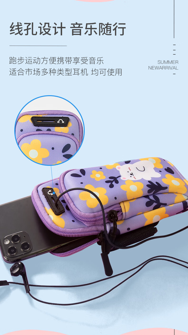 Running mobile phone arm bag for women, thin and light wrist bag, fitness equipment arm cover, sports mobile phone bag, printable gift LOGO, Little Bear 6.6 inches, light and breathable